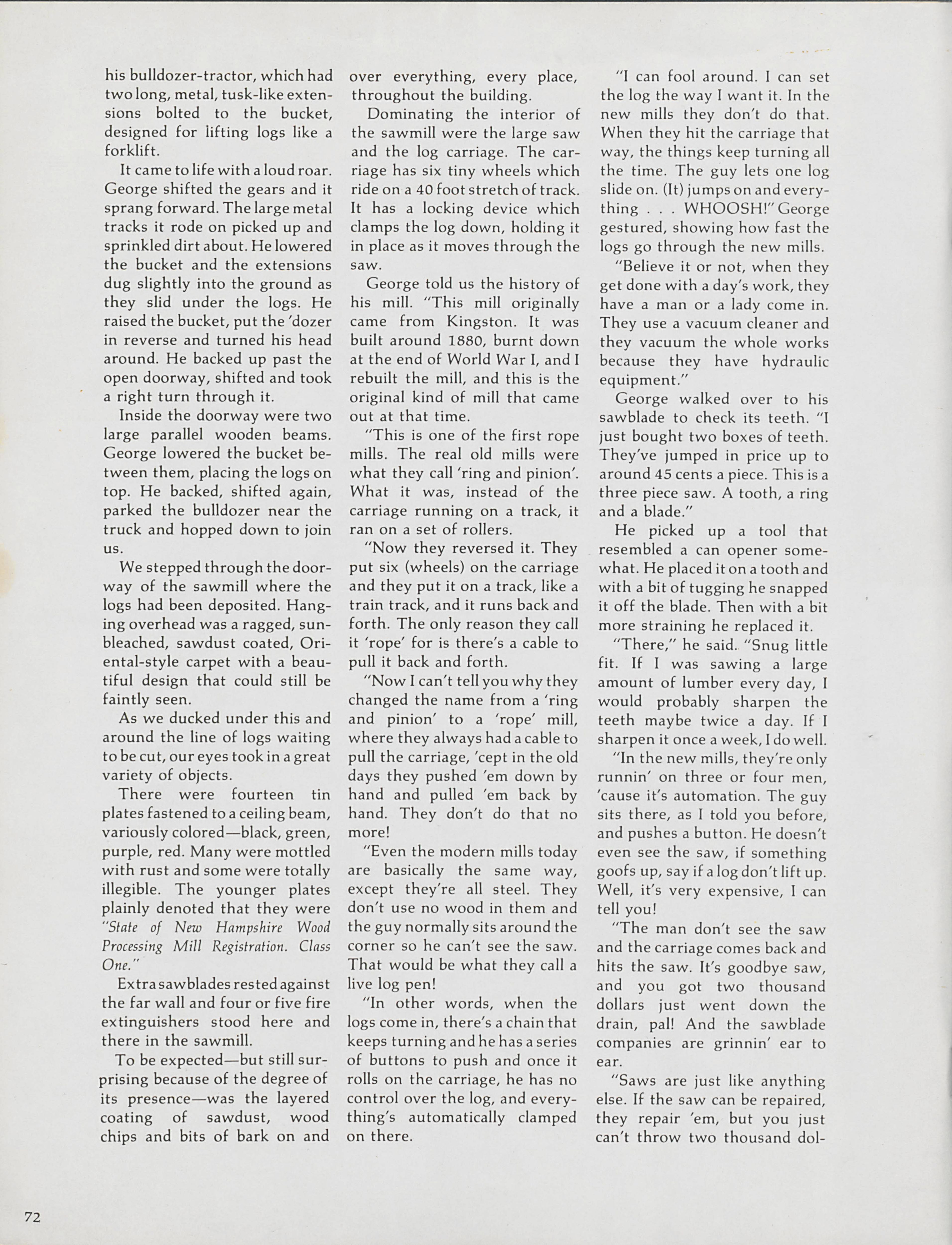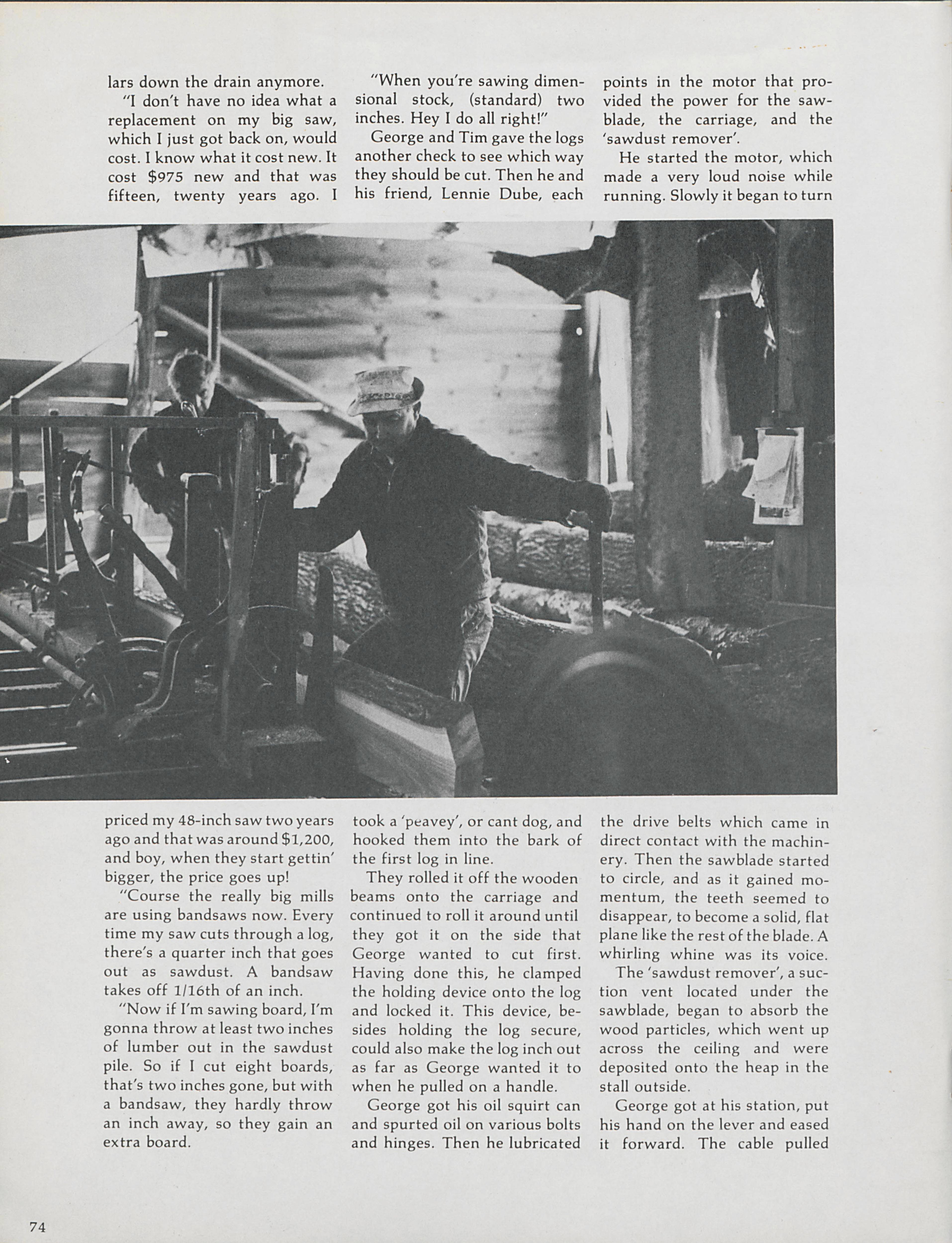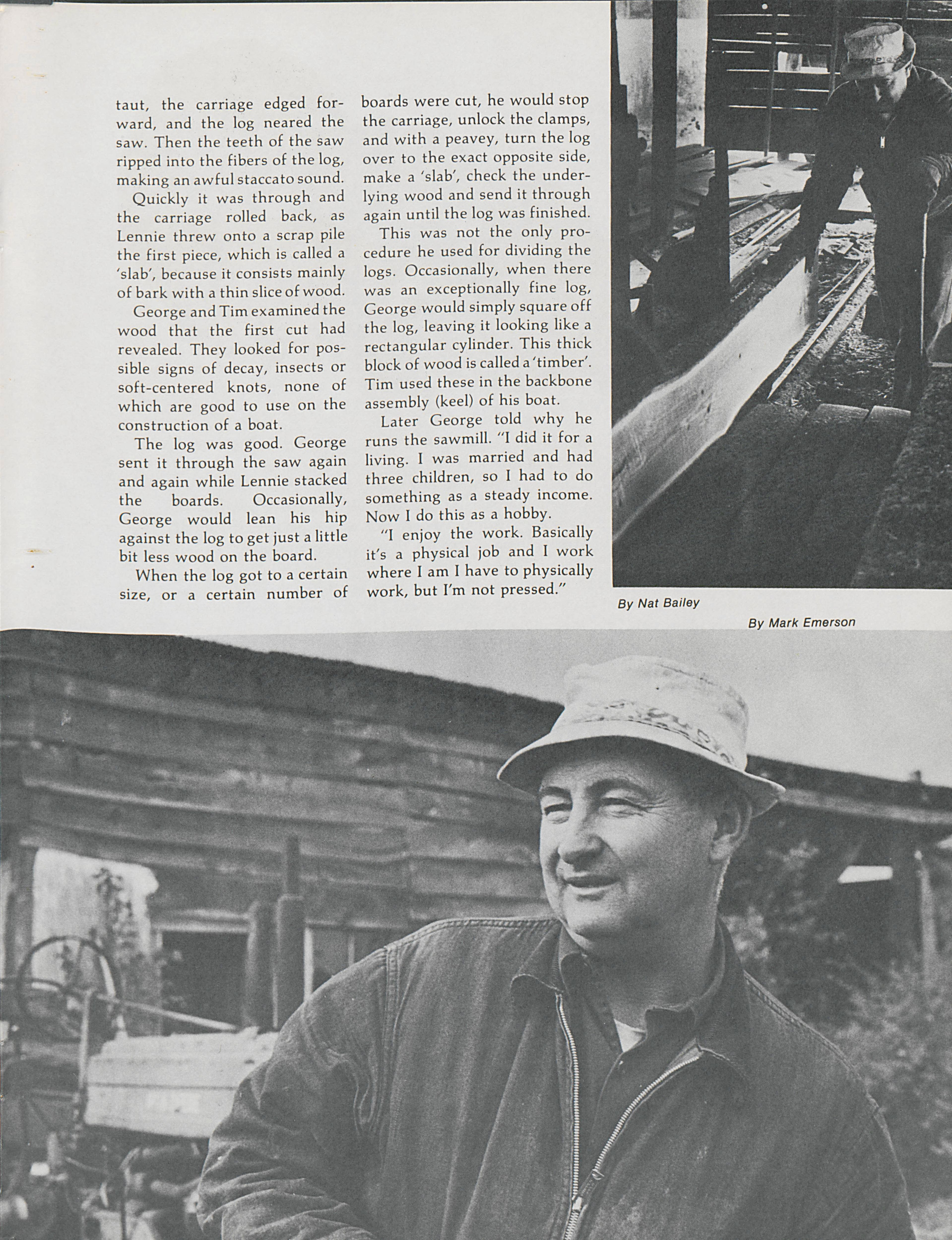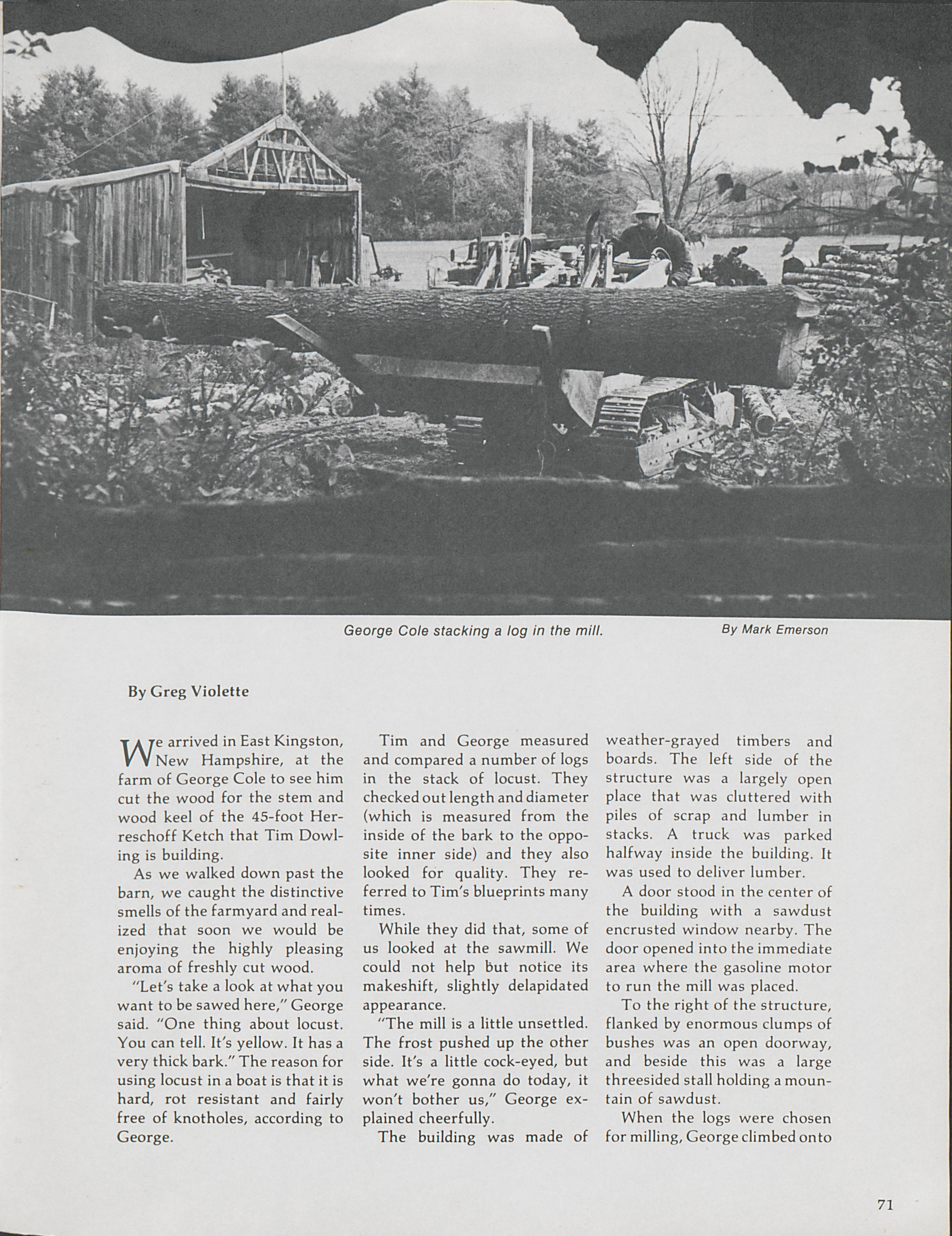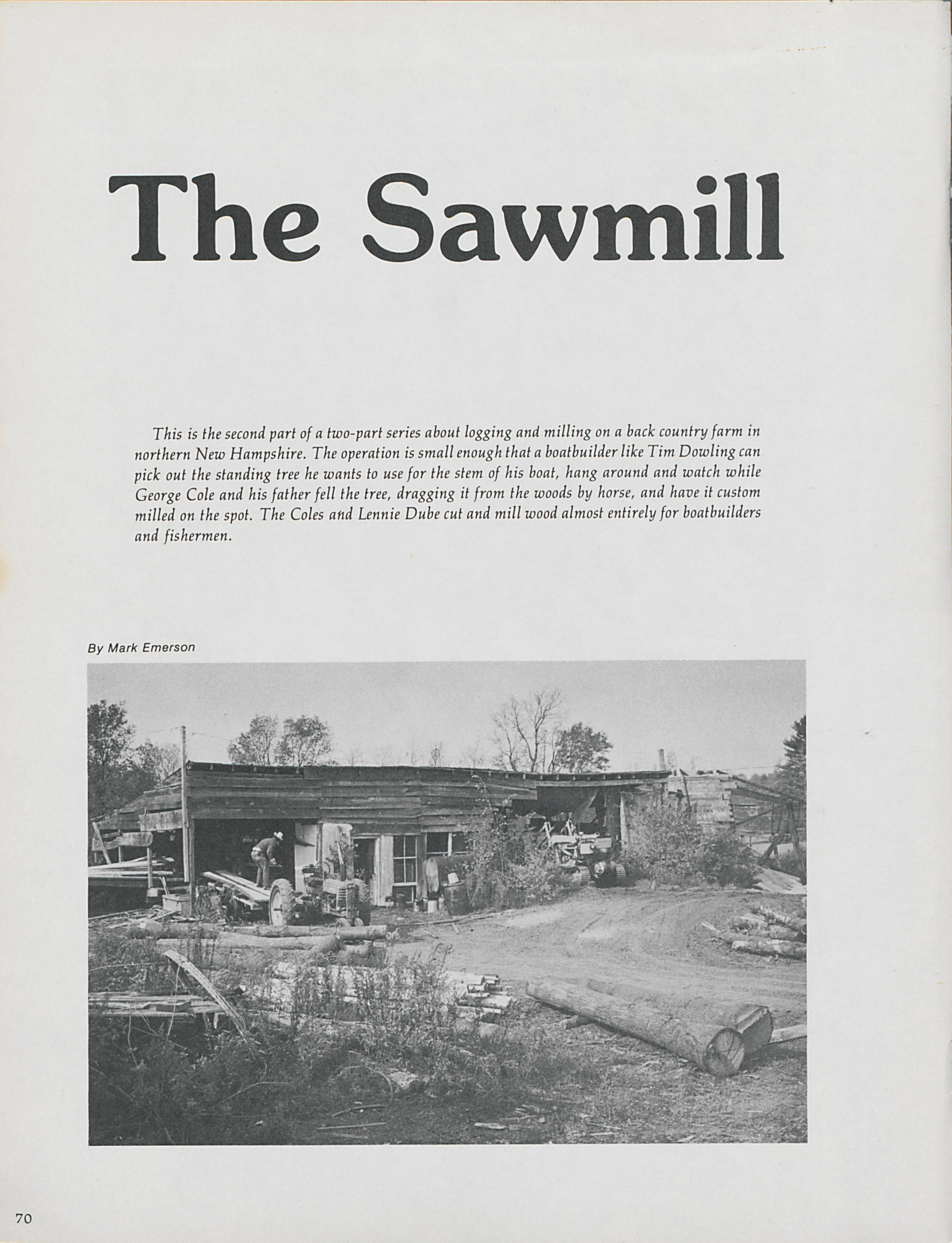 In the city of East Kingston in New Hampshire, George and Roy Cole cut trees at their sawmill. Greg Violette documents the Cole's work on trees and the precision that goes into their work.