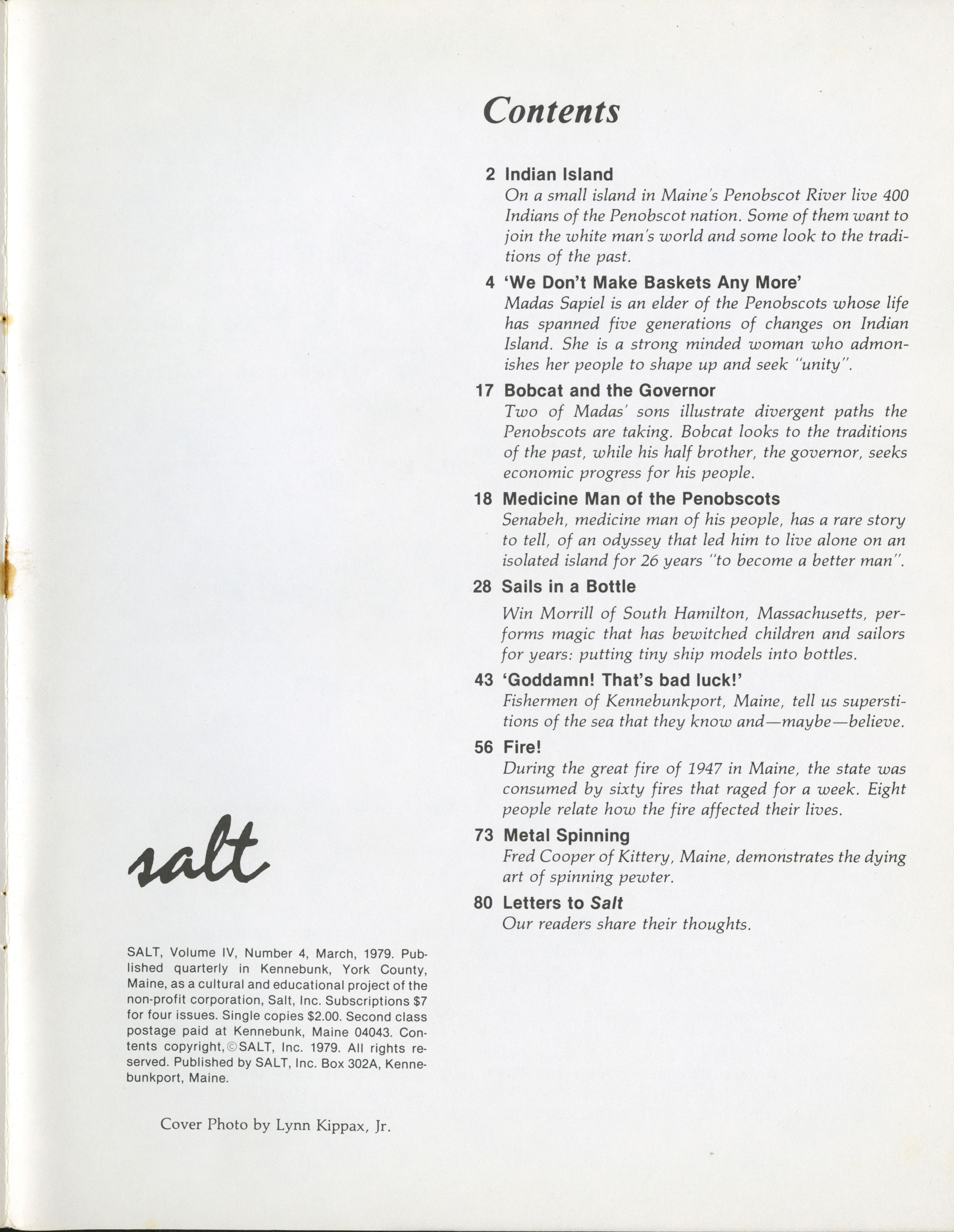 March 1979 Salt Magazine, Table of Contents
