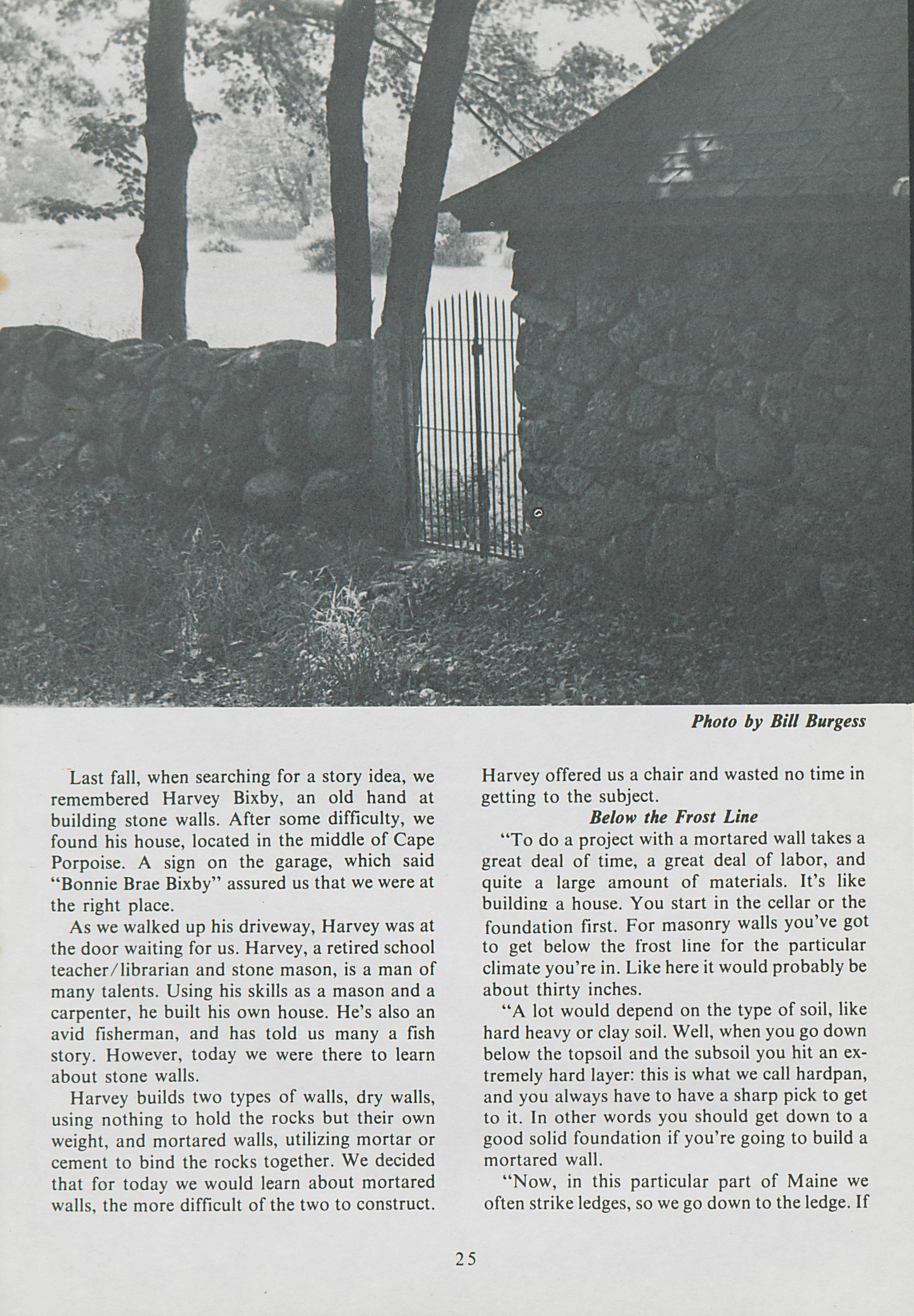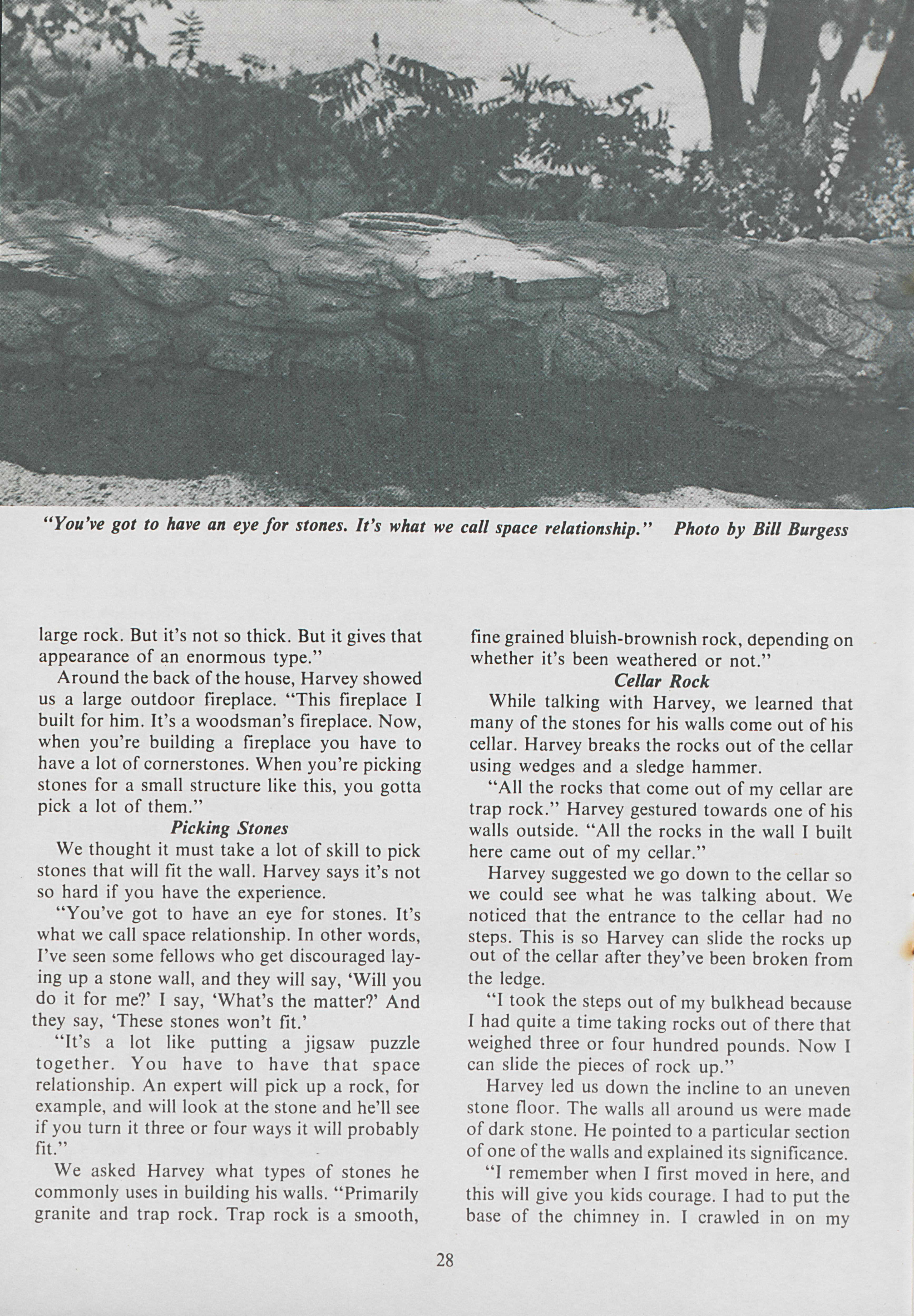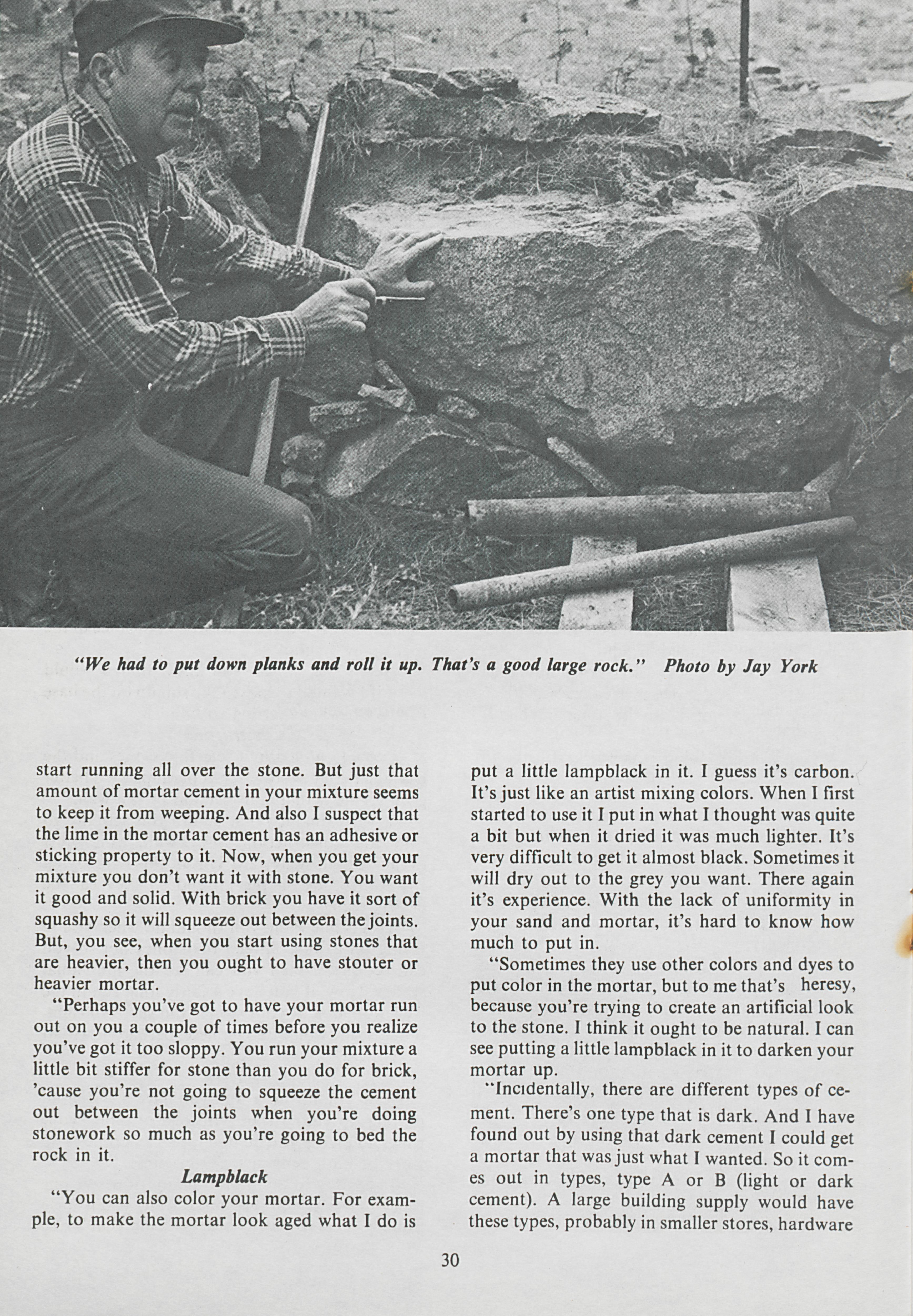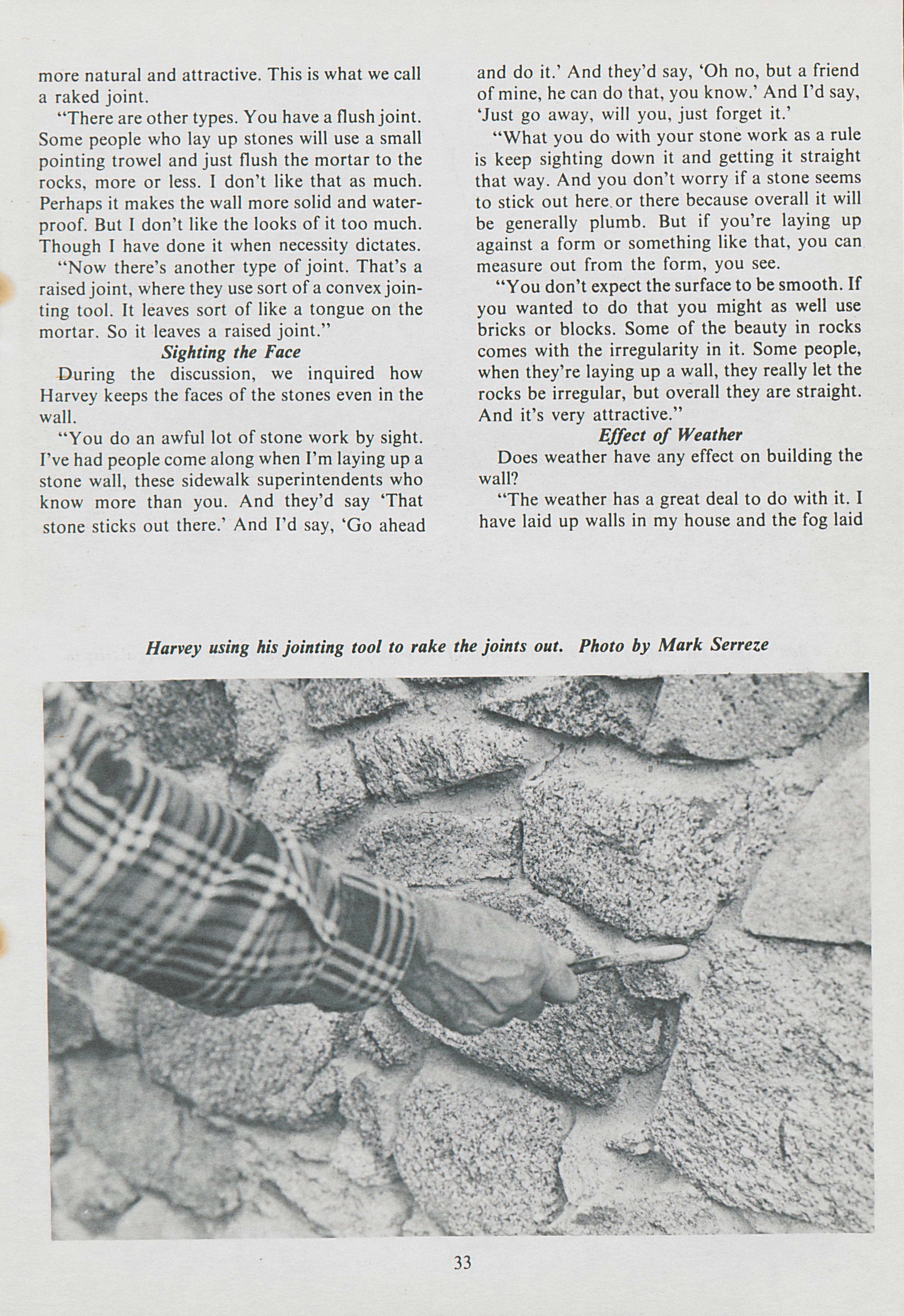 Continuing the story of stone walls, Mark Serreze speaks to Harvey Bixby about the mortared wall. Bixby discusses his work as a mason and creating stone walls.