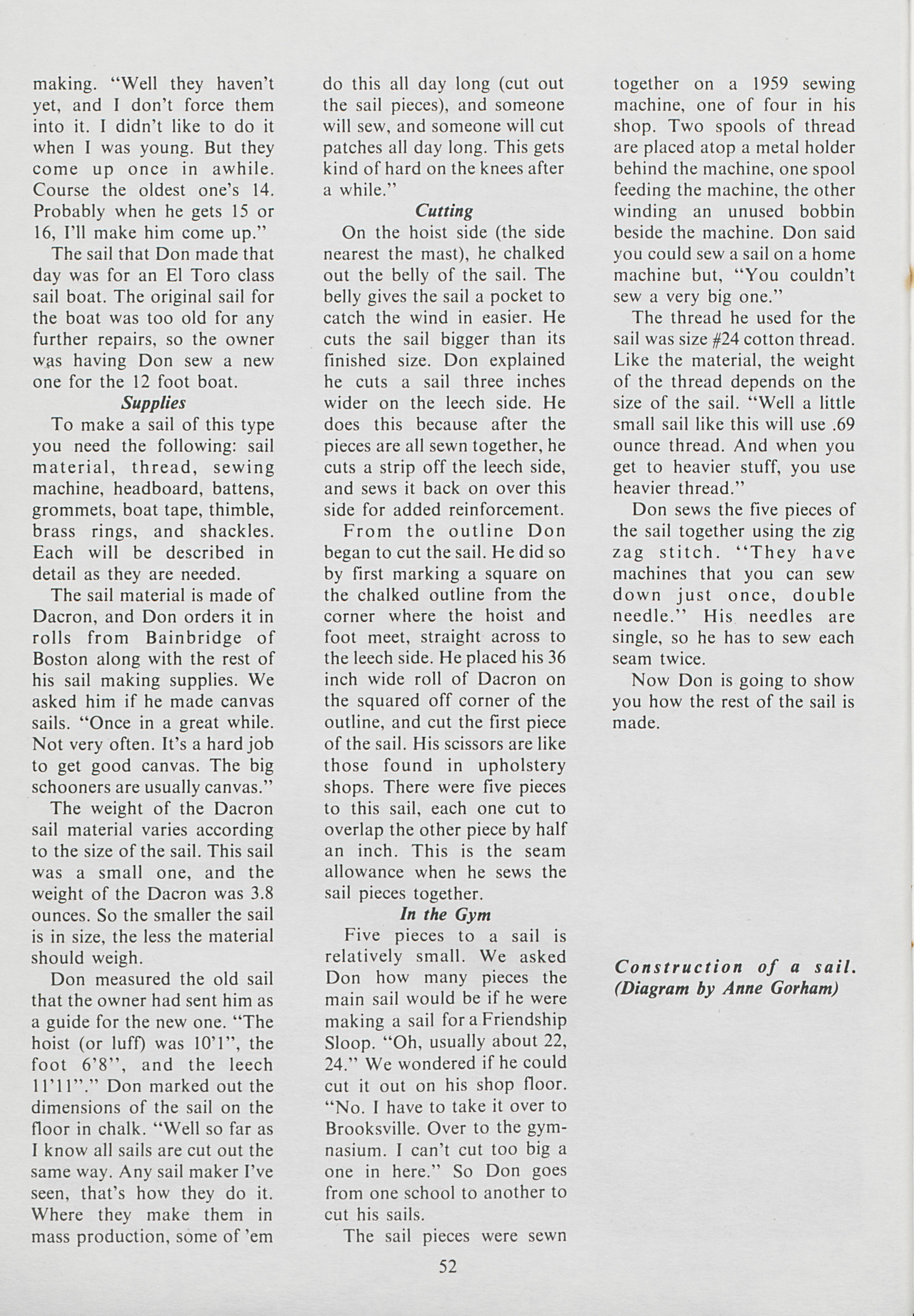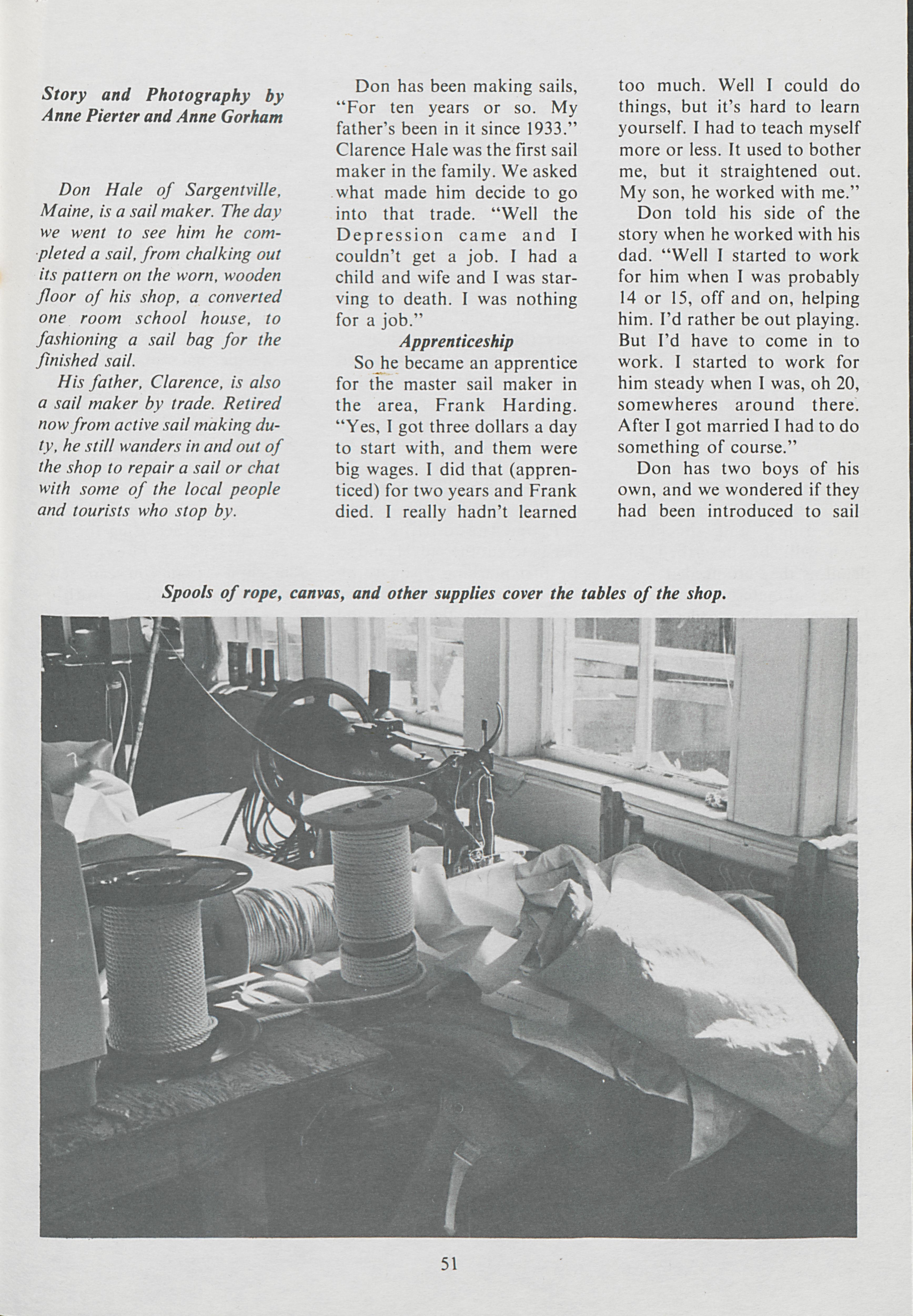 Sailmakers by trade, Don and Clarence Hale create sails in their sailmaking shop in Sargentville. Anne Pierter documents the work that goes into creating the perfect sail.