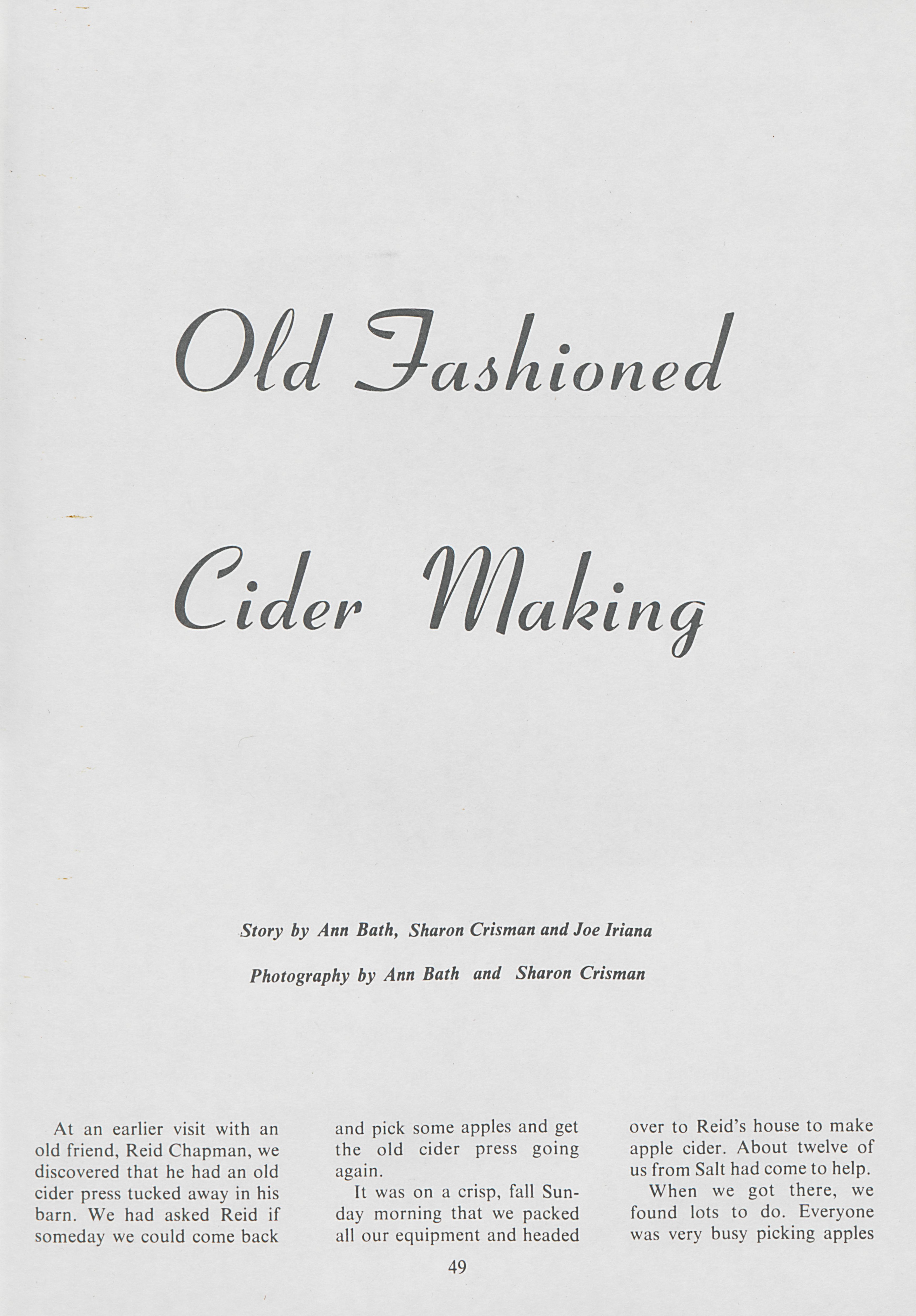 After several hours of preparation, 12 Salt students were guided by Reid Chapman on making apple cider the old fashioned way. Ann Bath and others document the process Chapman goes through to make his cider.