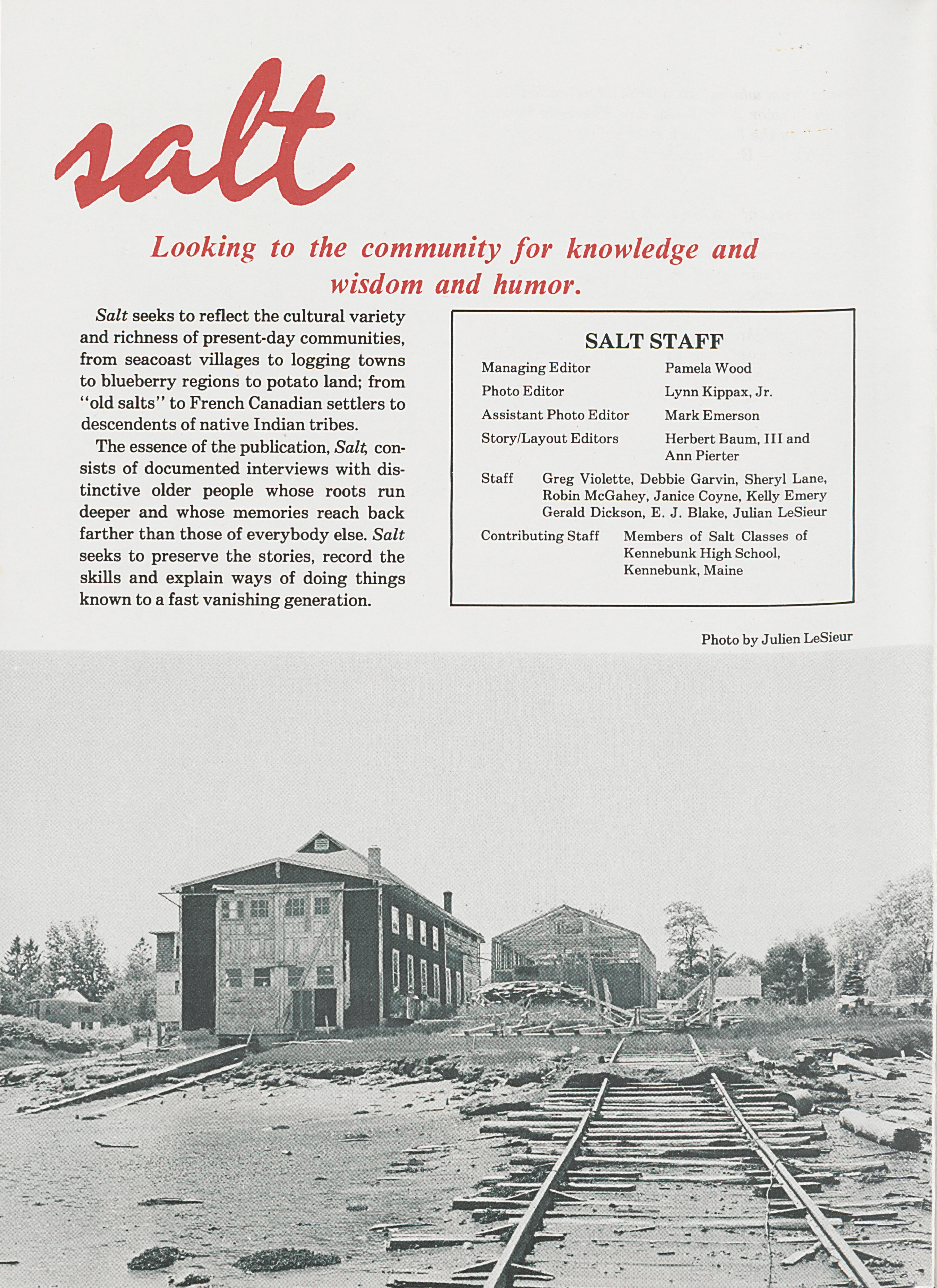 Listing of Salt production staff, contributors, and faculty.