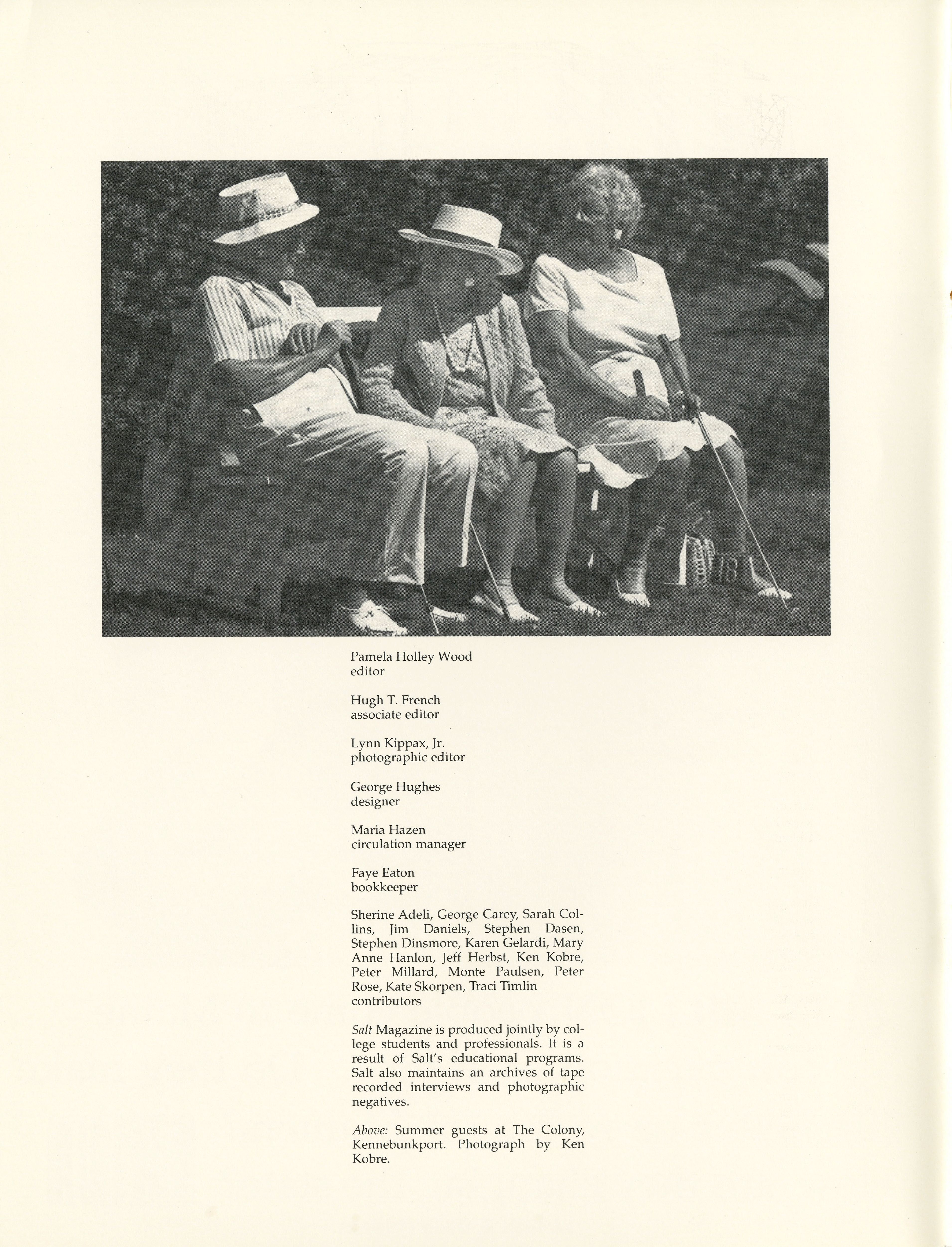 Inside front cover for the August 1987 Salt Magazine with masthead.