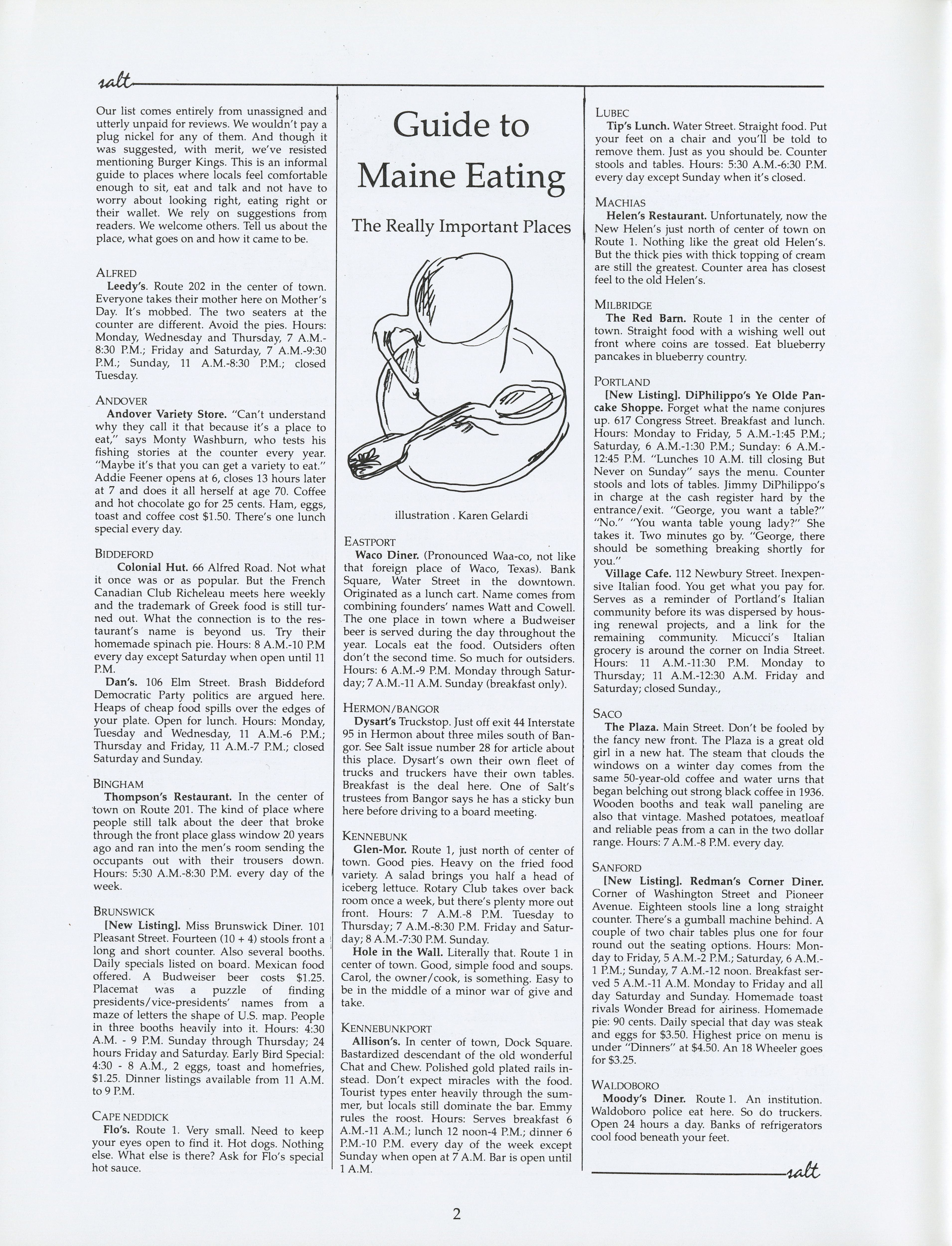 Guide to help people find important places to eat in Maine.