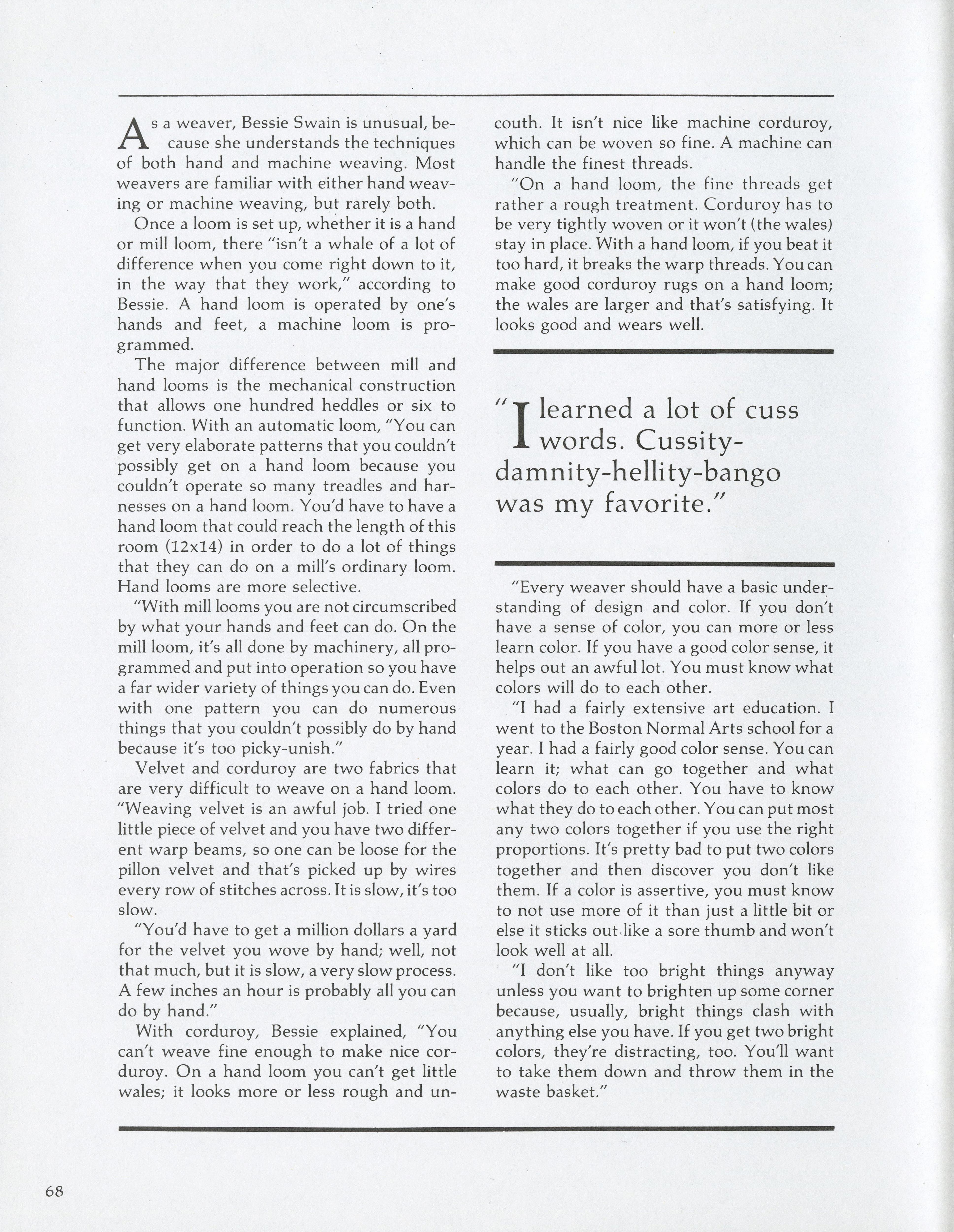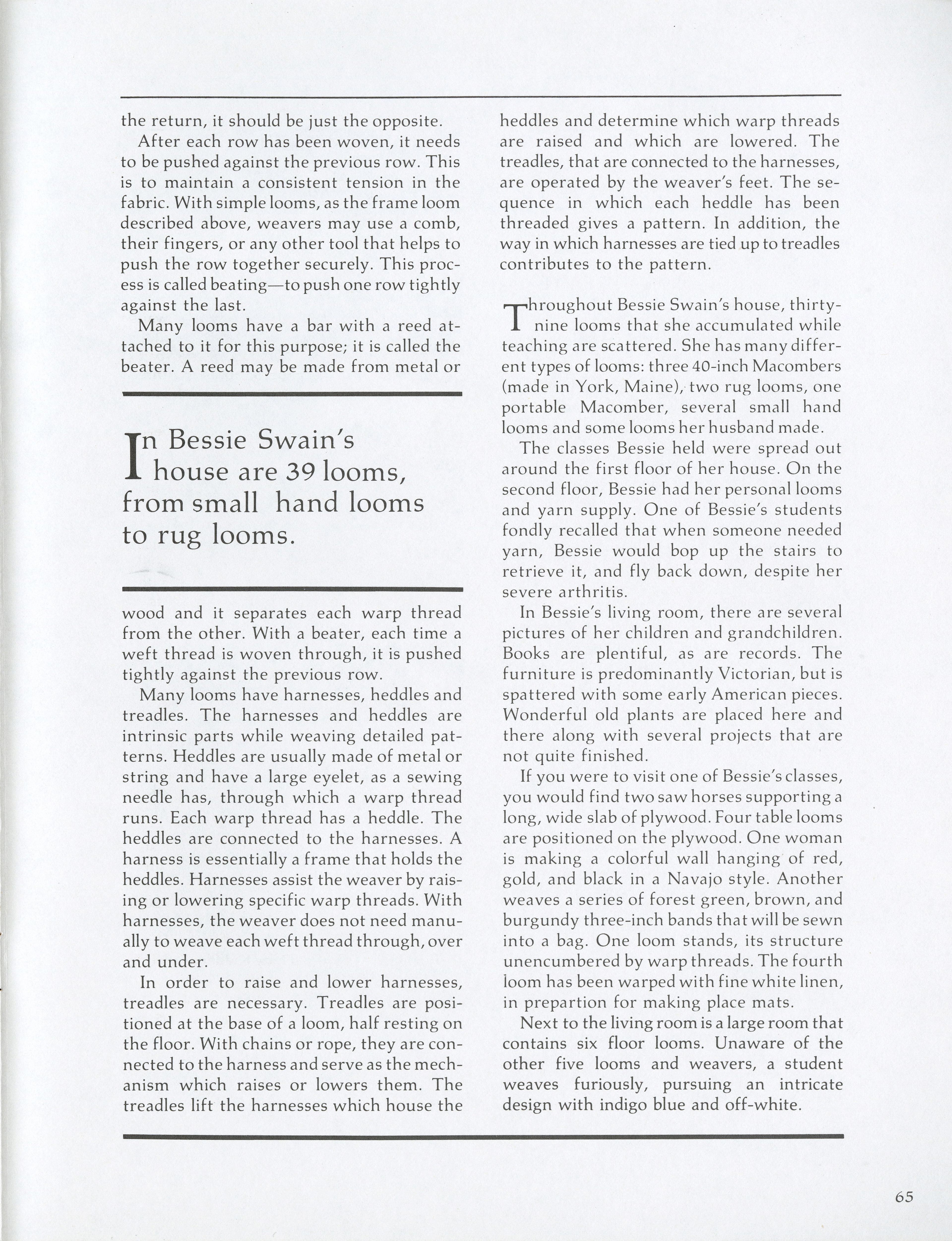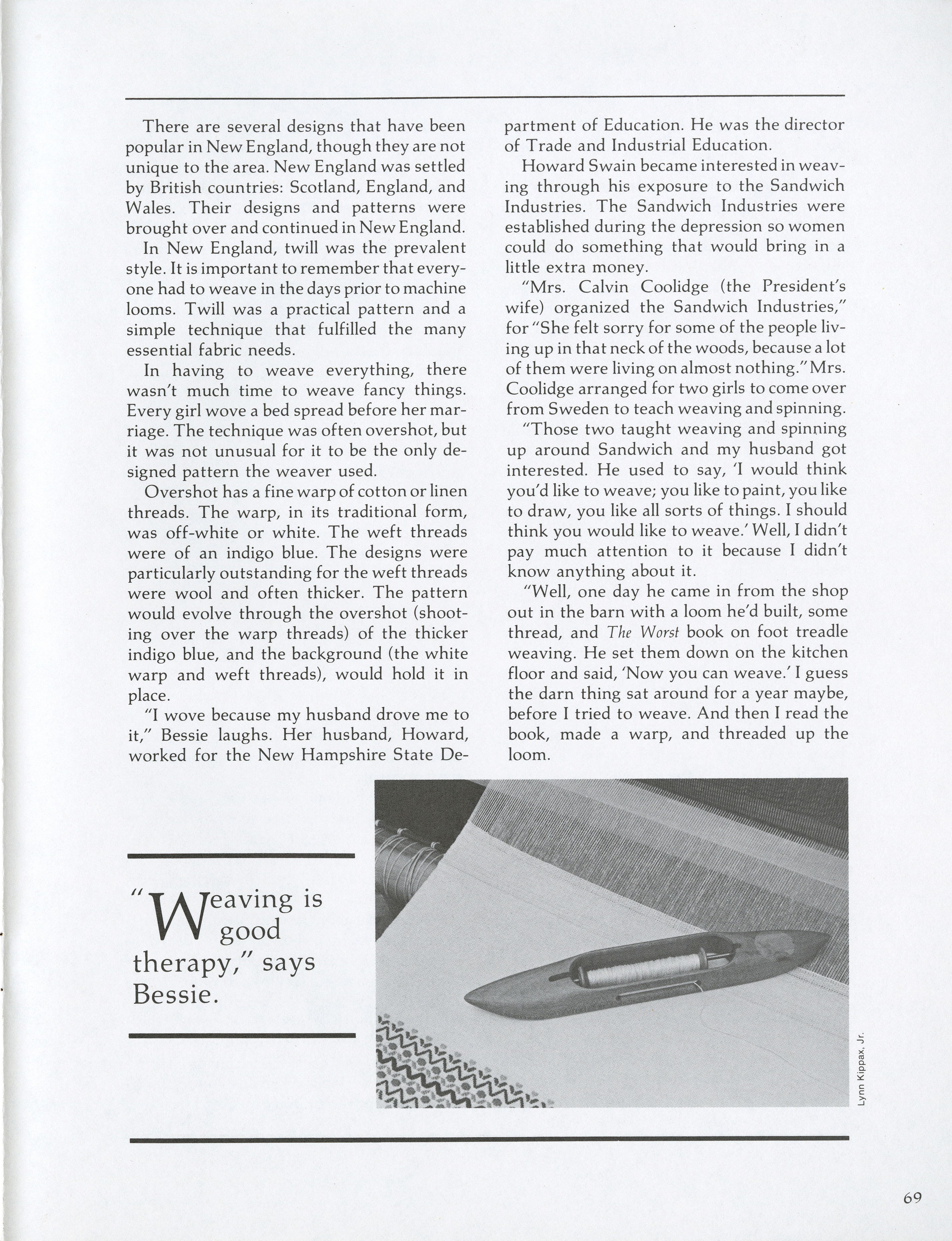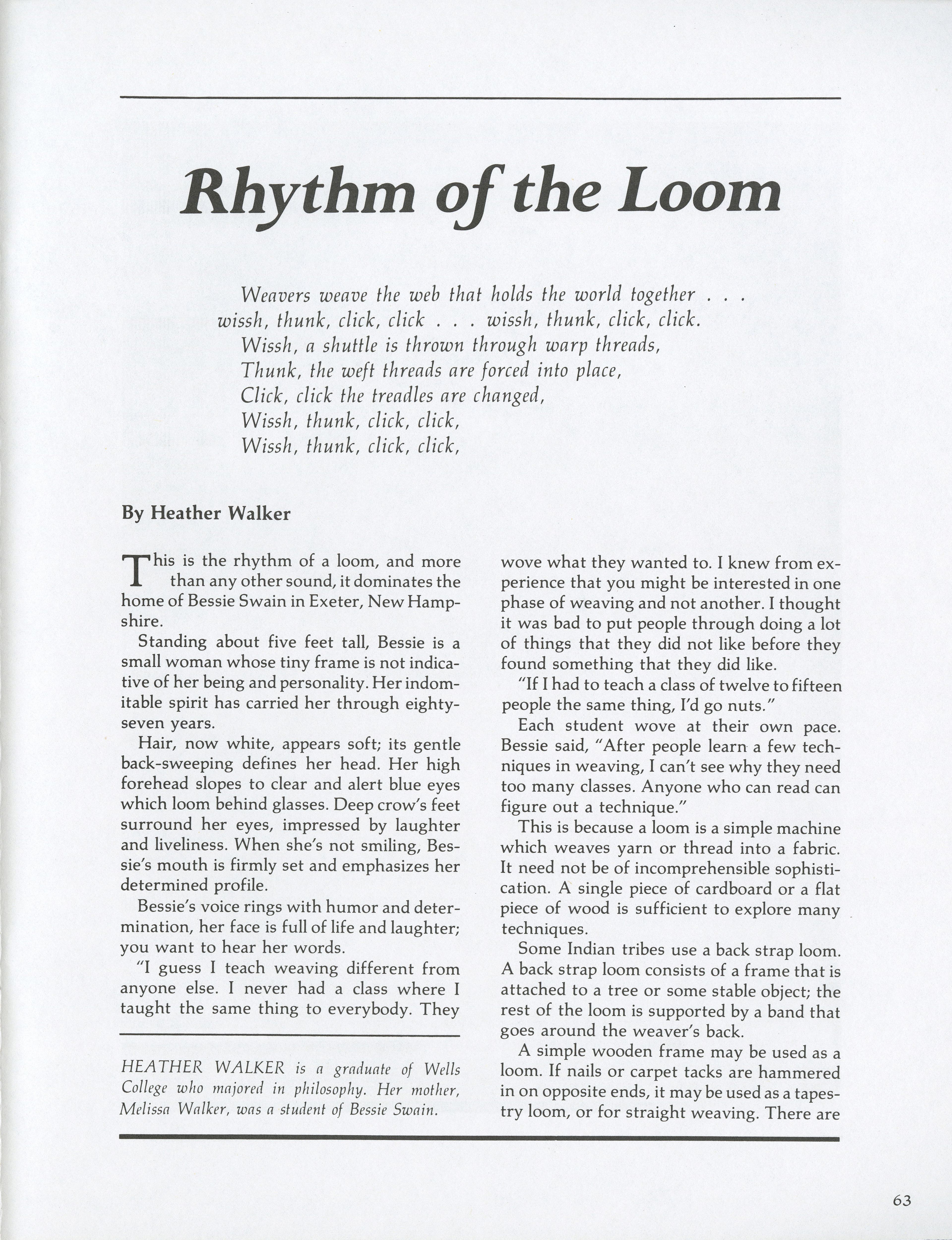 For generations, Bessie Swain has taught individuals in New England how to weave. Heather Walker speaks to Swain about her craft.