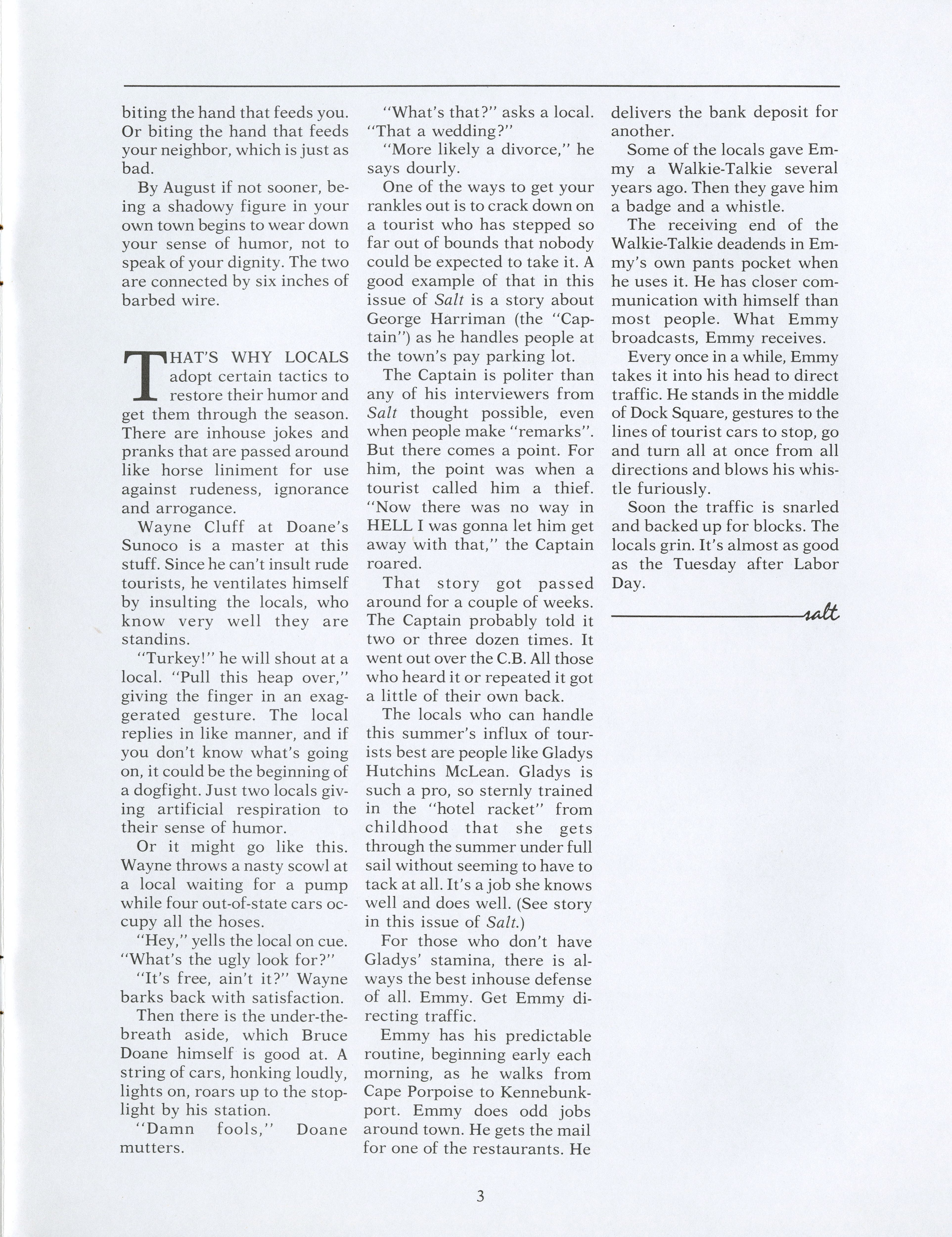 Pamela Wood introduces readers to stories in this issue of Salt magazine related to town locals and tourism.