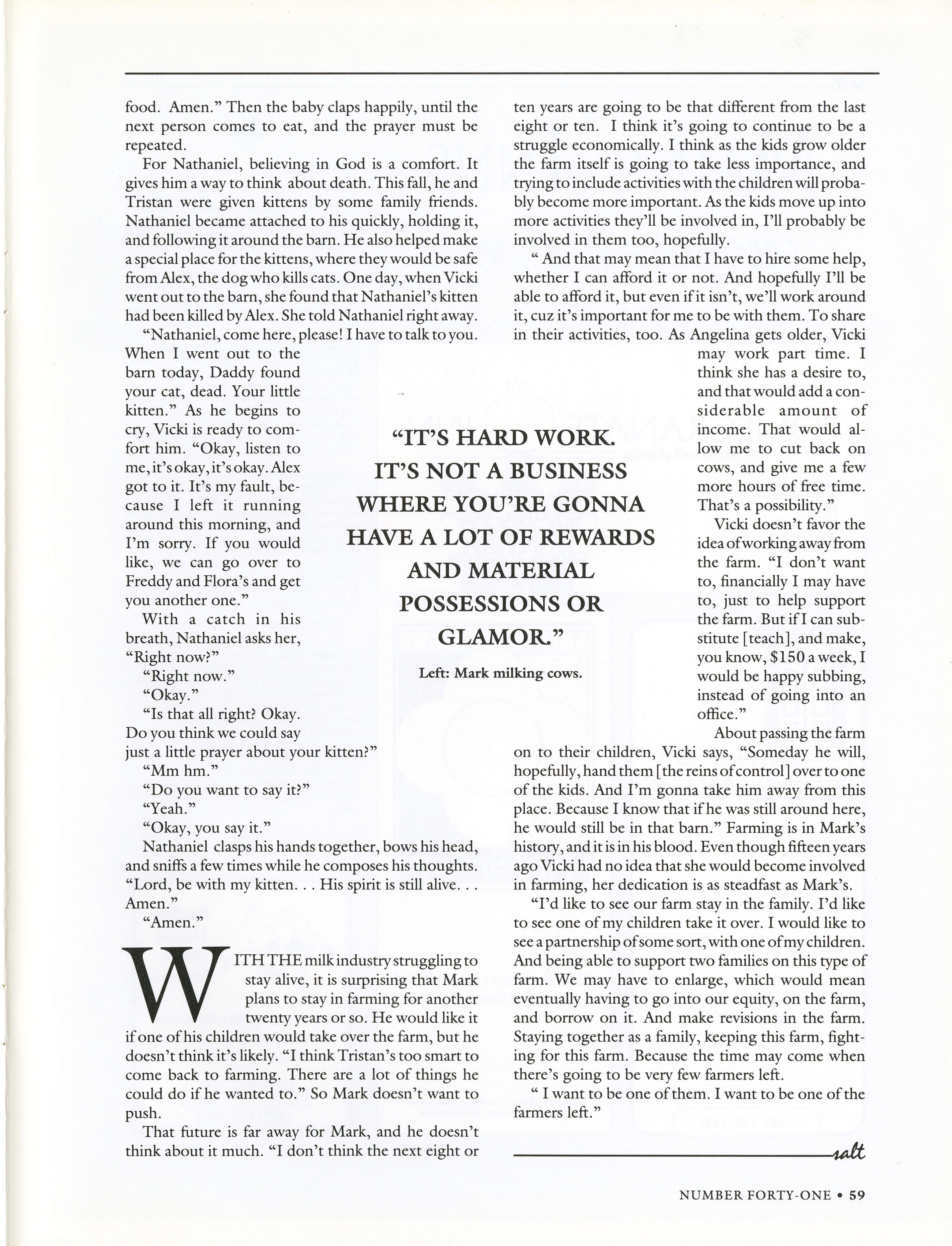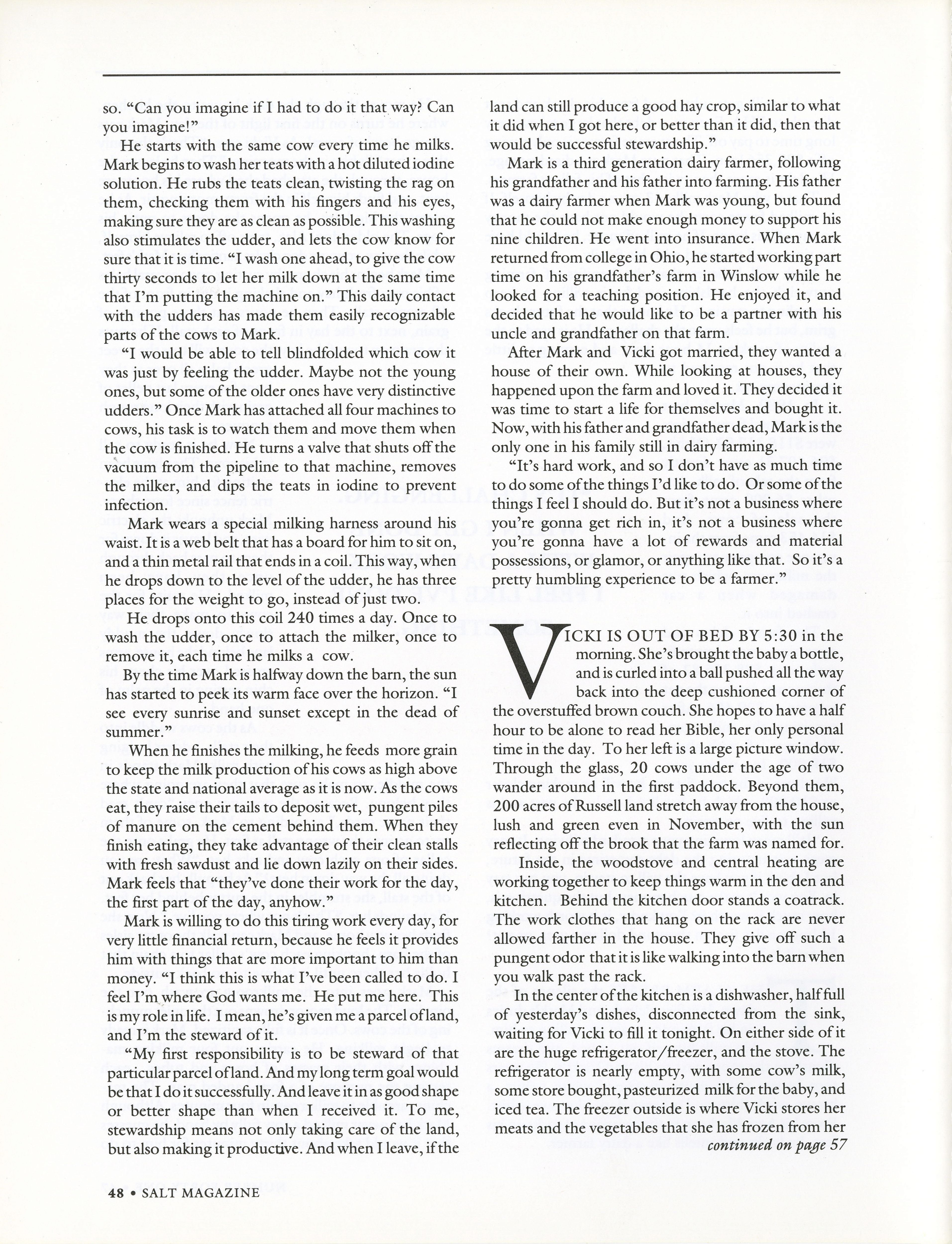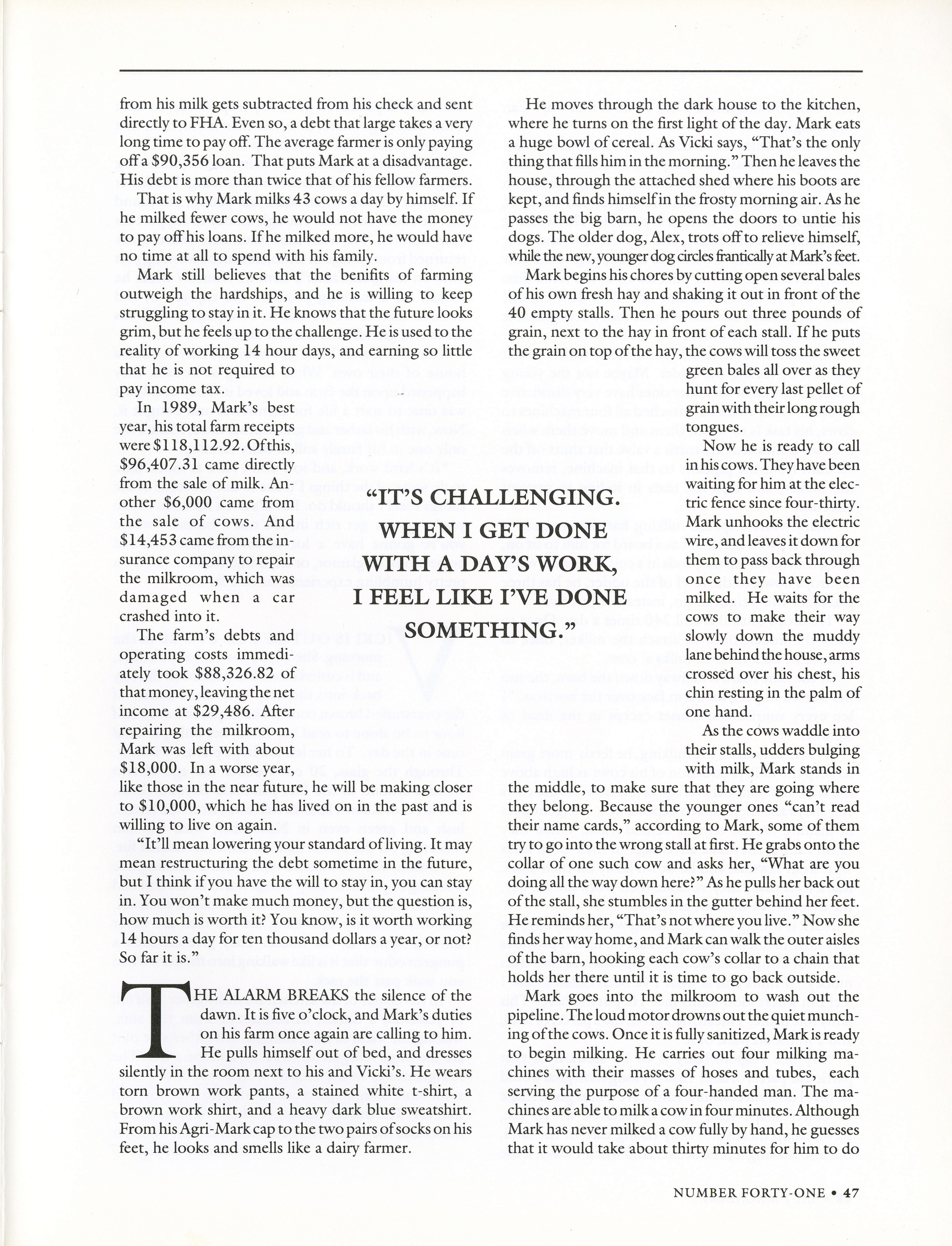 Despite the challenges facing dairy farmers, the Russell family fights to keep their farm going. Anna Hoberman documents the lives of the Russell family and their work on their dairy farm in Litchfield.