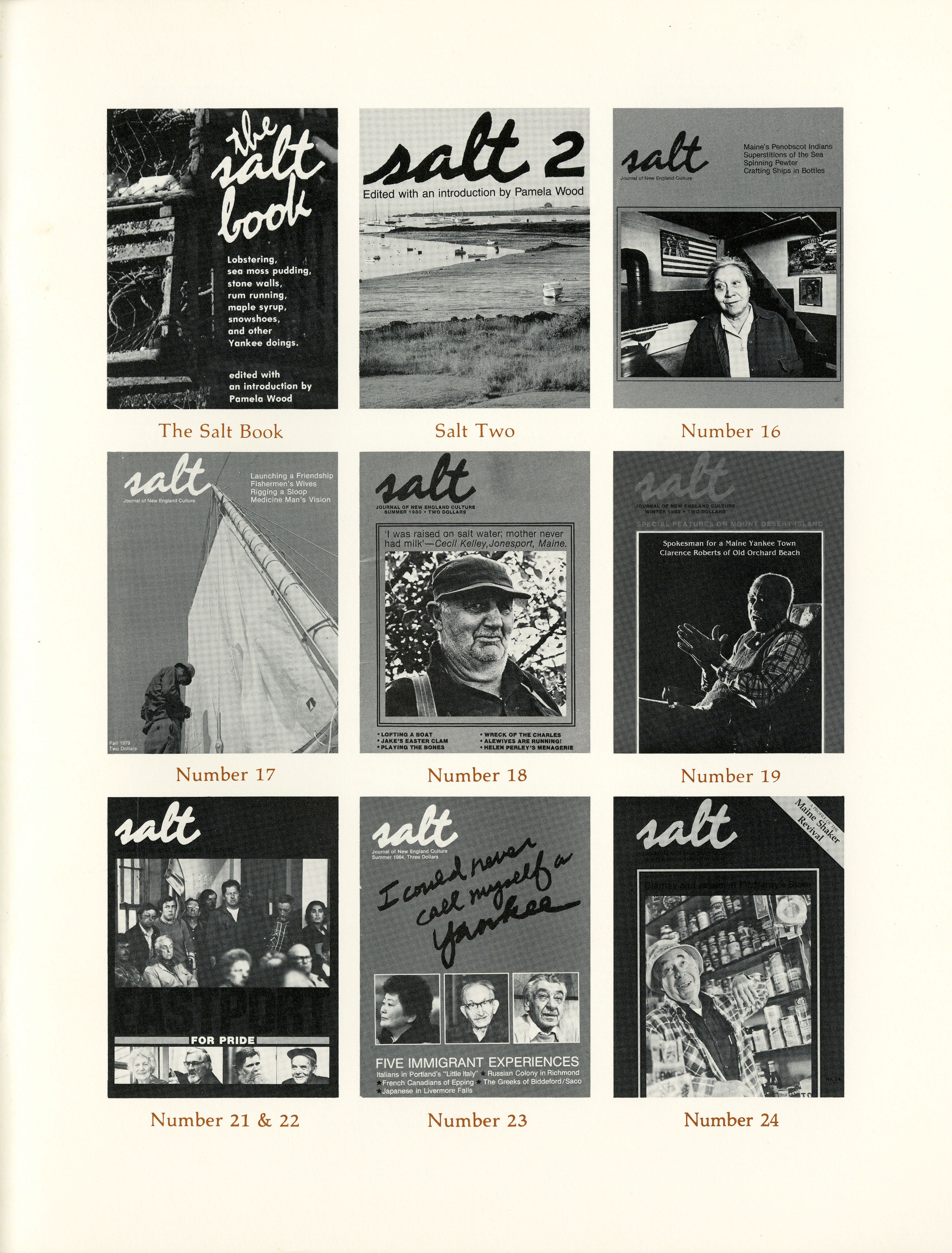 Inside back cover for the August 1985 Salt Magazine, with pictures of Salt Magazine covers.