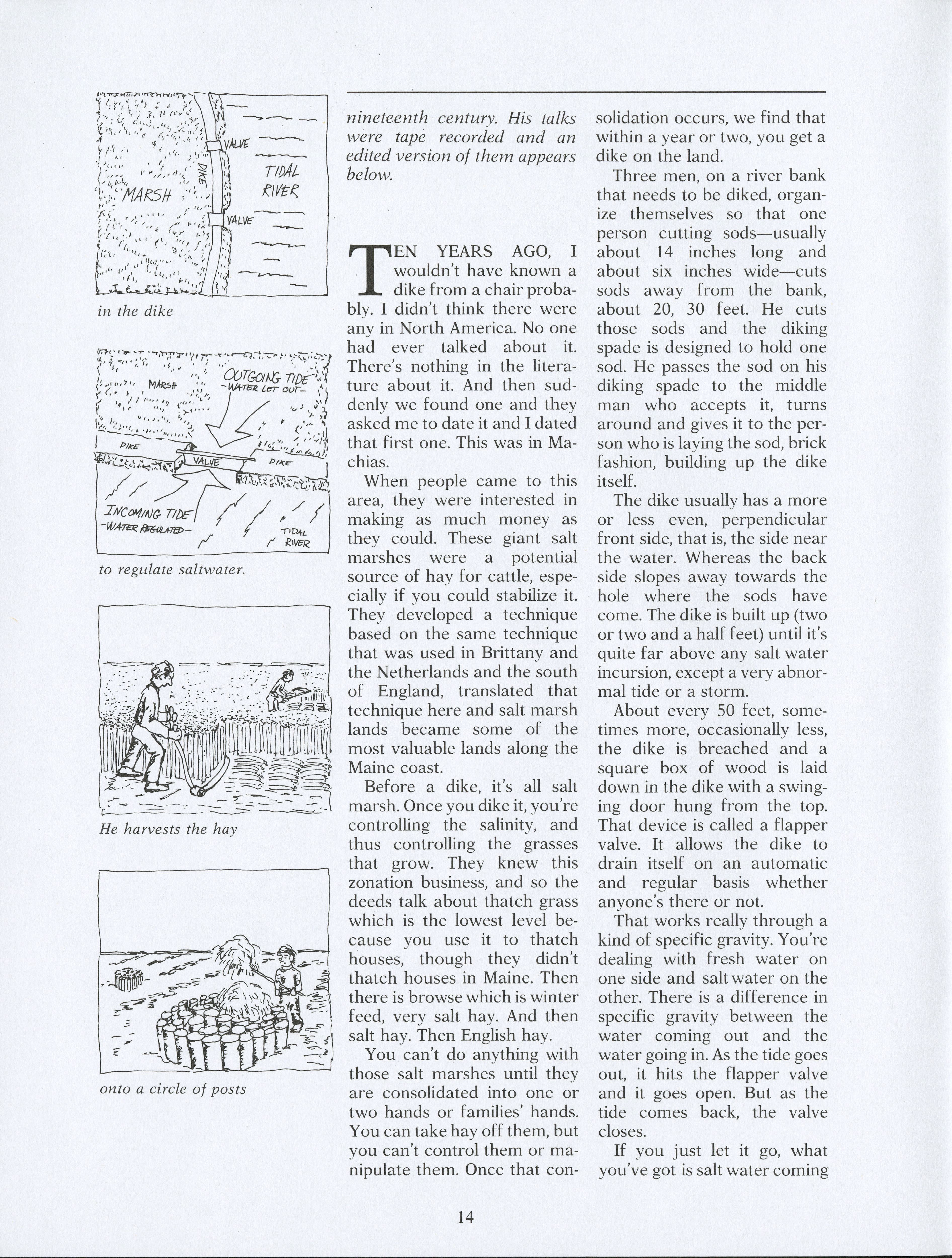 David C. Smith, Professor of History, looks at how salt marshes in Maine function. Smith discusses how dikes were built in order to farm the salt marshes.