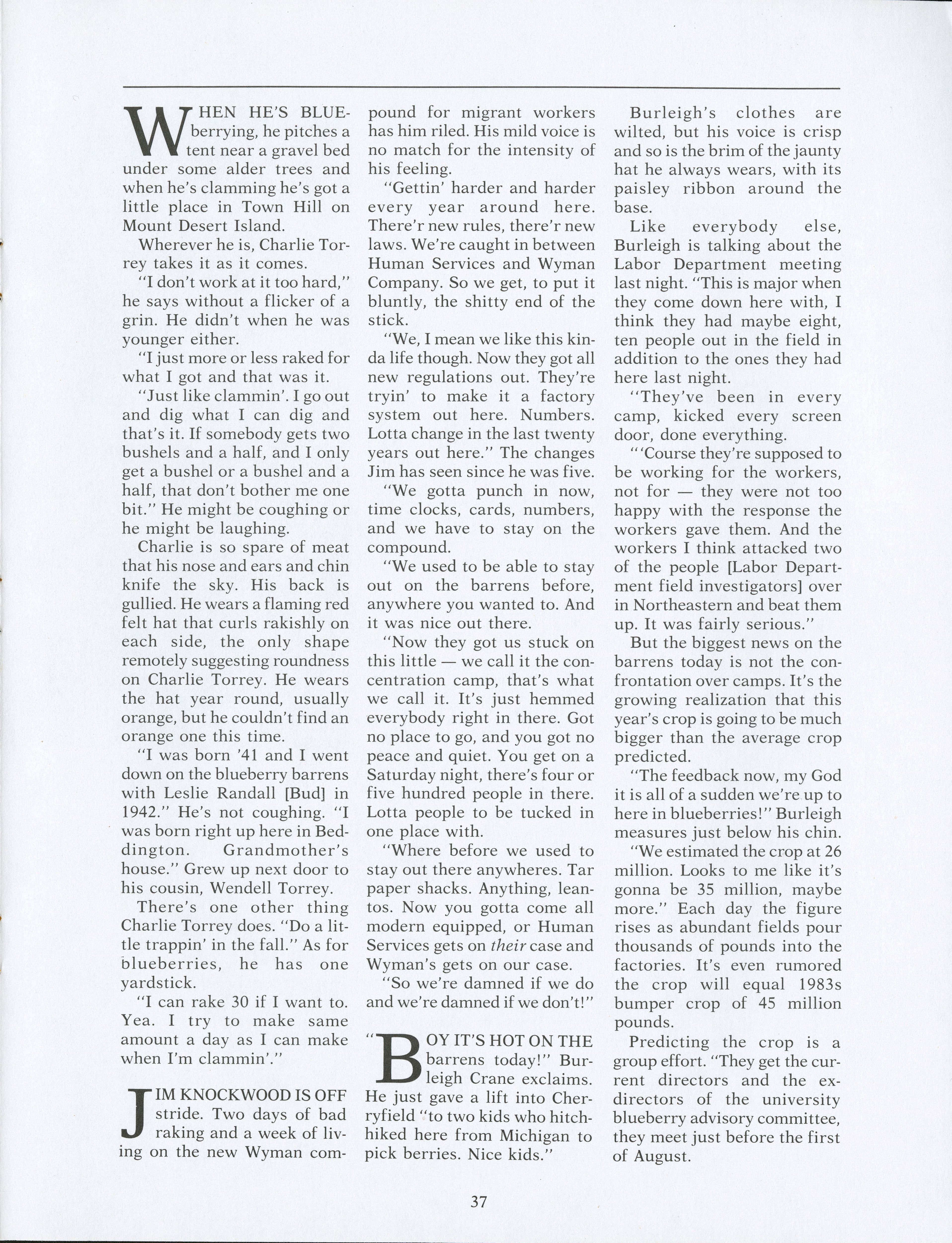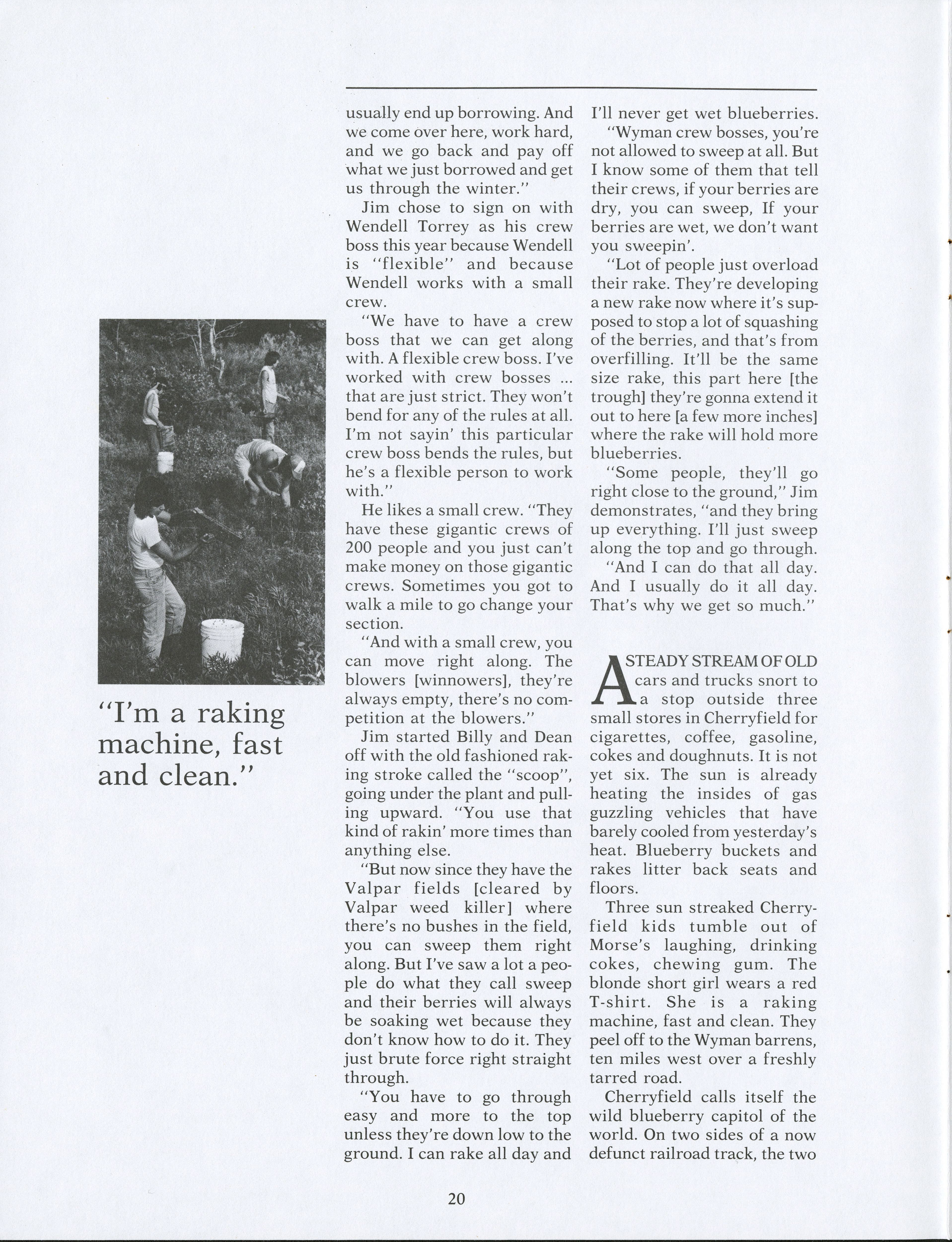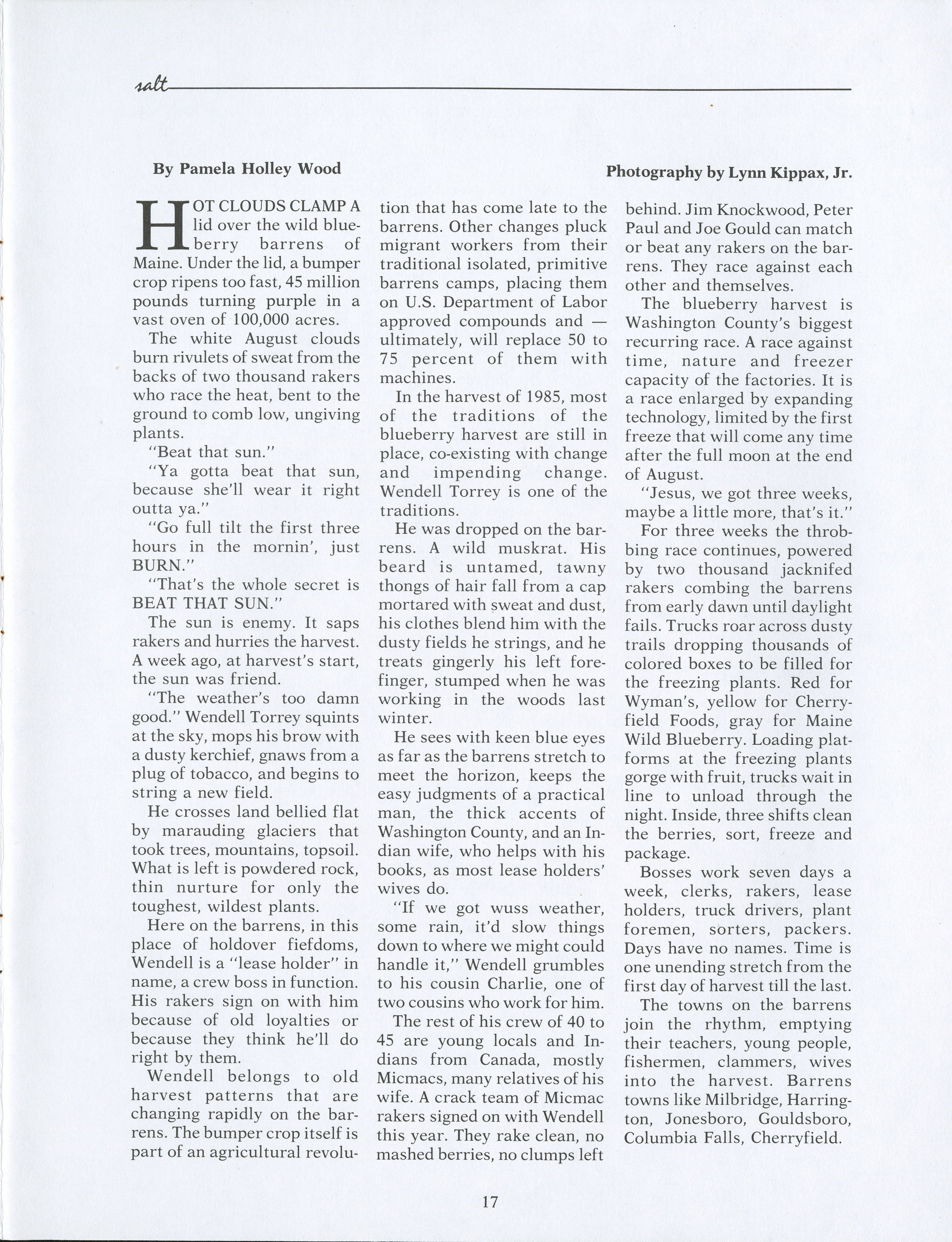 Within the blueberry barrens, many different types of individuals help to complete the blueberry harvest. Pamela Wood speaks to these individuals to see what the harvest means to them and what they see for the future.