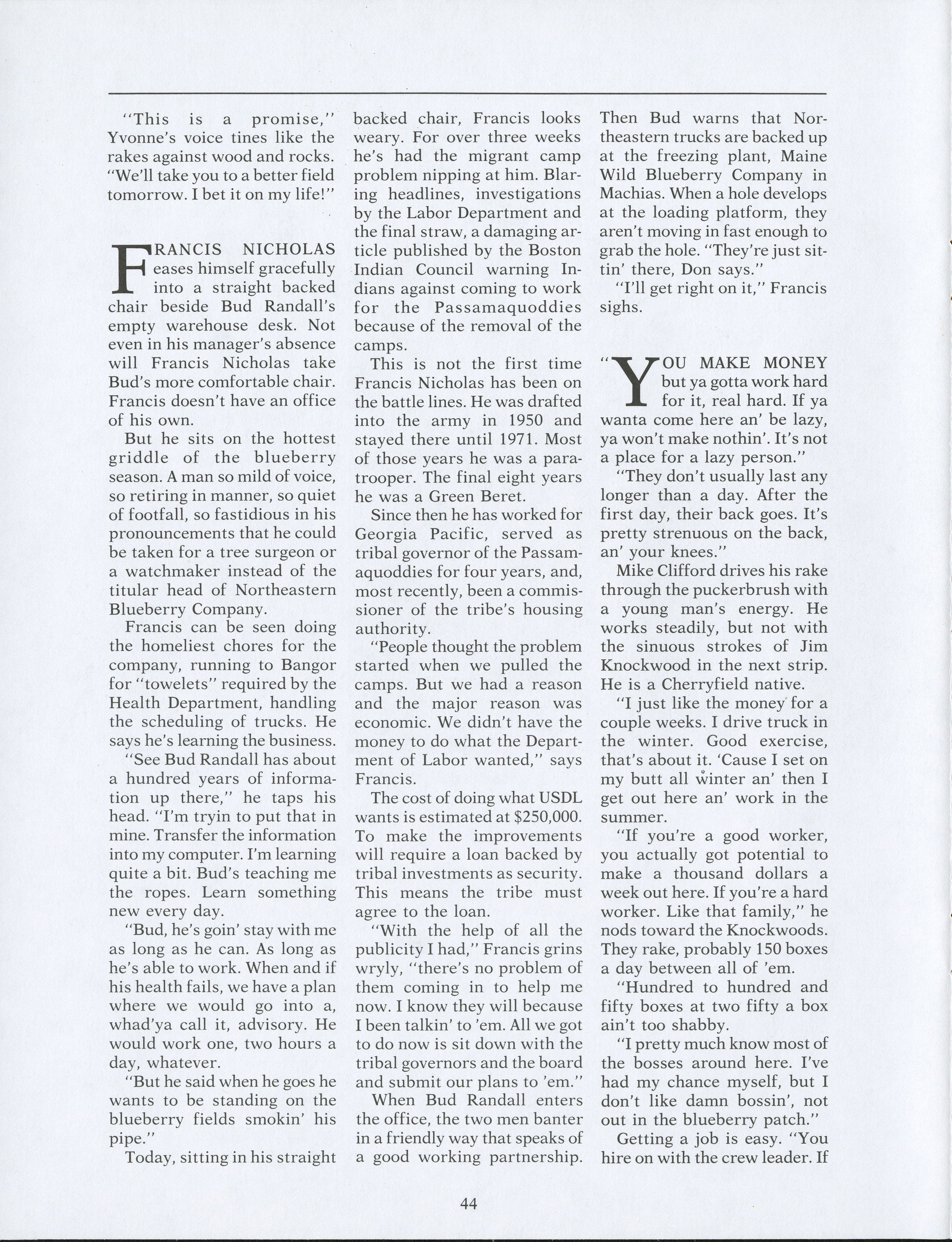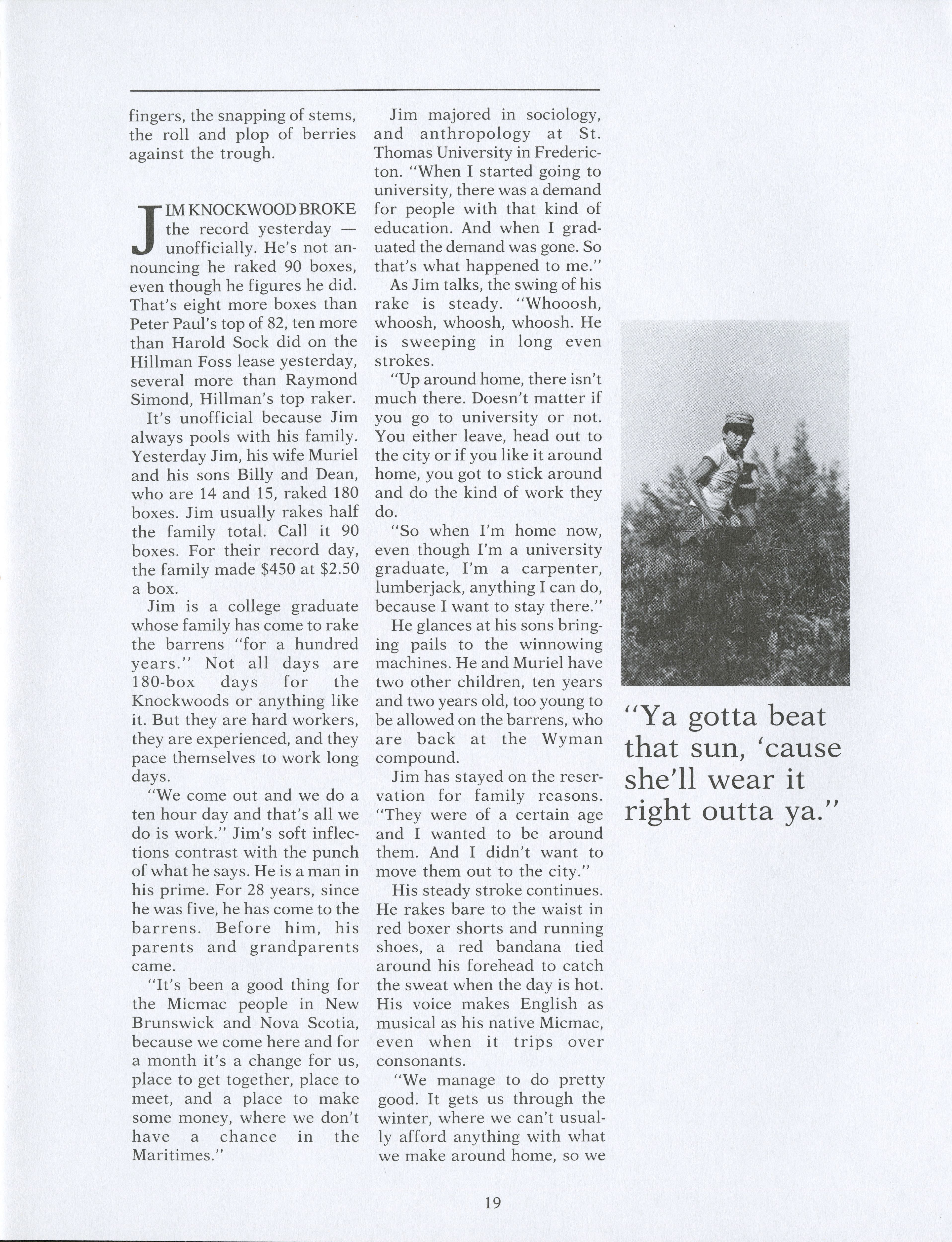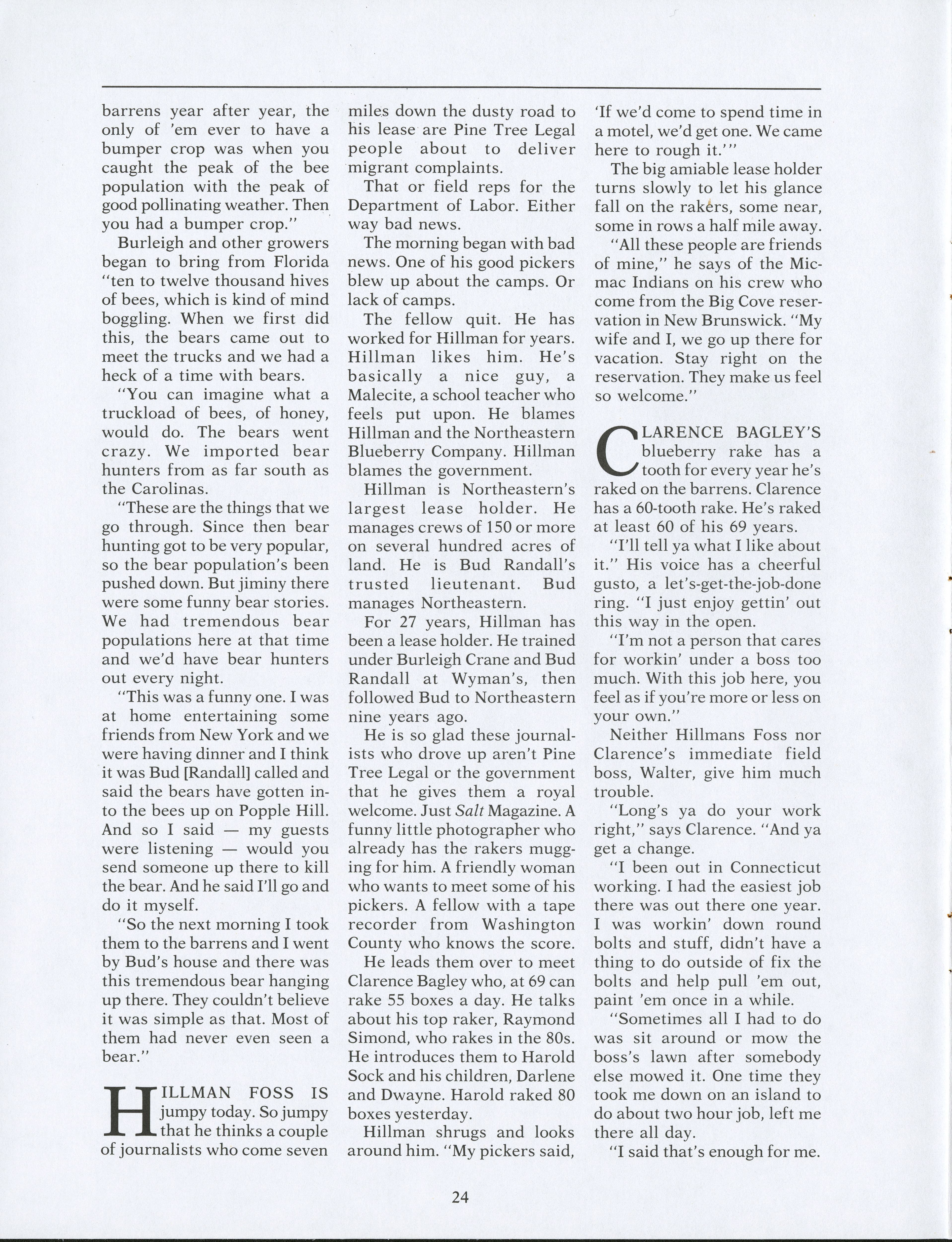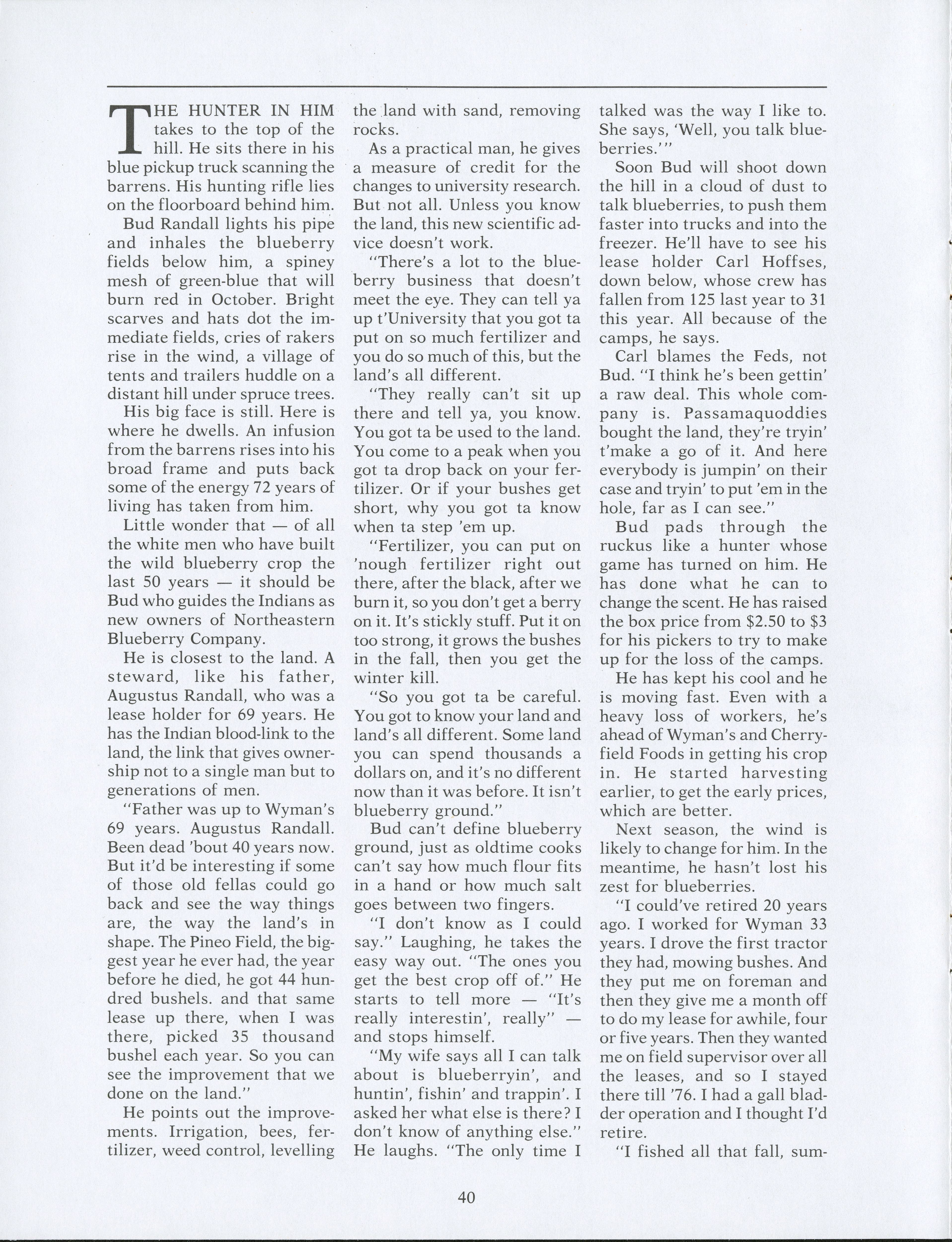 Within the blueberry barrens, many different types of individuals help to complete the blueberry harvest. Pamela Wood speaks to these individuals to see what the harvest means to them and what they see for the future.
