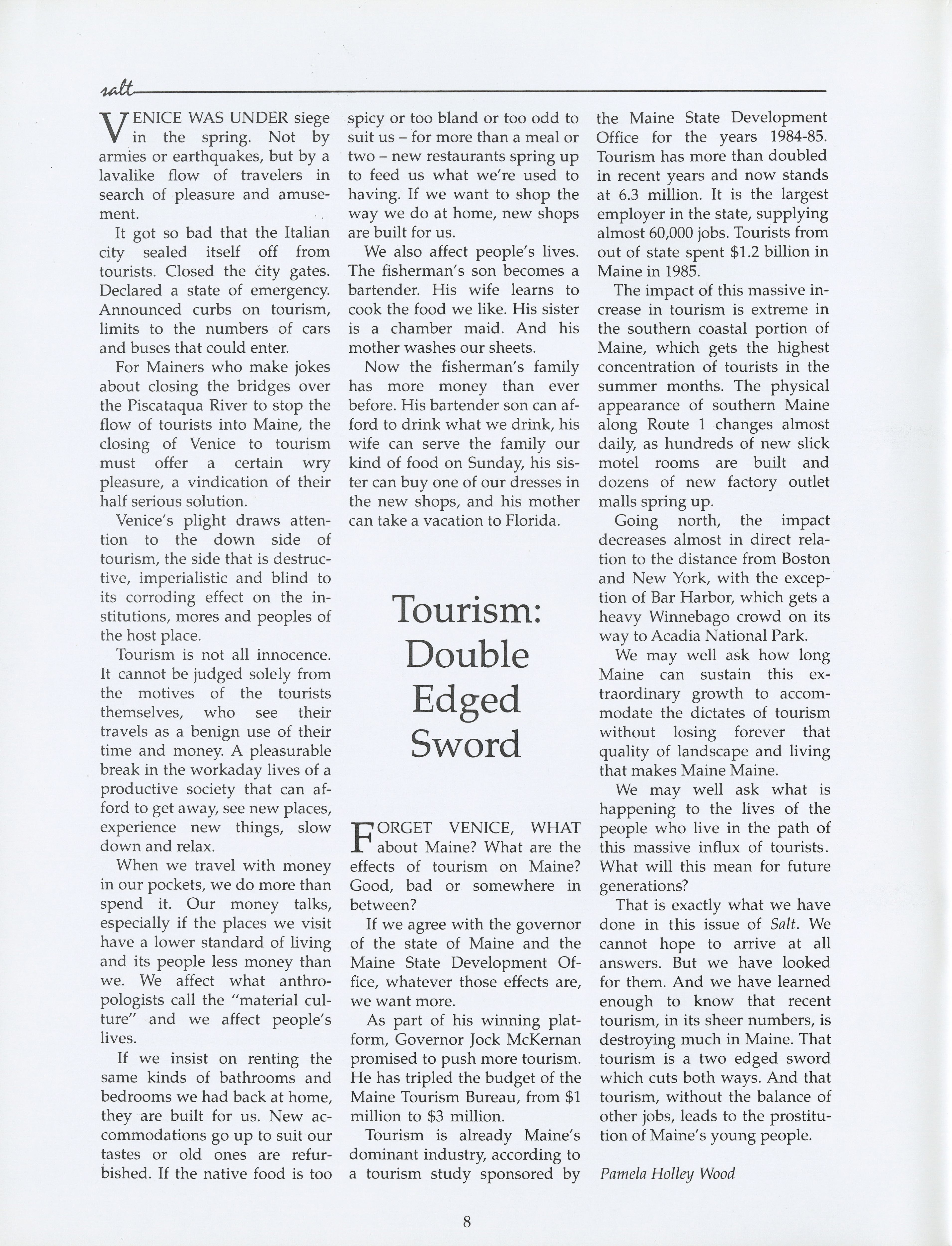 Pamela Wood speaks about tourism as a double edged sword in Maine, and how it is impacting the state in the 1980s.