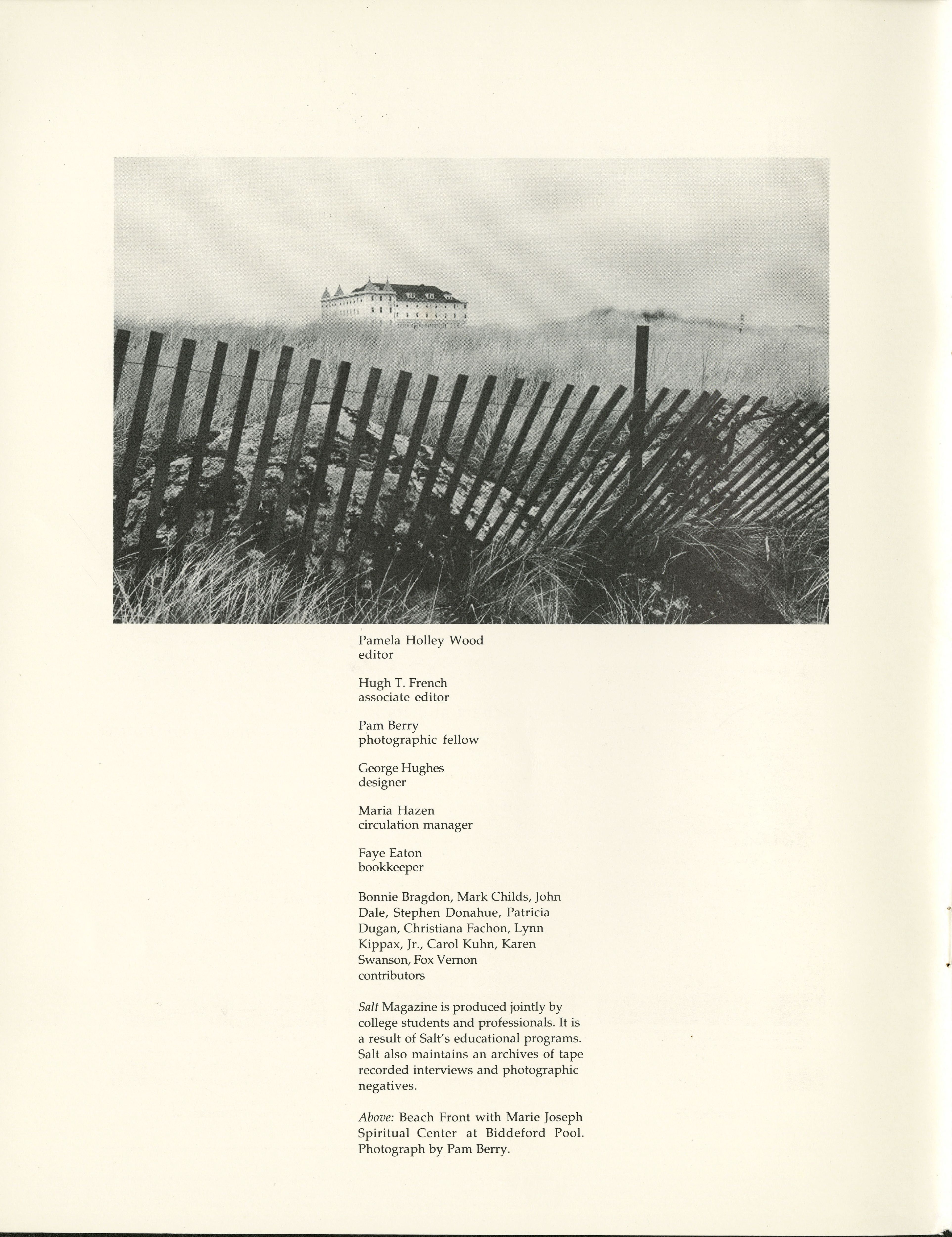 Inside front cover for the November 1987 Salt Magazine with masthead.