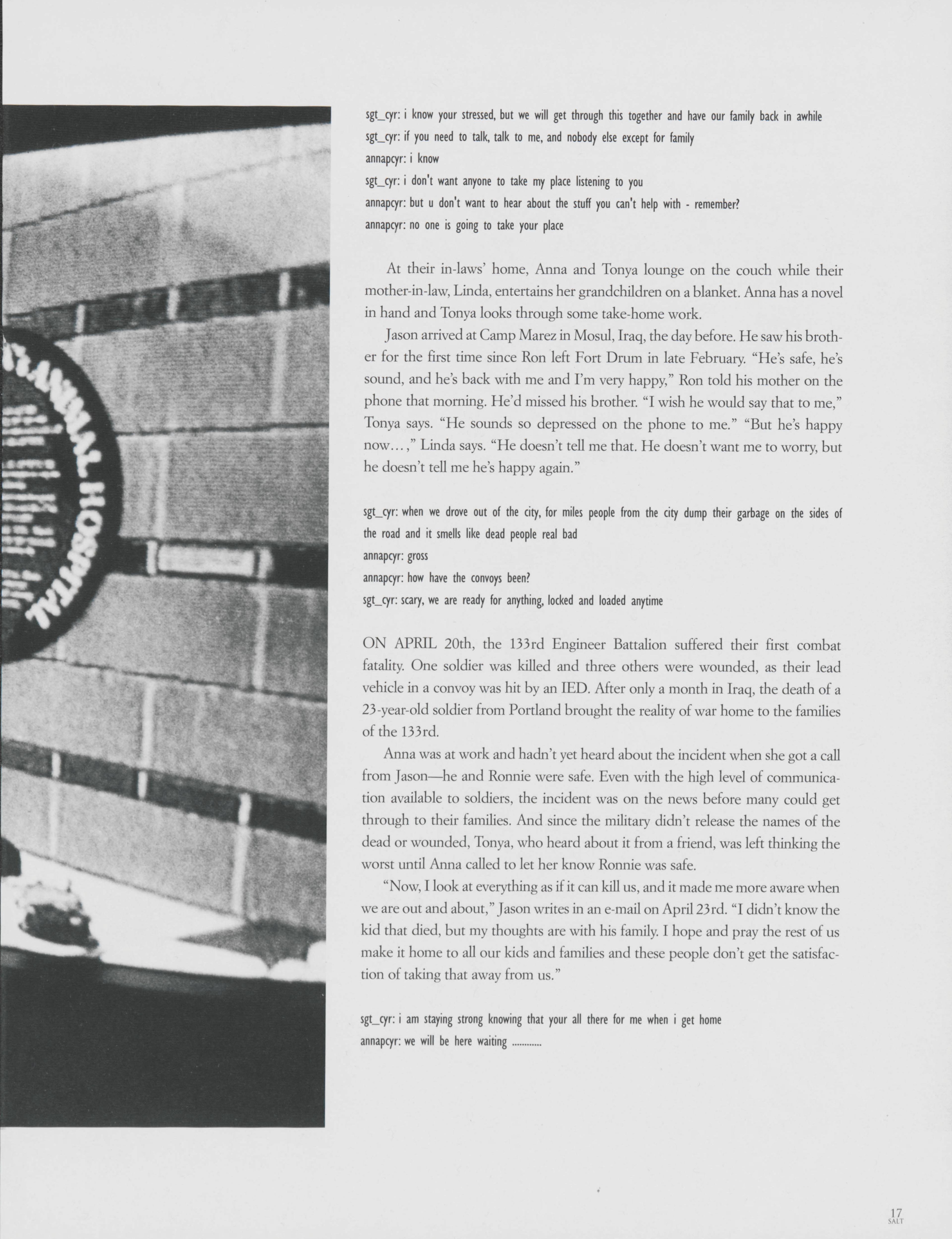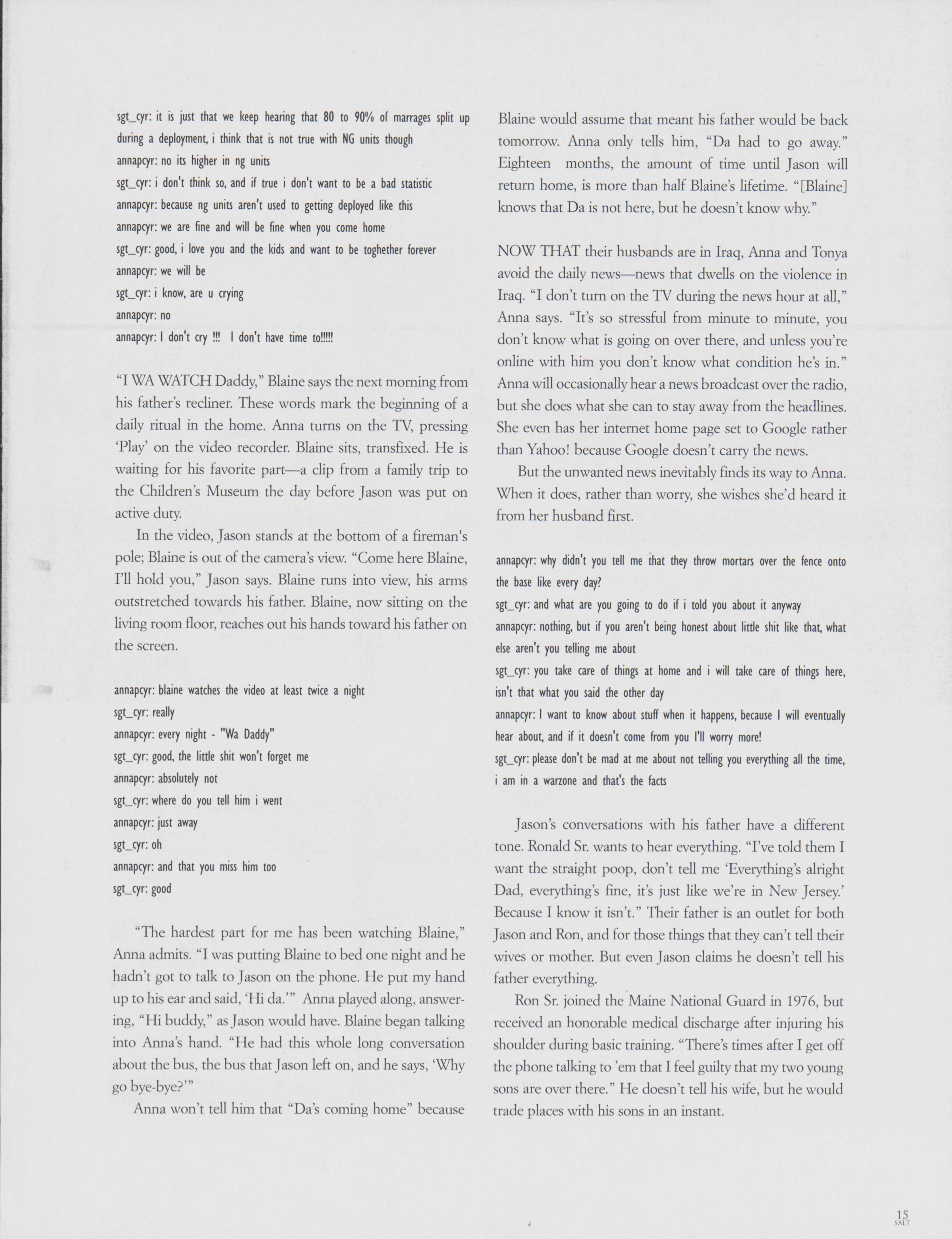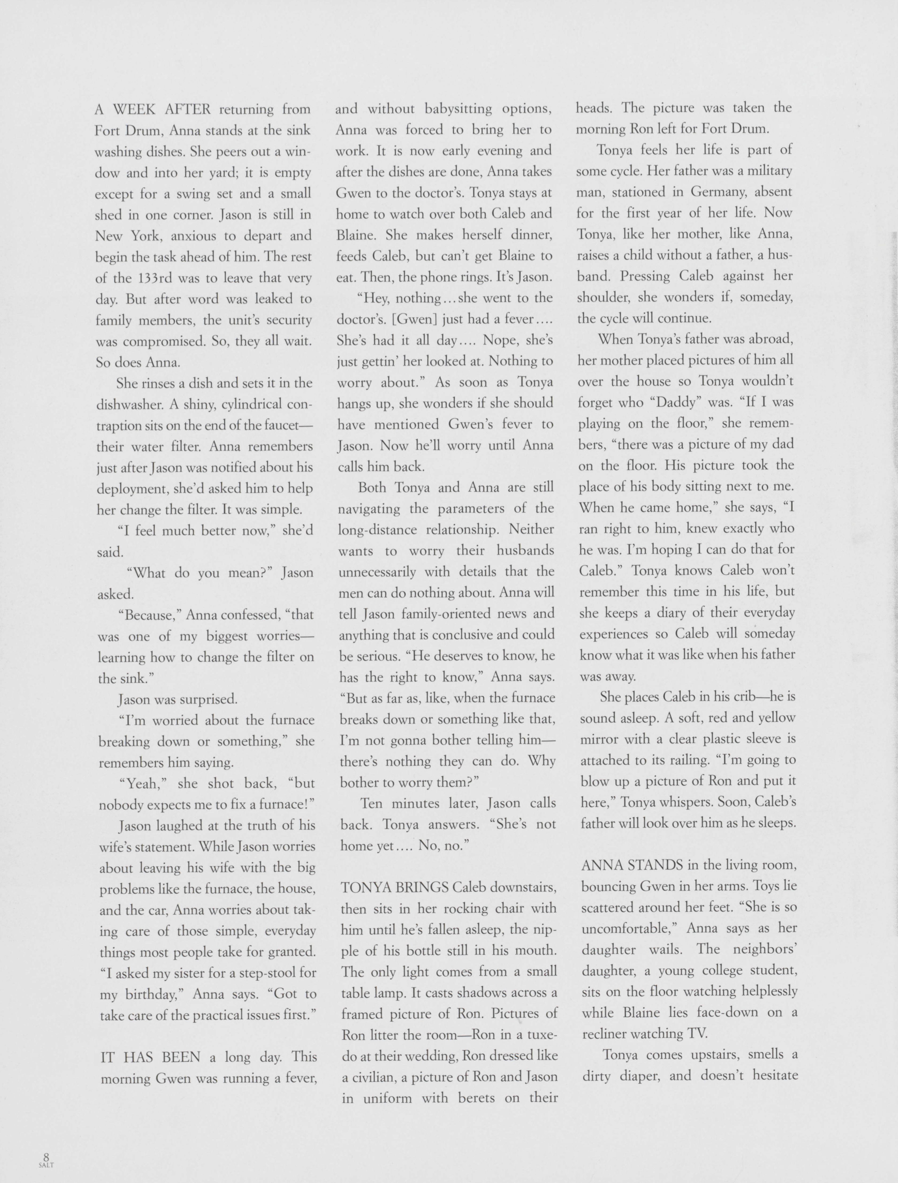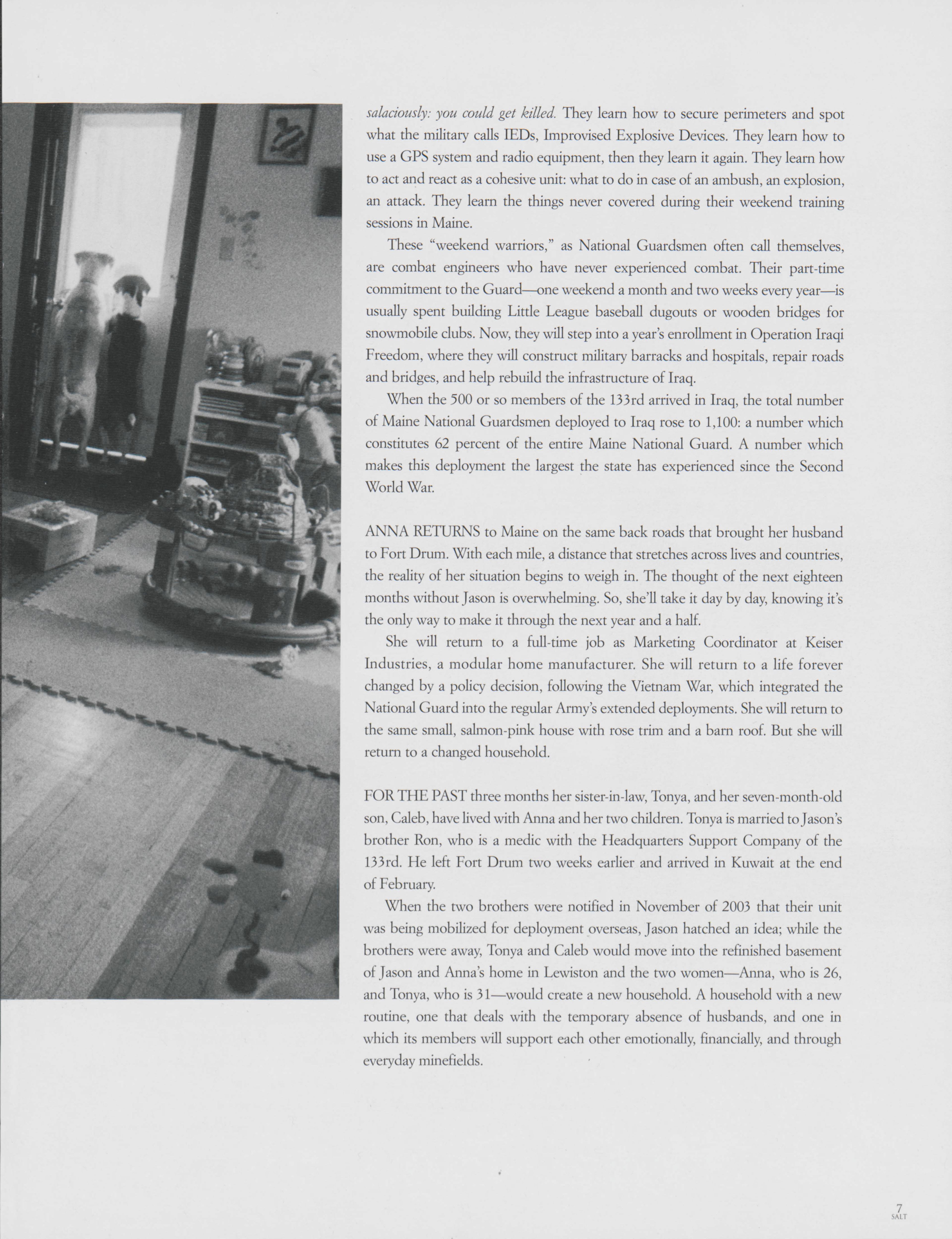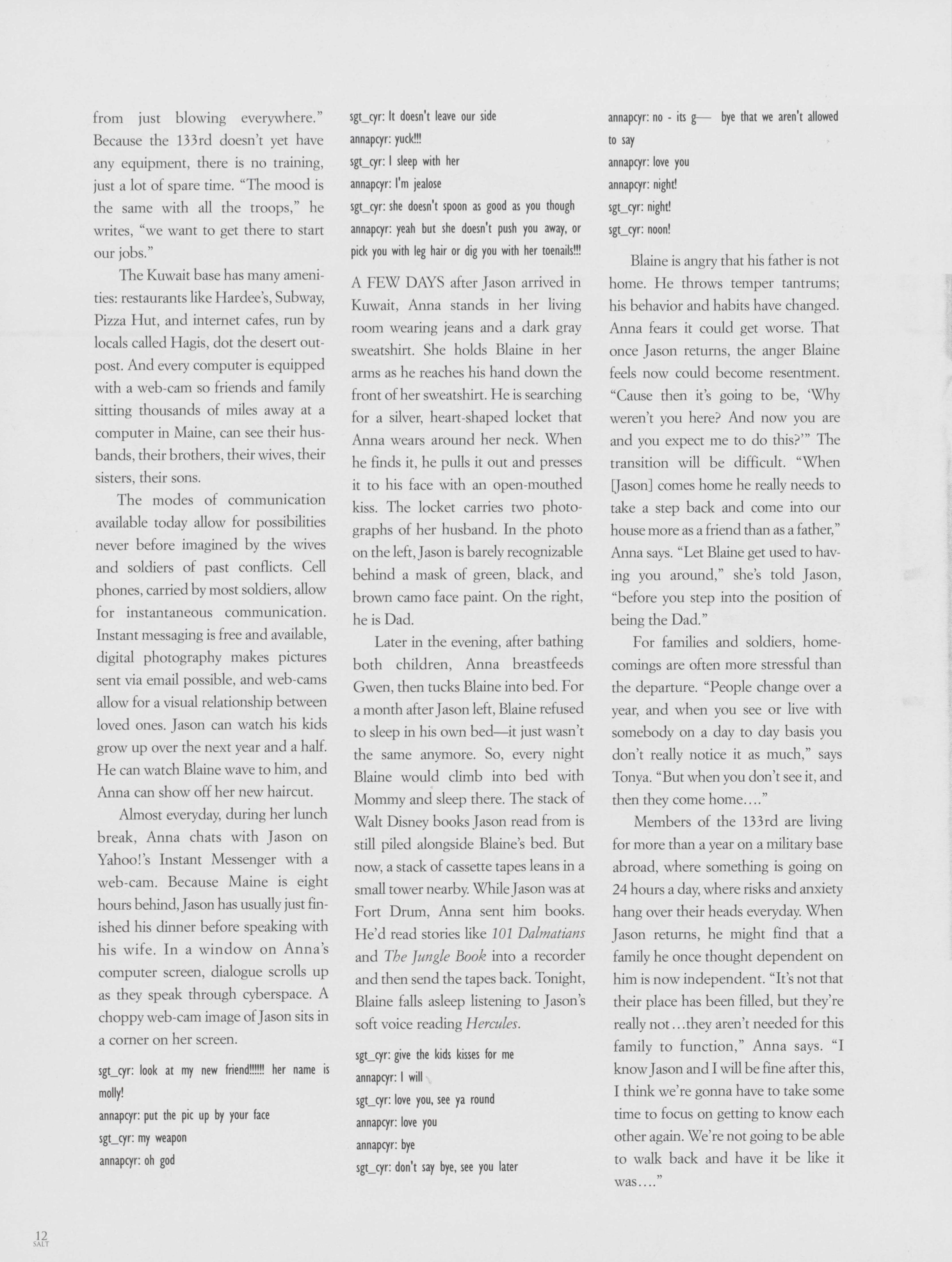 Whit Richardson highlights the lives of two families, whose husbands are deployed in Iraq. Richardson explores how the wives live together during the deployment, and the conversations they have with their husbands overseas.