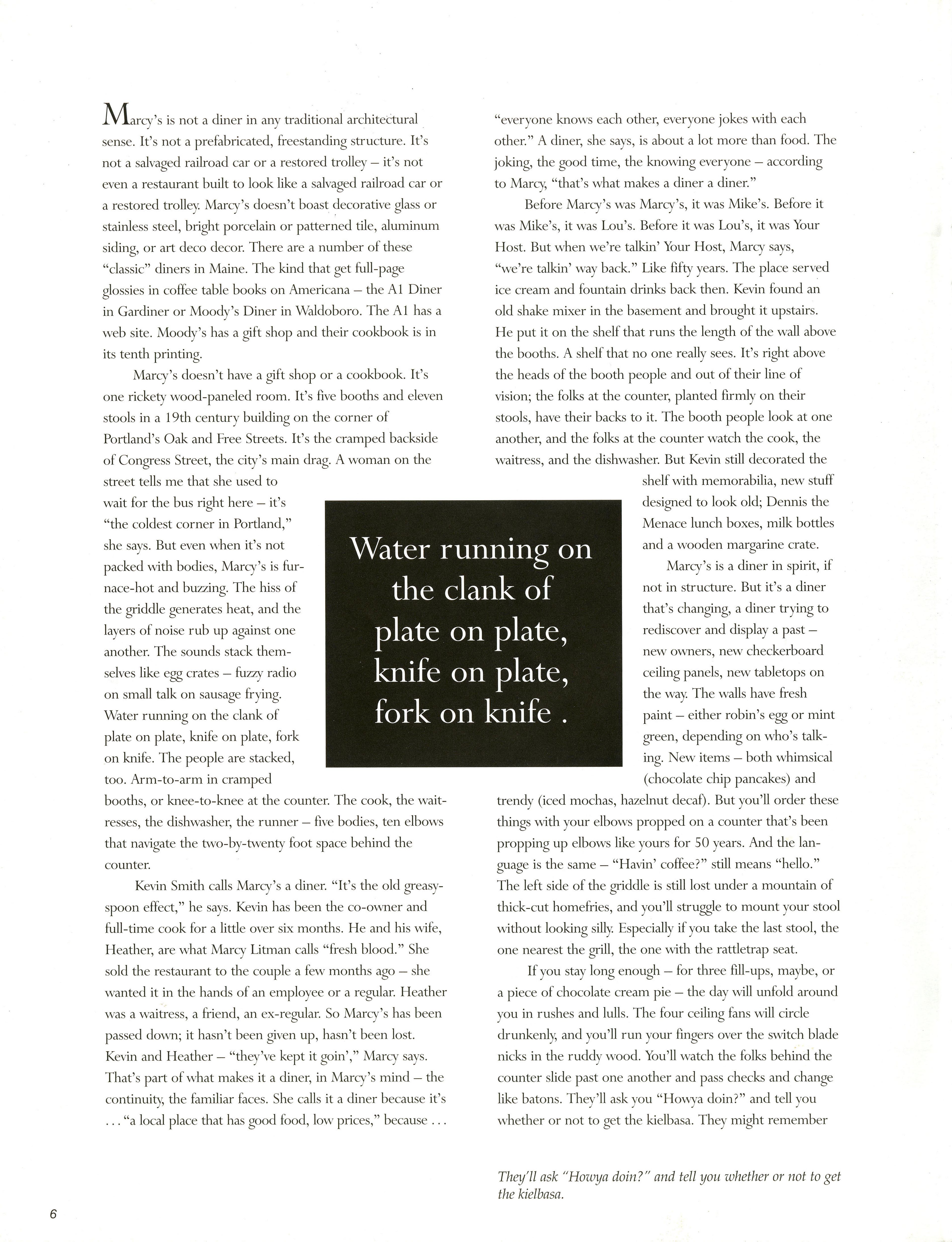 Through different owners and changes, Marcy's diner in Portland tries to rediscover and display a past. Alethea Okonak speaks with the owners of Marcy's to discuss the history and culture of the diner.