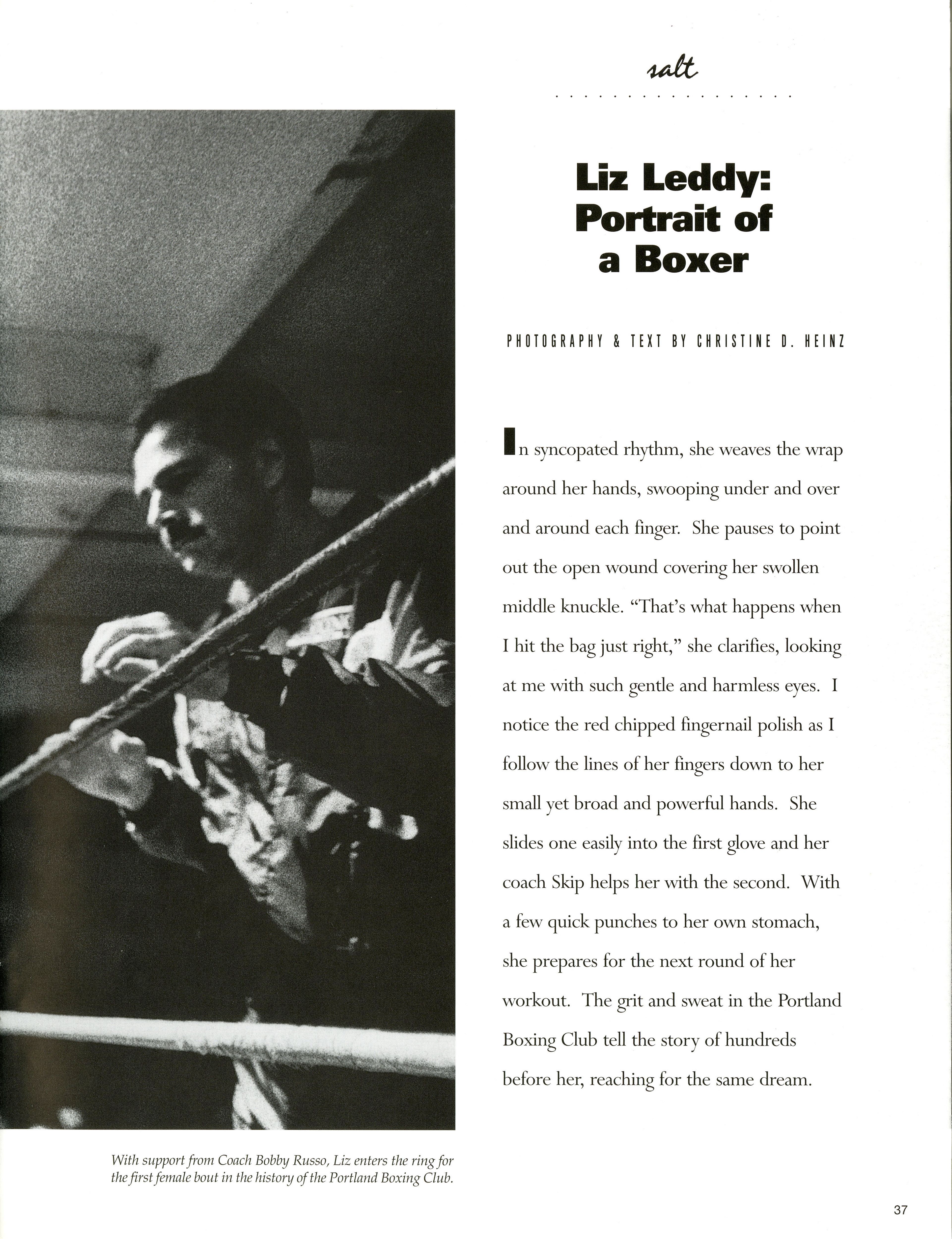 Getting involved with the wrong crowd at a young age, Liz Leddy found boxing as a way to fix her life. Christine Heintz offers a profile on Leddy and how boxing has allowed her to stay sober.