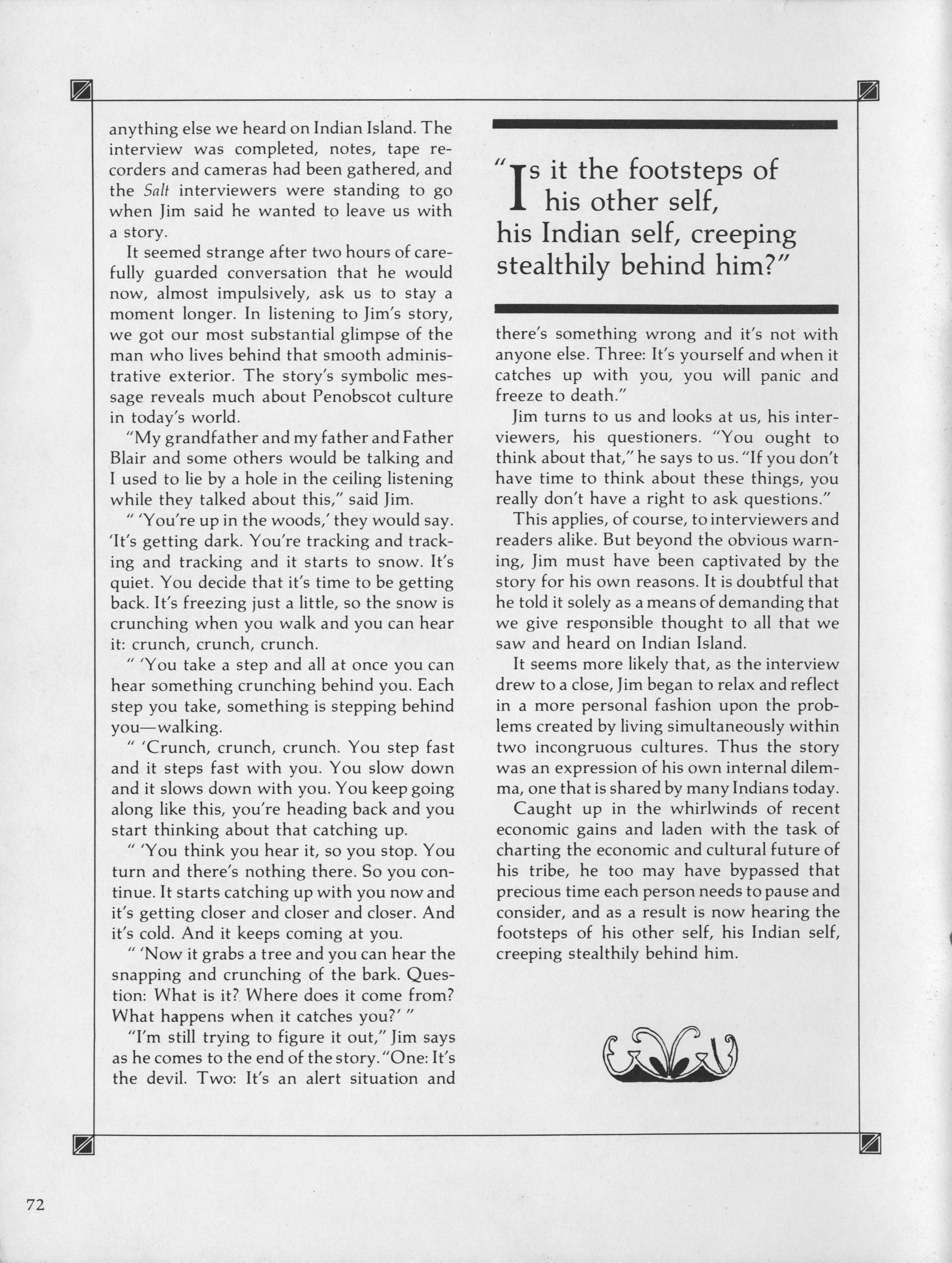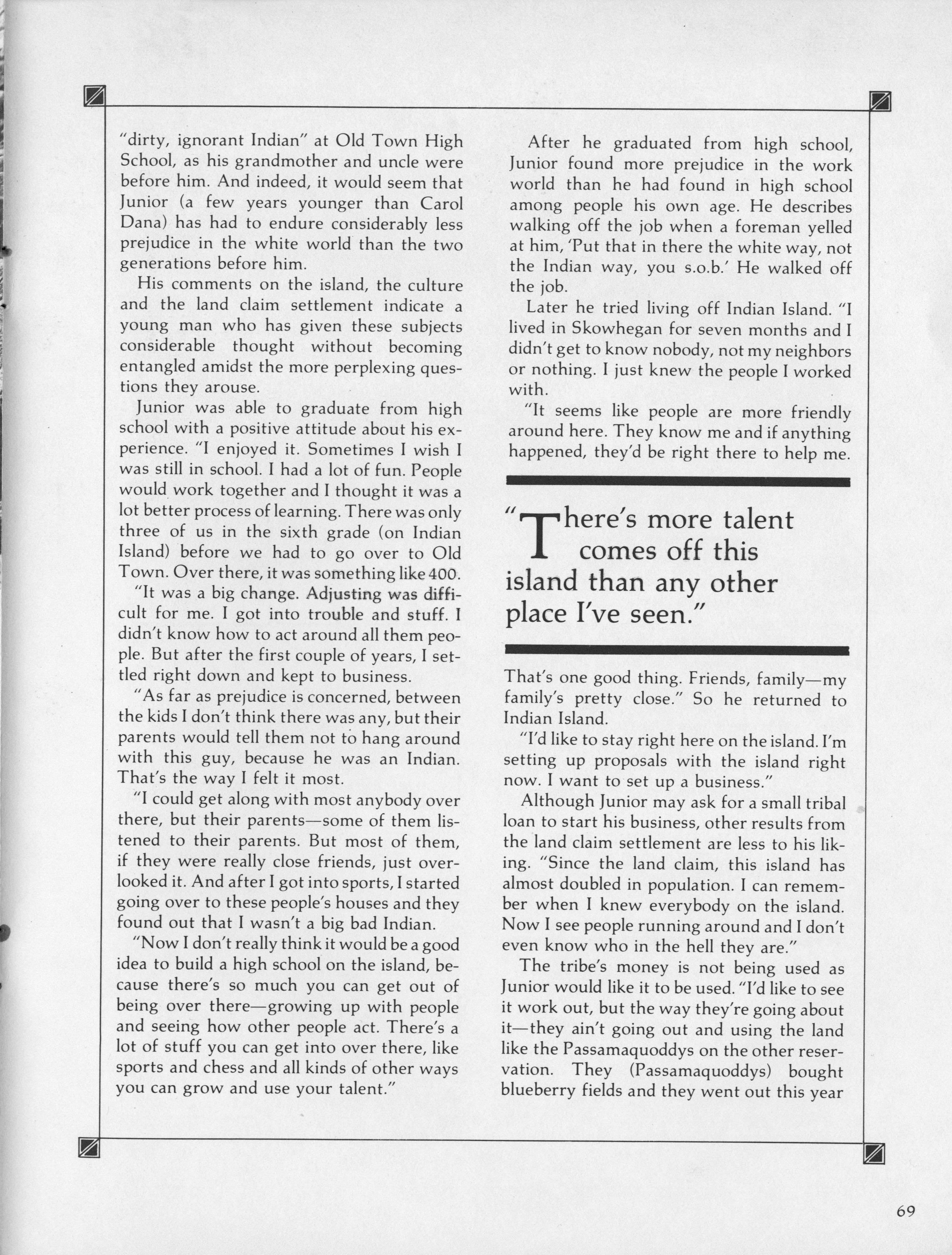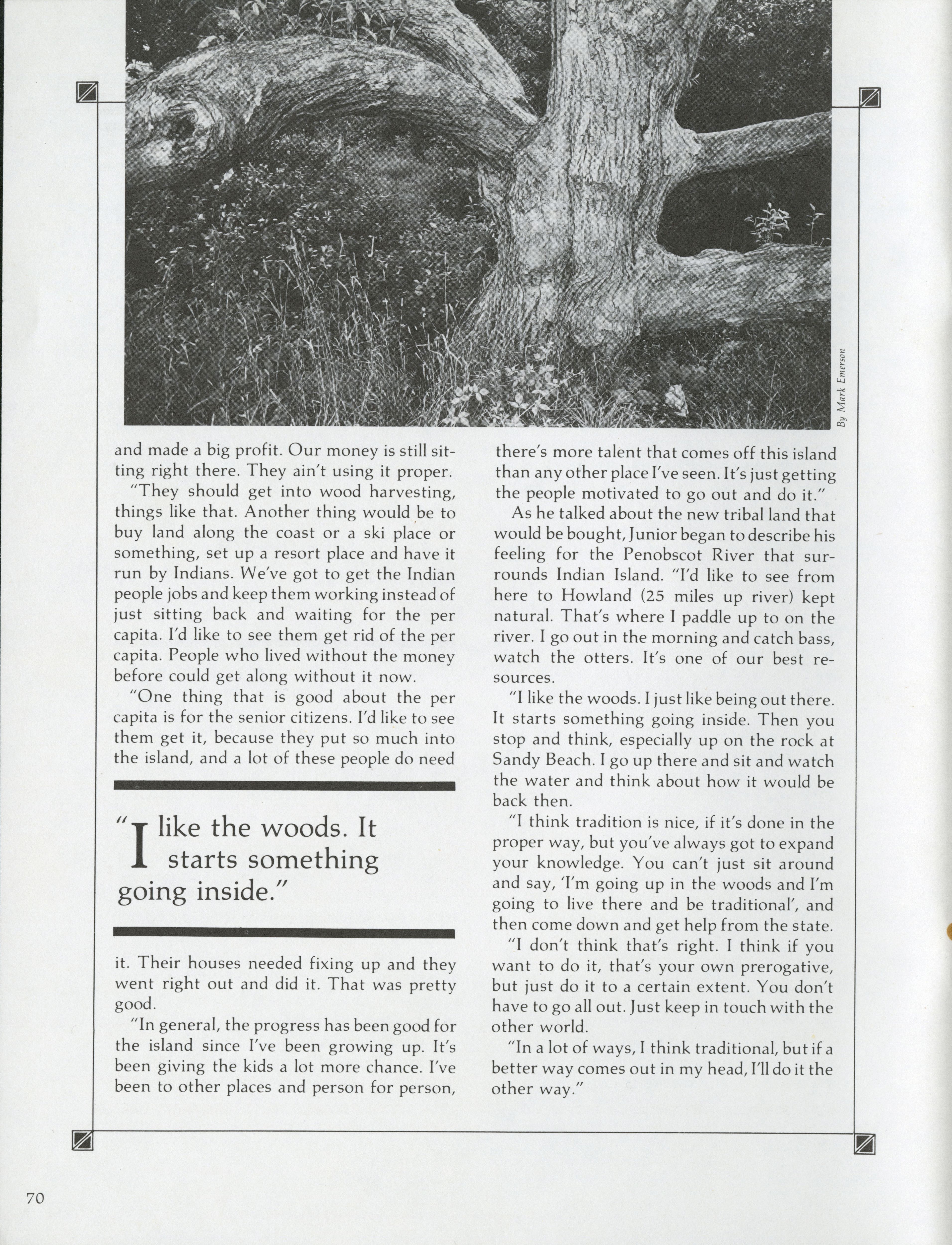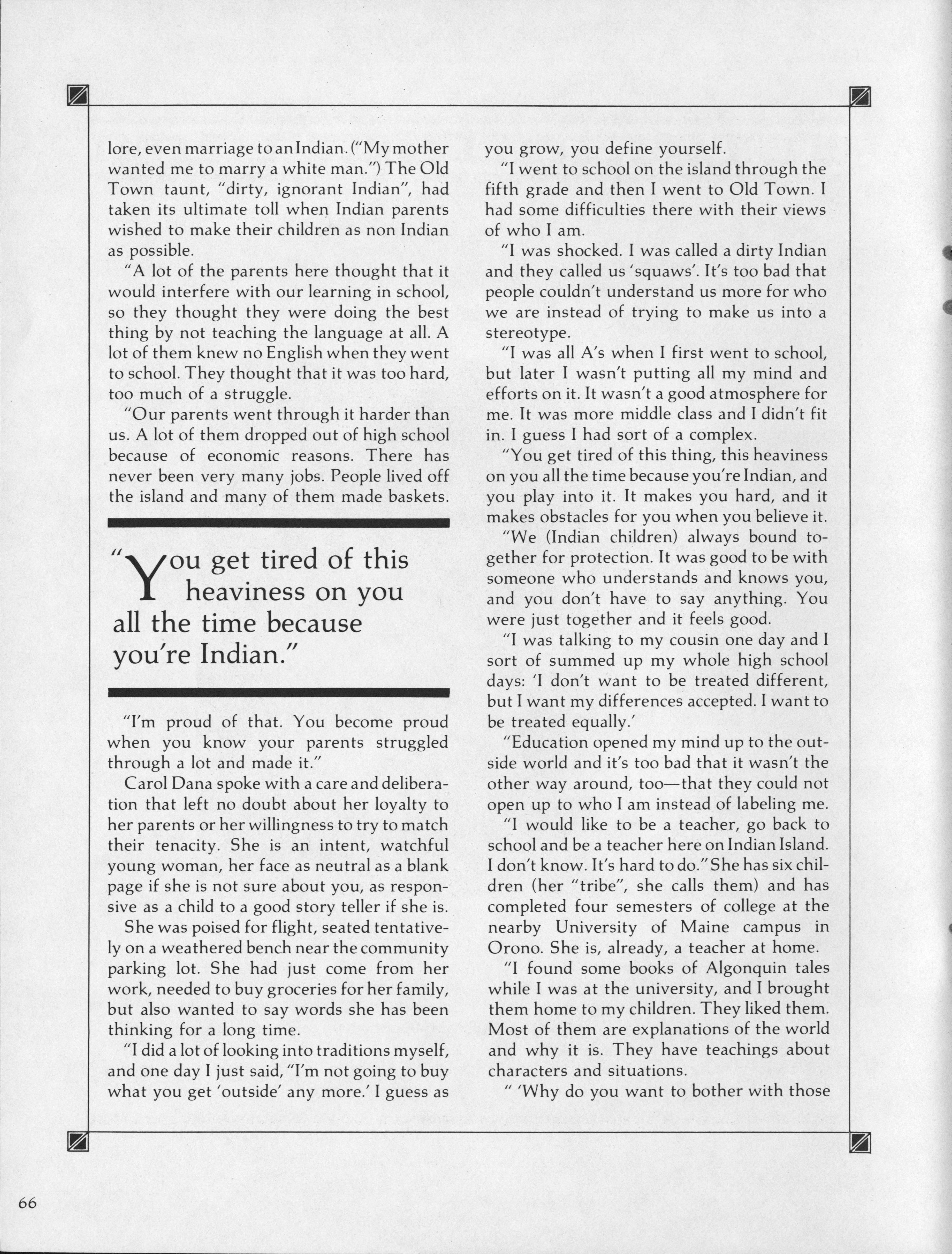 William Ibelle explores how three generations of Penobscot Indians are searching through their experiences to define what it means to be a Penobscot living in today's work.