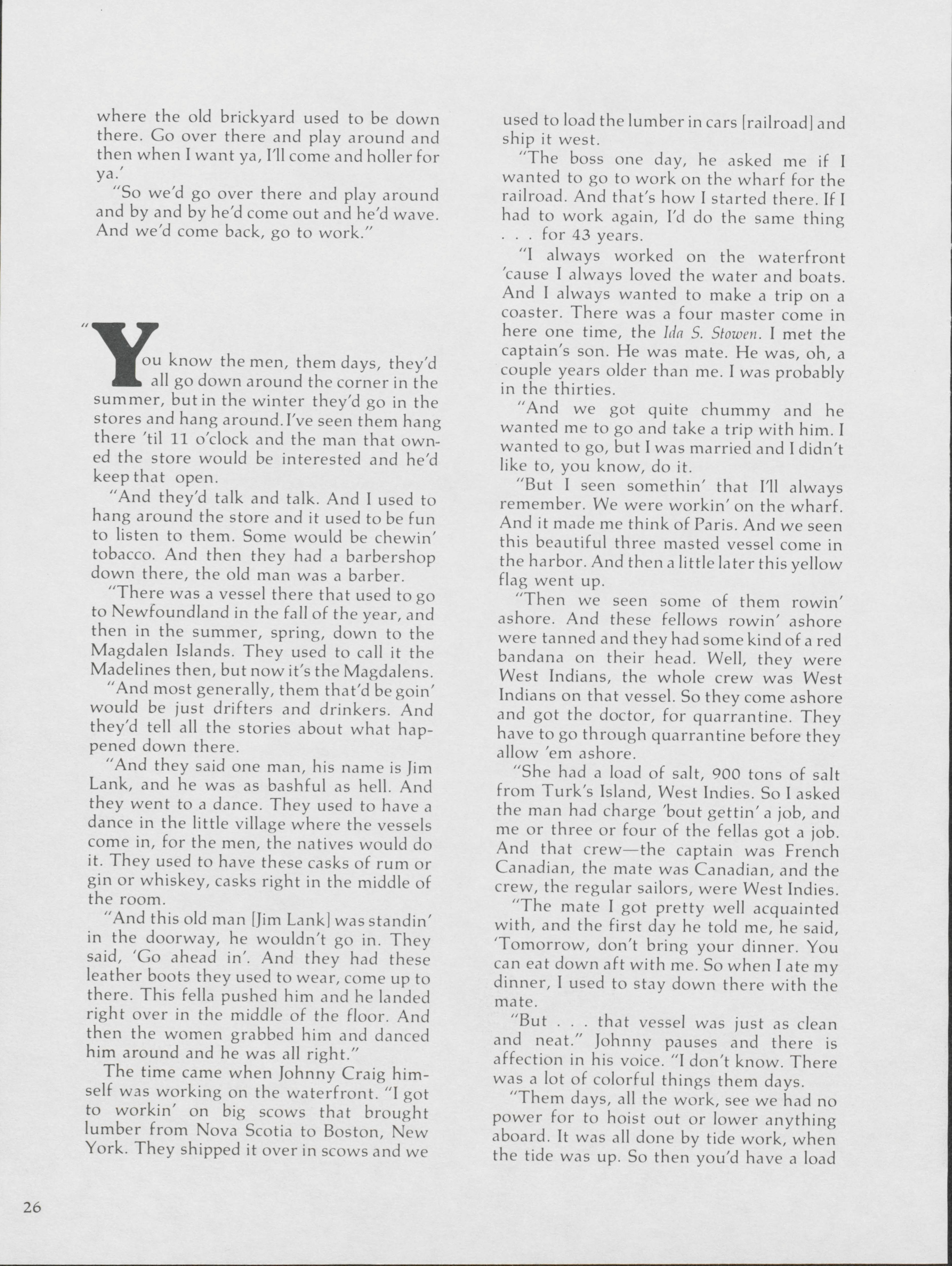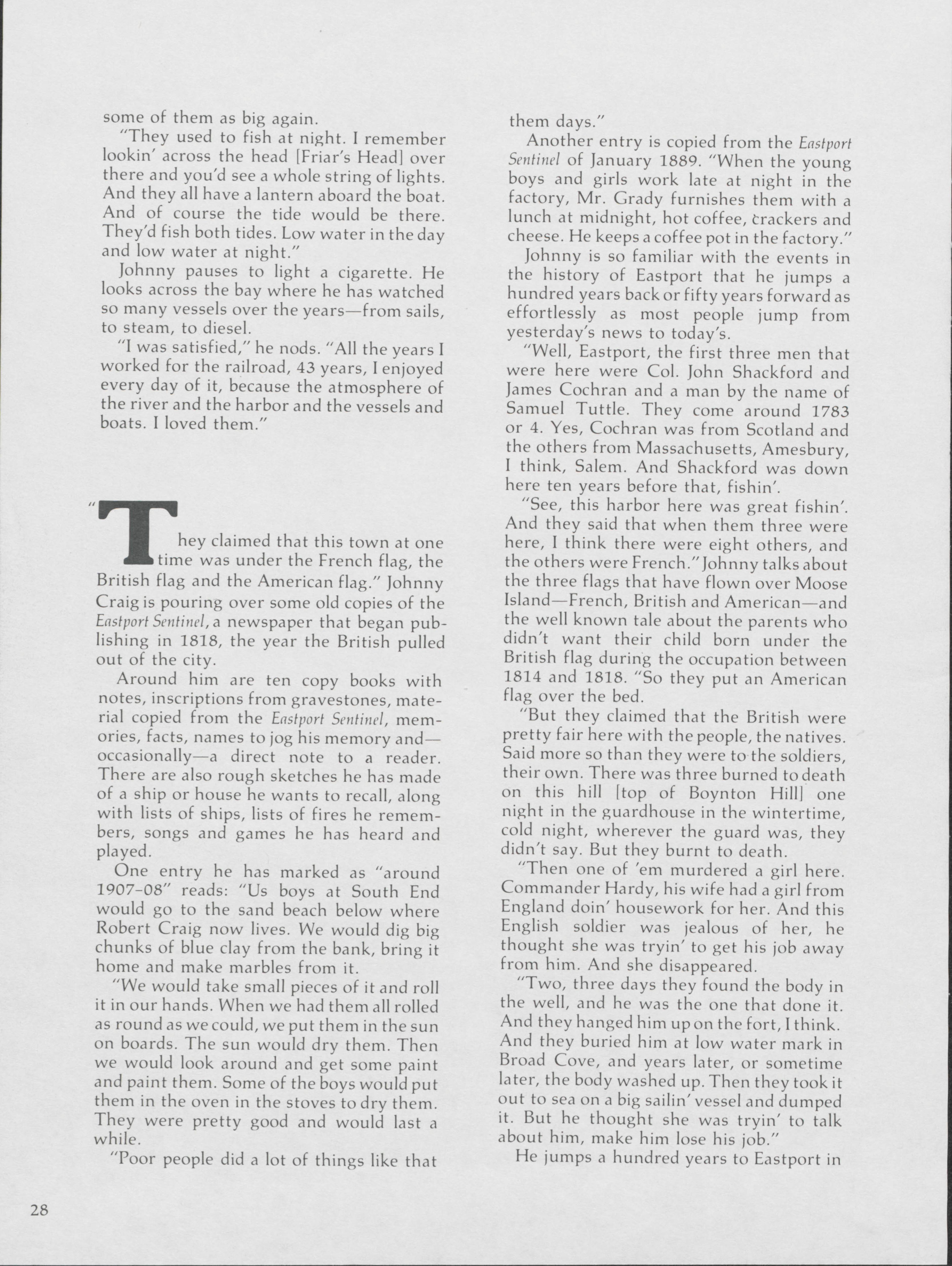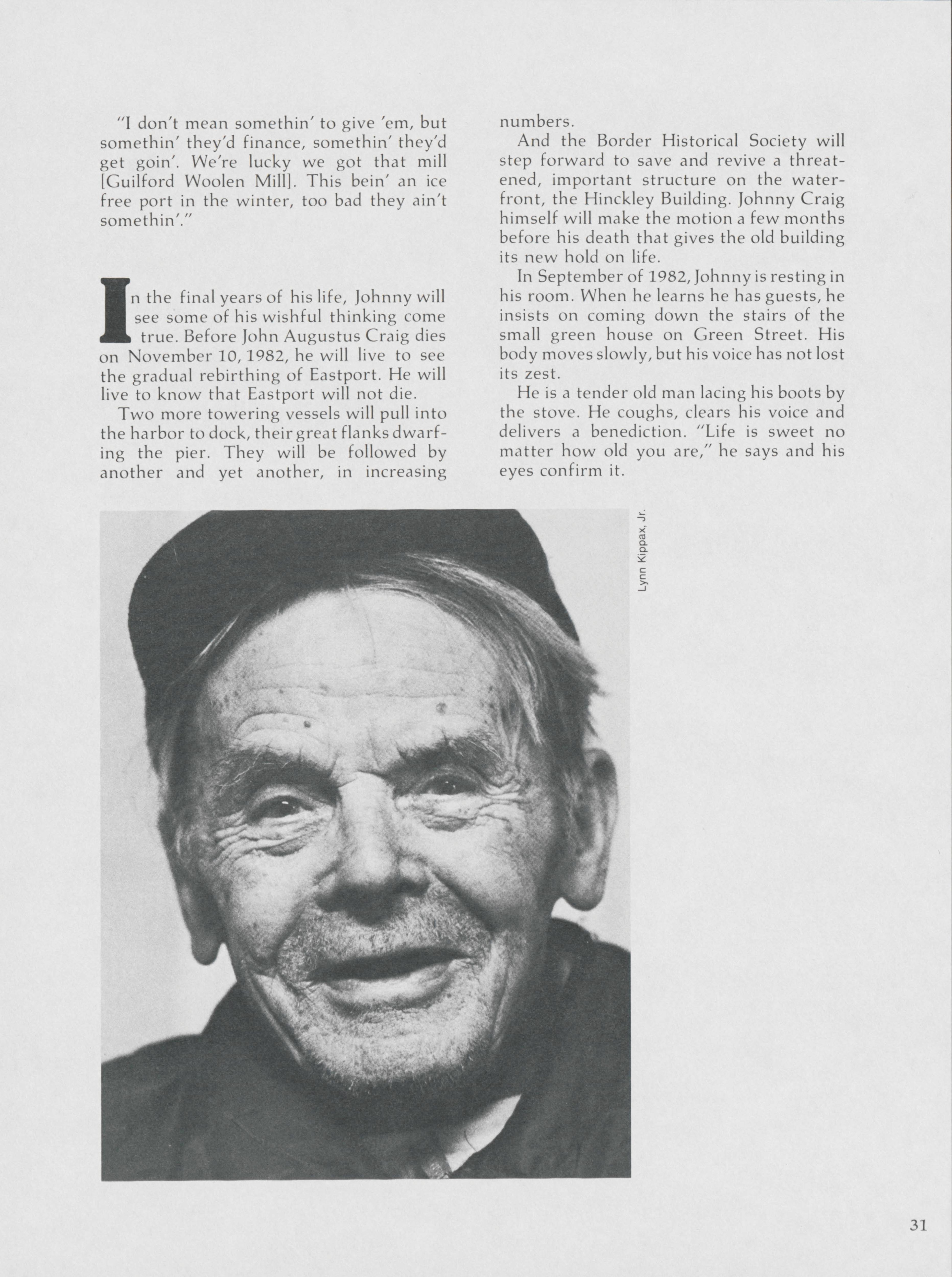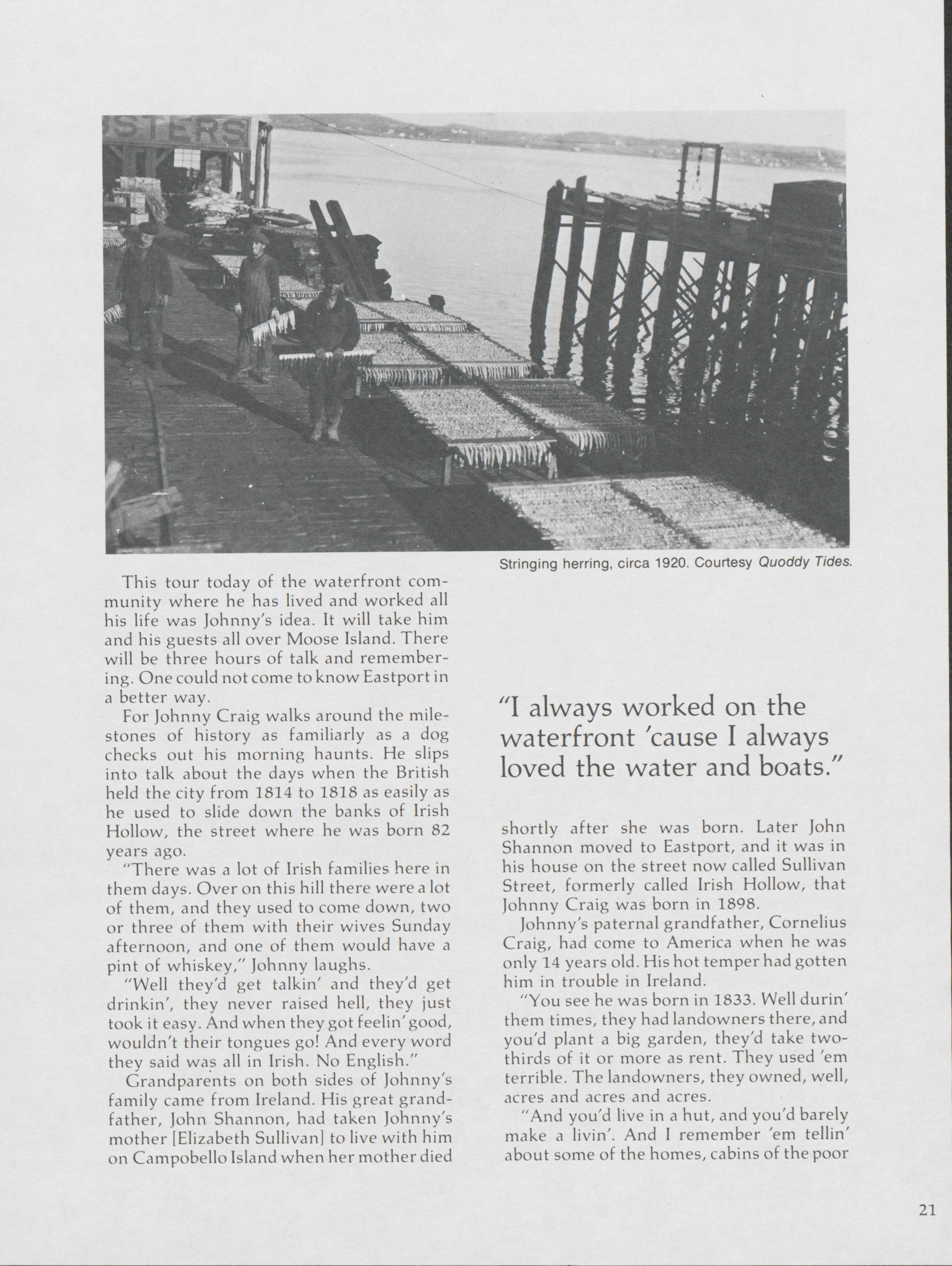 Pamela Wood highlights the life of John A. Craig, a former longshoreman of 43 years in Eastport. Wood speaks to Craig about stories from along the waterfront.