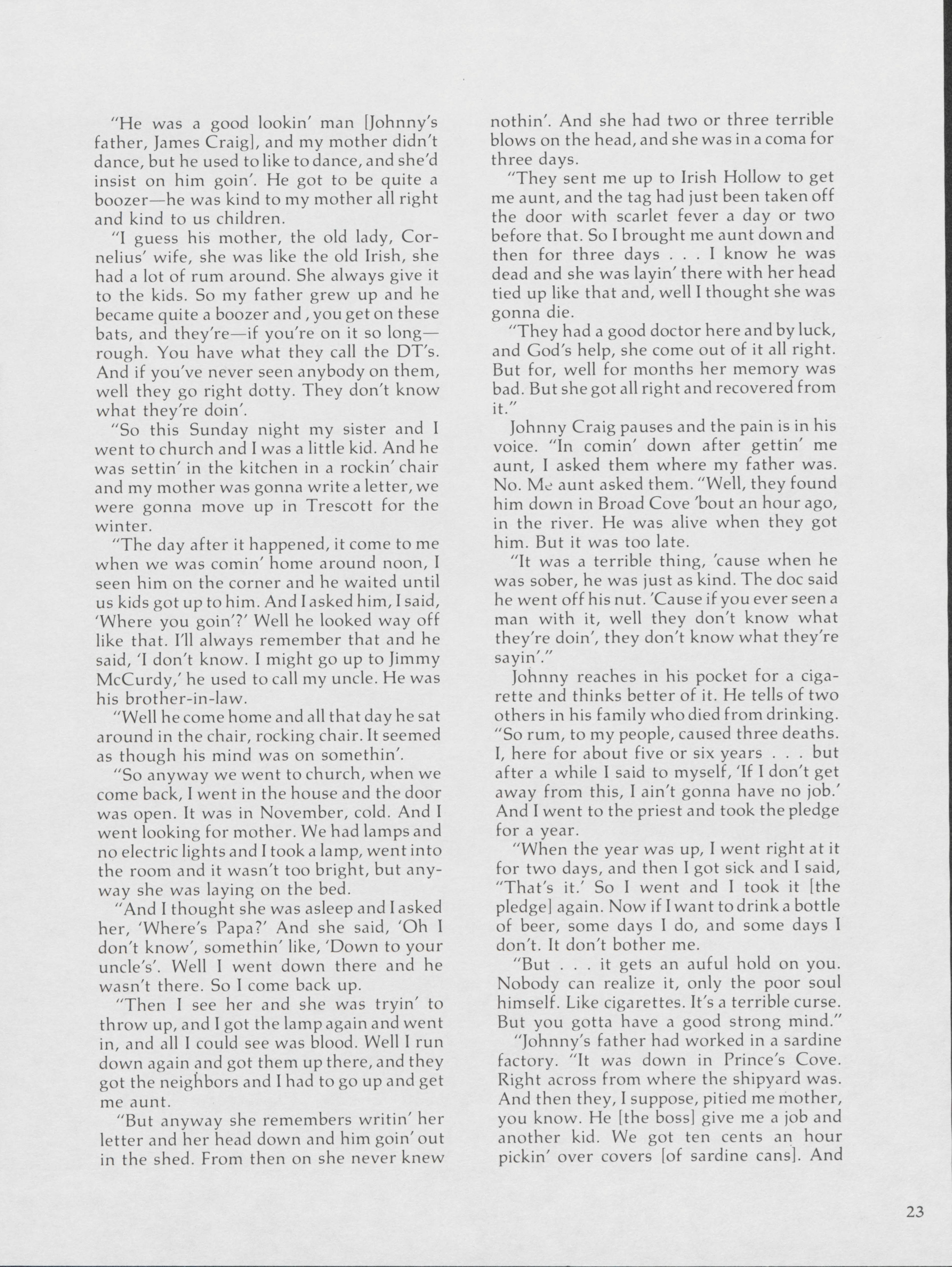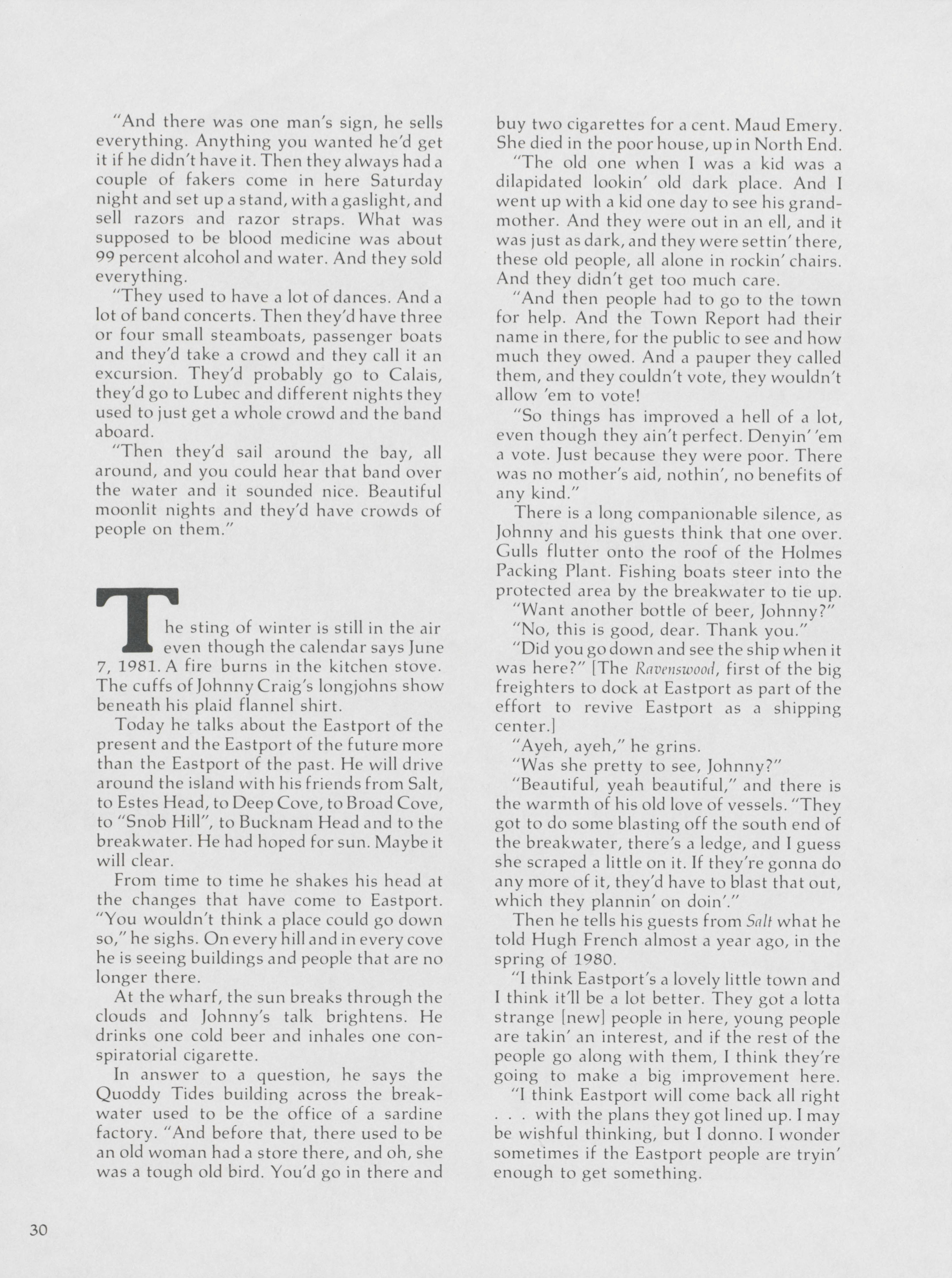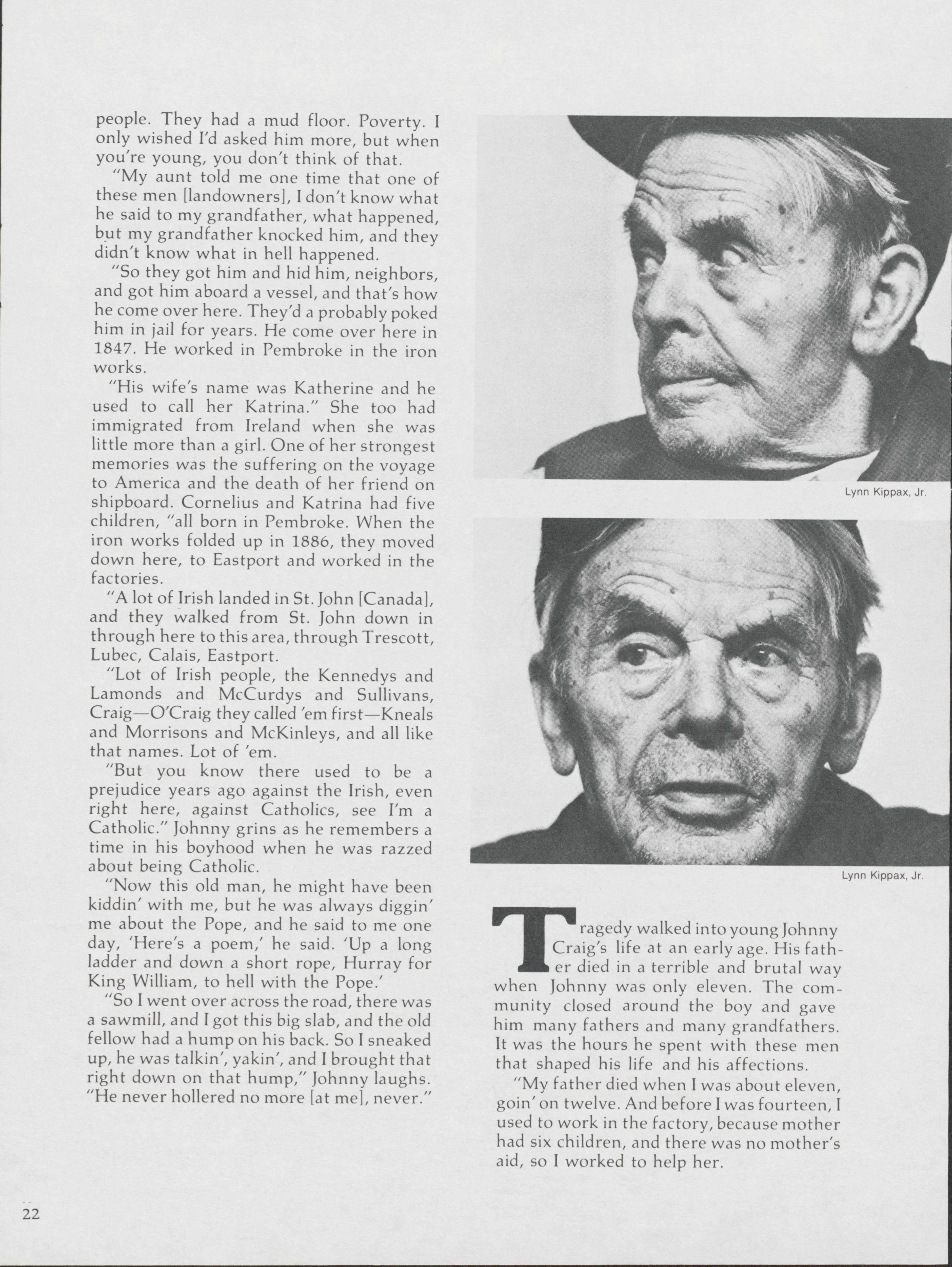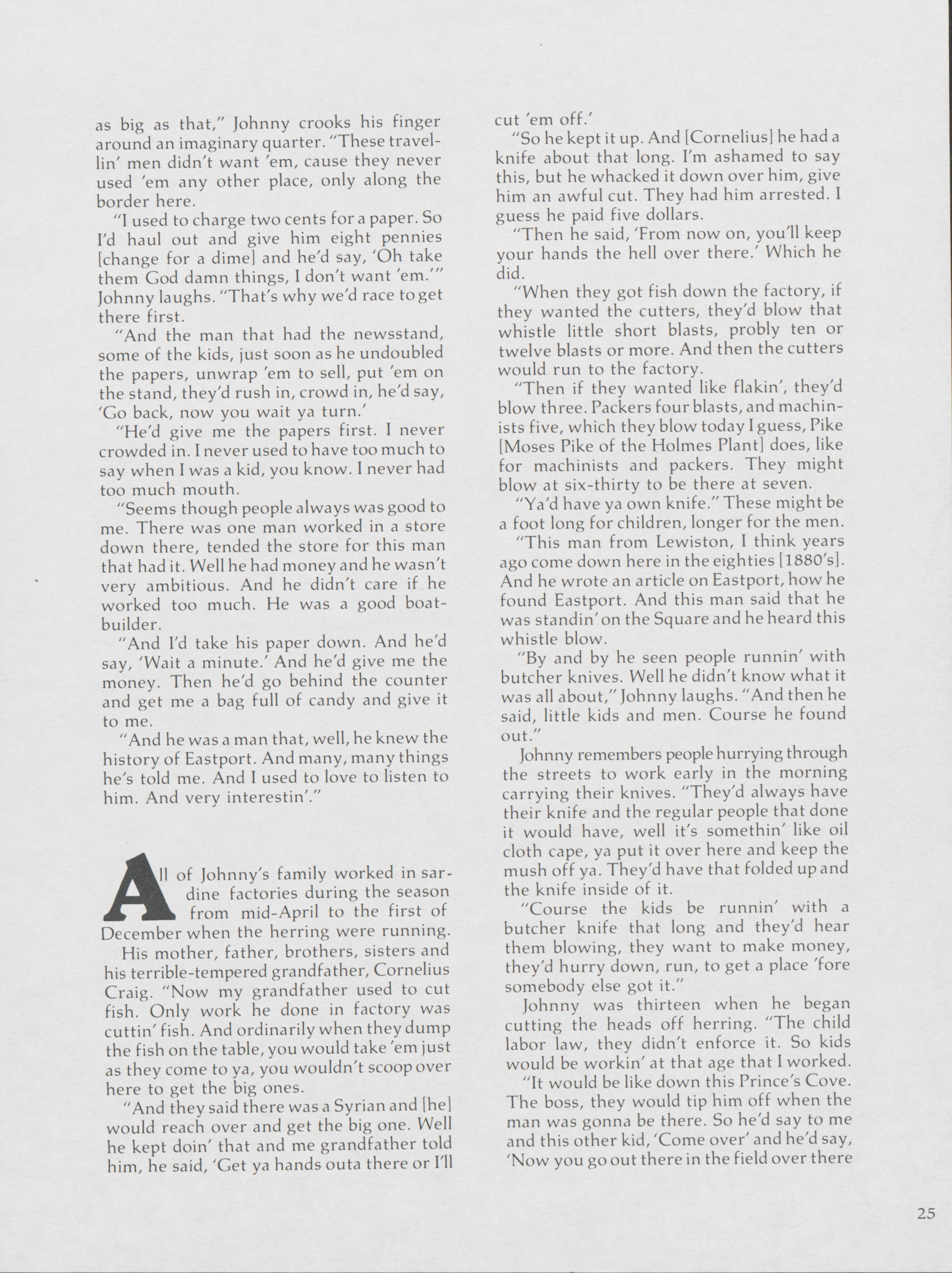 Pamela Wood highlights the life of John A. Craig, a former longshoreman of 43 years in Eastport. Wood speaks to Craig about stories from along the waterfront.