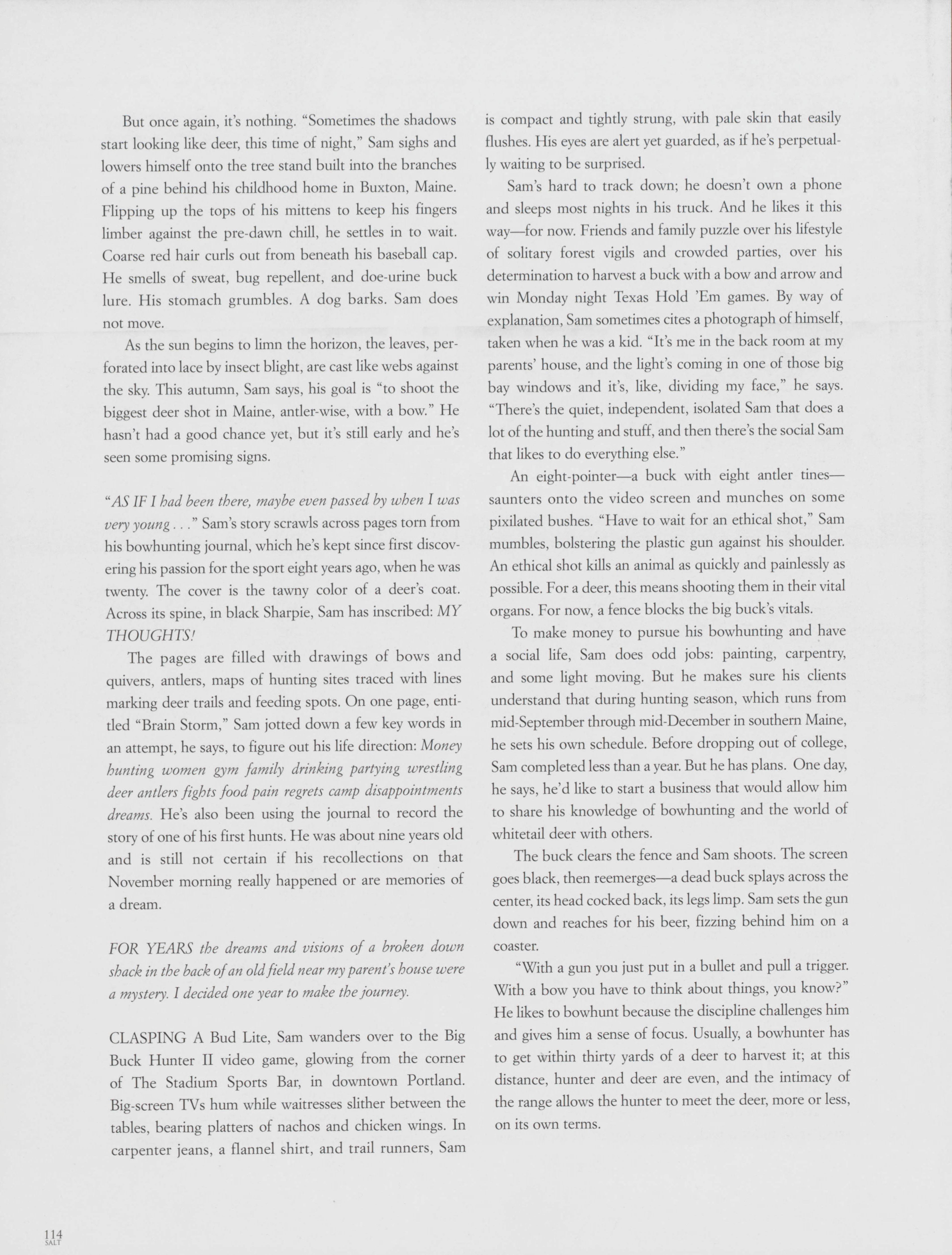 Learning how to hunt with a bow as a teenageer, Sam Cook was also interested in the outdoors and hunting. Caitlin Van Dusen highlights Cook's life and discusses his hunting experiences.
