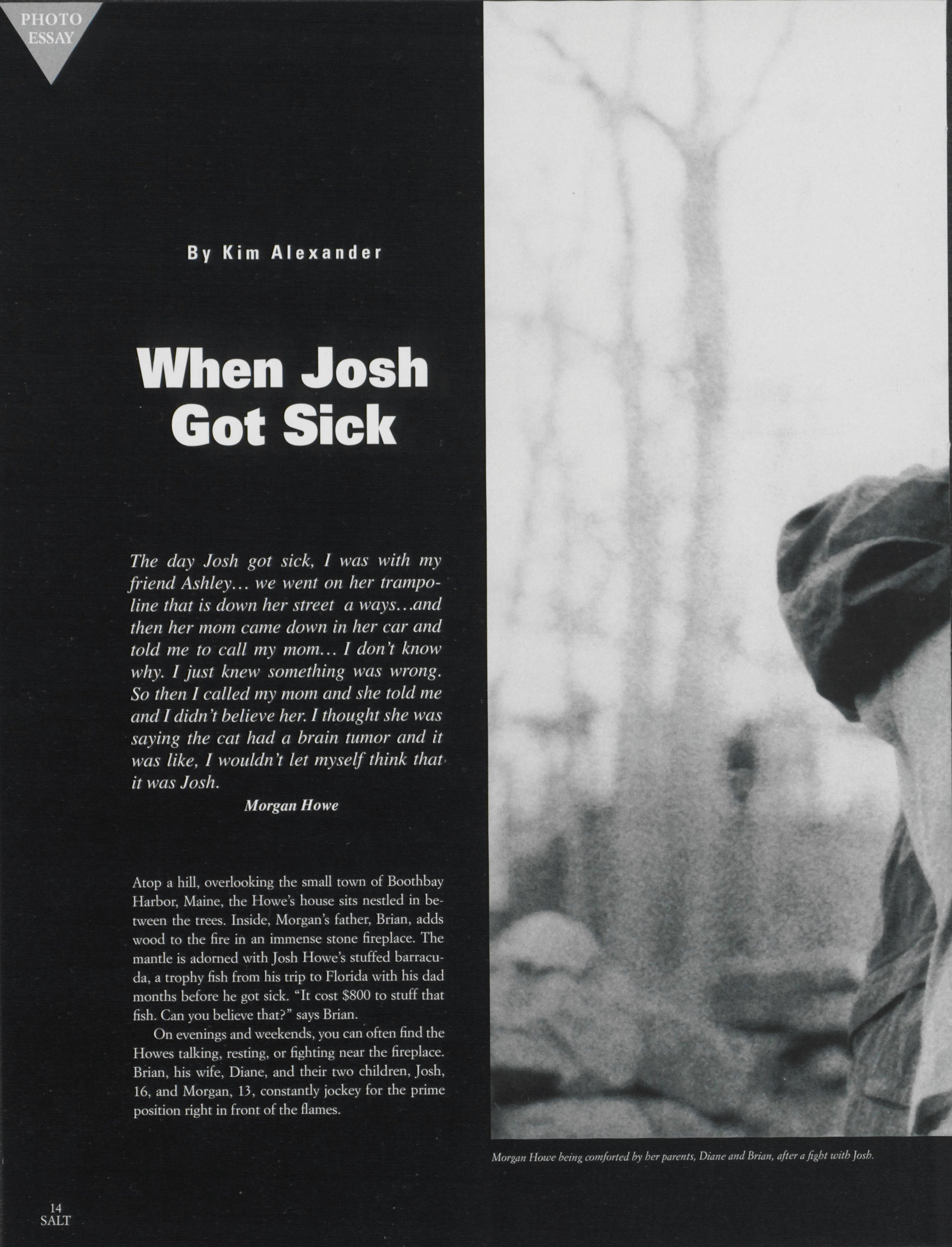 When Josh Howe returned home from the hospital after having a brain tumor removed, his sister Morgan started to get frustrated. Kim Alexander documents how the family has coped with Josh's condition.