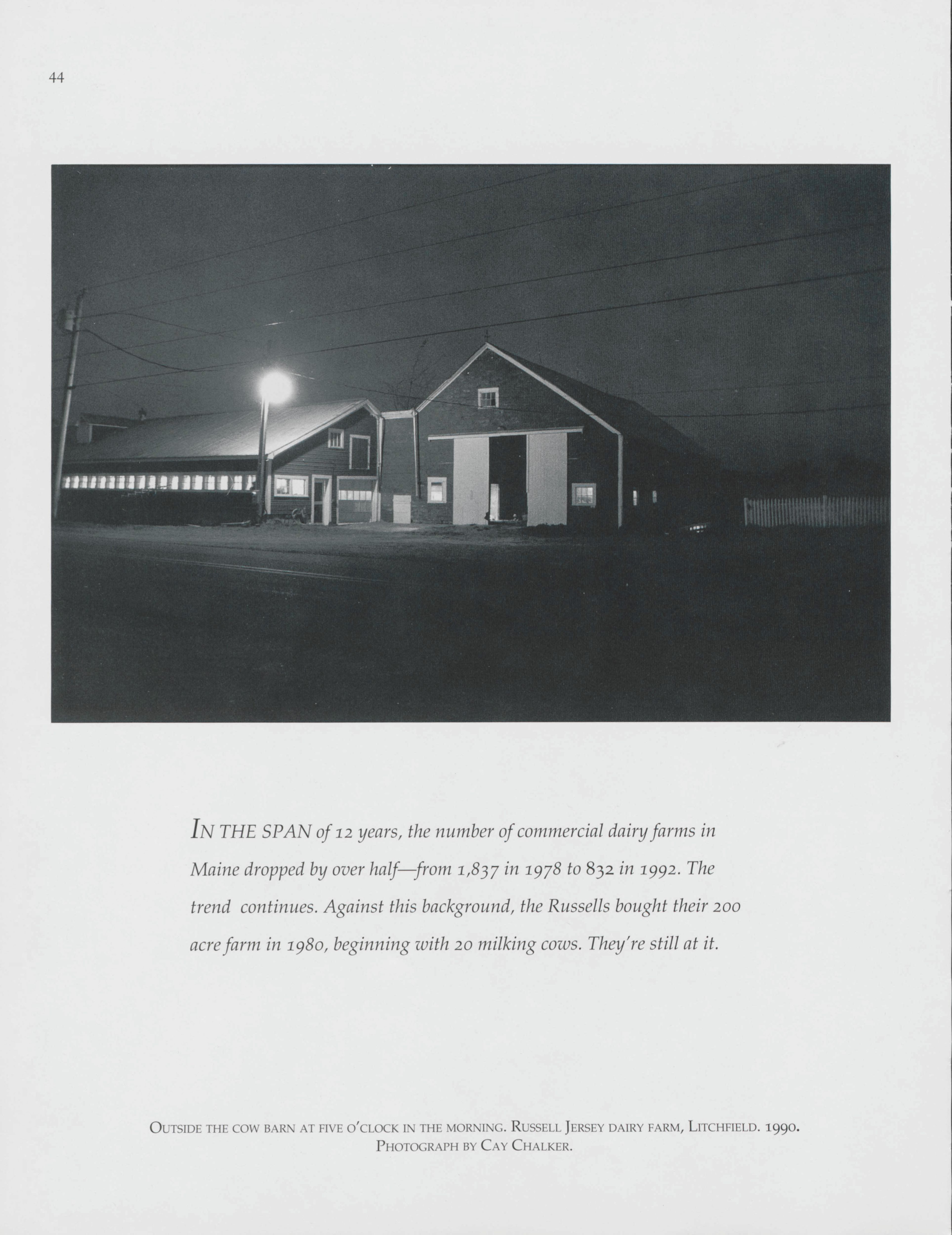 An early morning view of the cow barn at Russell Jersey Dairy Farm, captured by Cay Chalker.