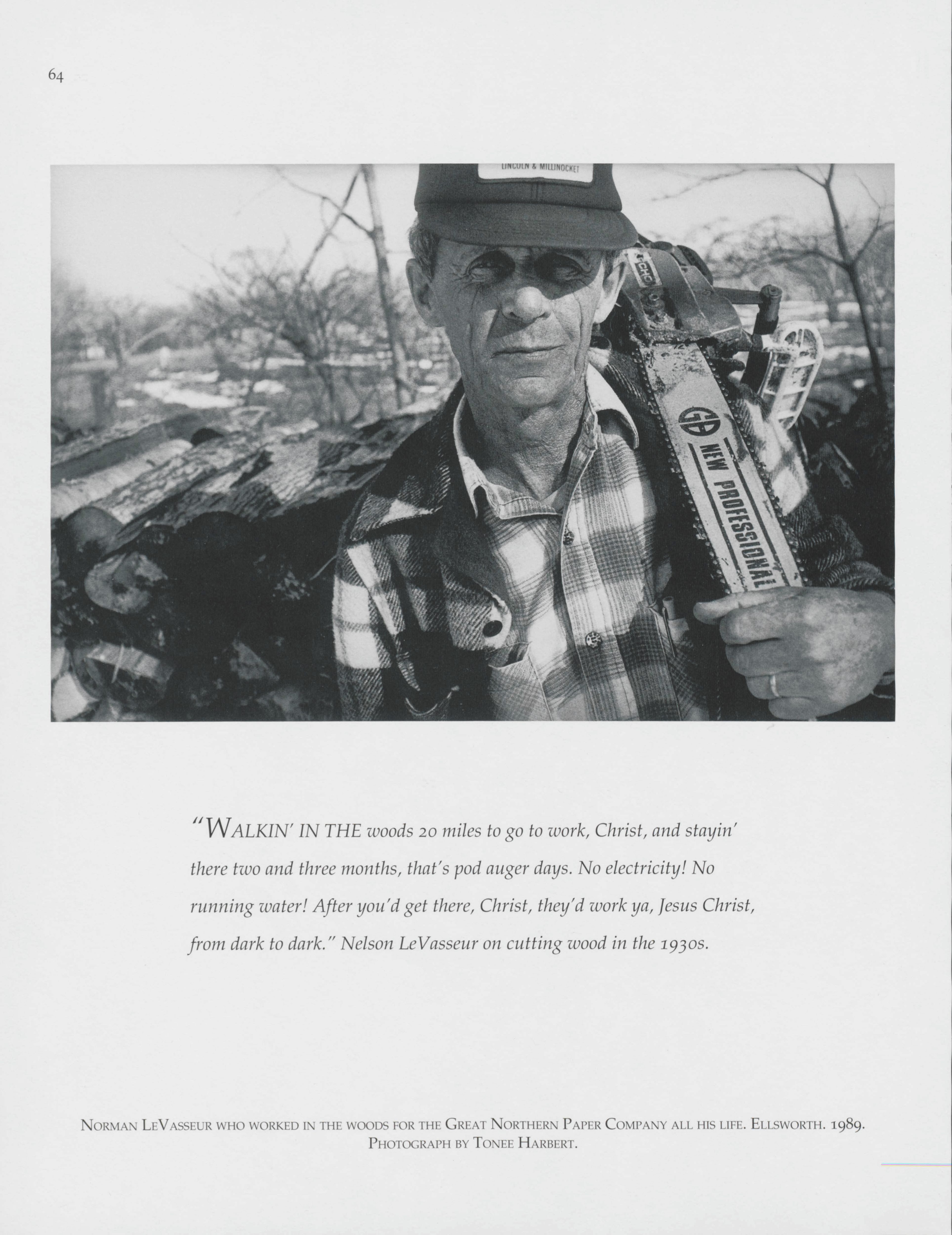 Working hard all his life for the Great Northern Paper Company, Tonee Harbet captures a photograph of Norman LeVasseur while he relaxes.