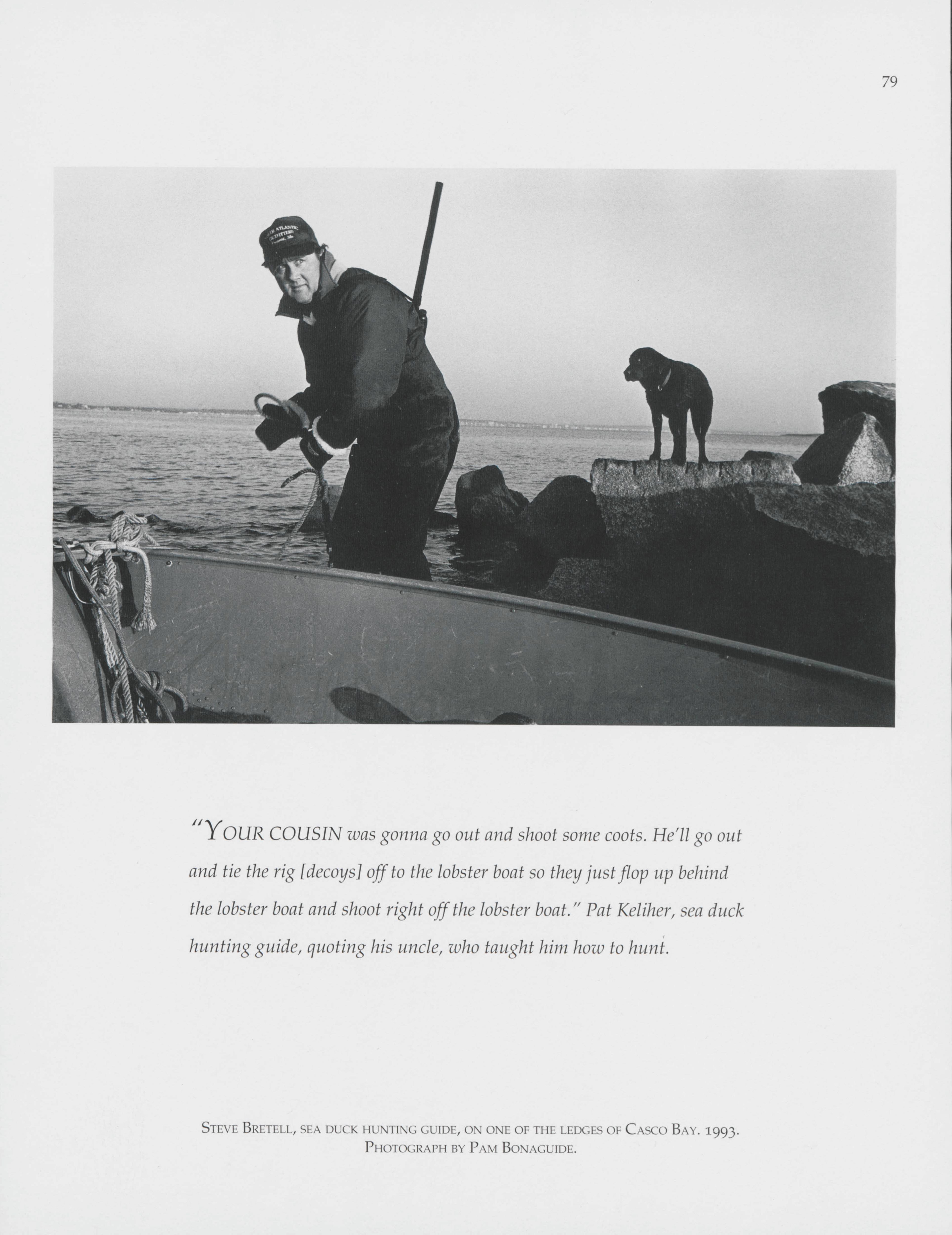 Pam Bonaguide captures a photograph of Steve Bretell and his dog as they prepare for sea duck hunting.