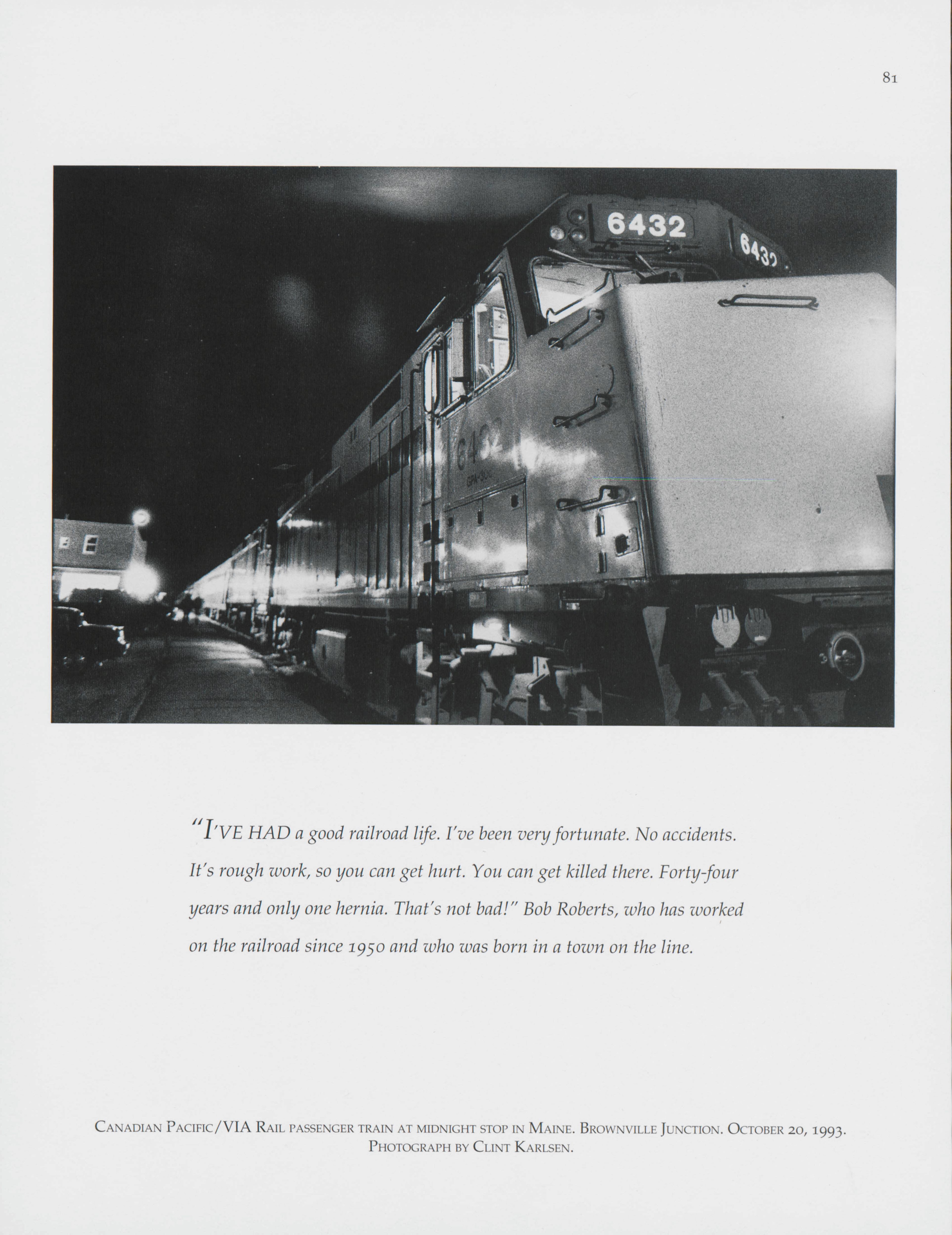 Clint Karlsen captures a photograph of a Canadian Pacific/VIA Rail passenger train during a midnight stop at the Brownville junction.