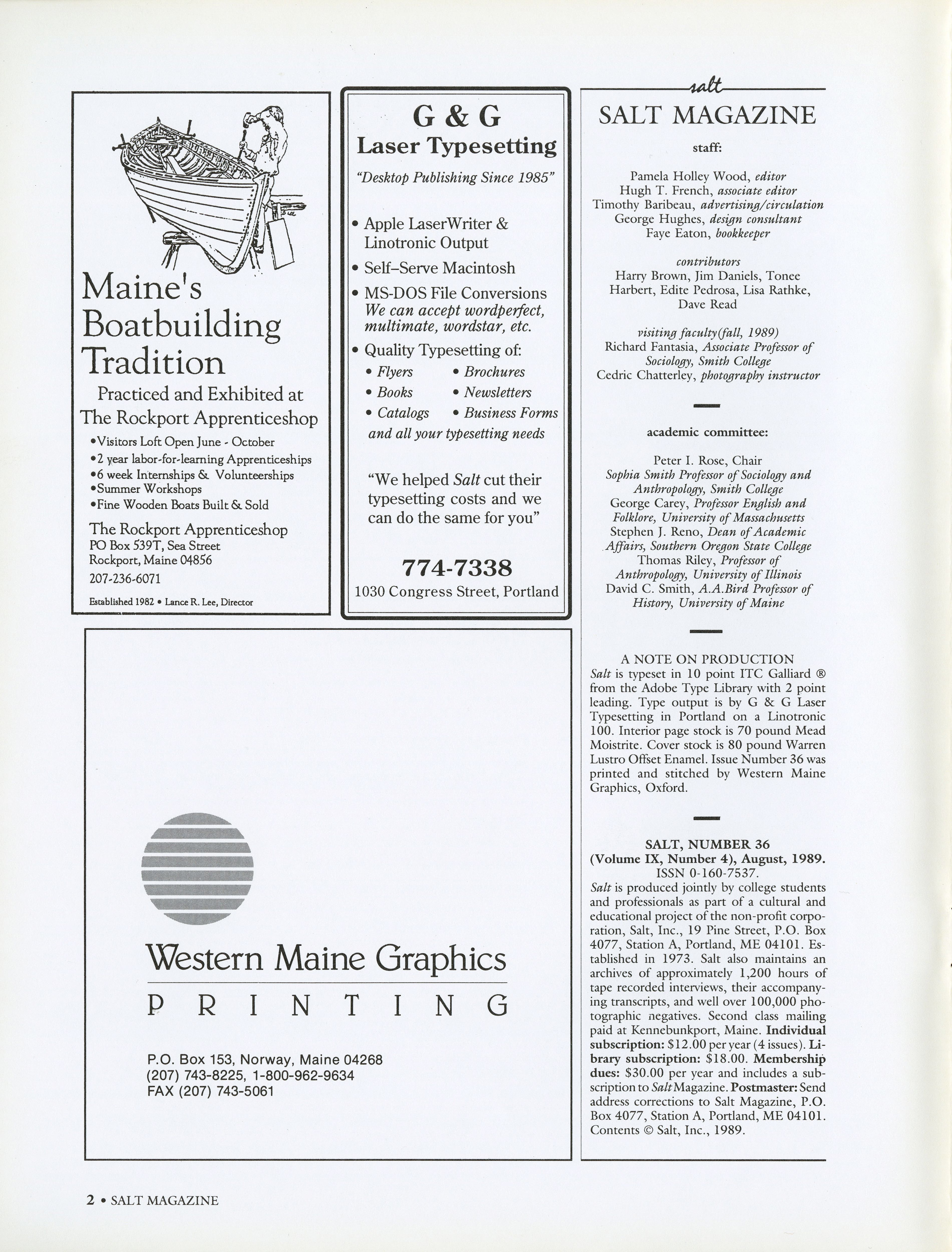 Listing of Salt production staff, contributors, and faculty.