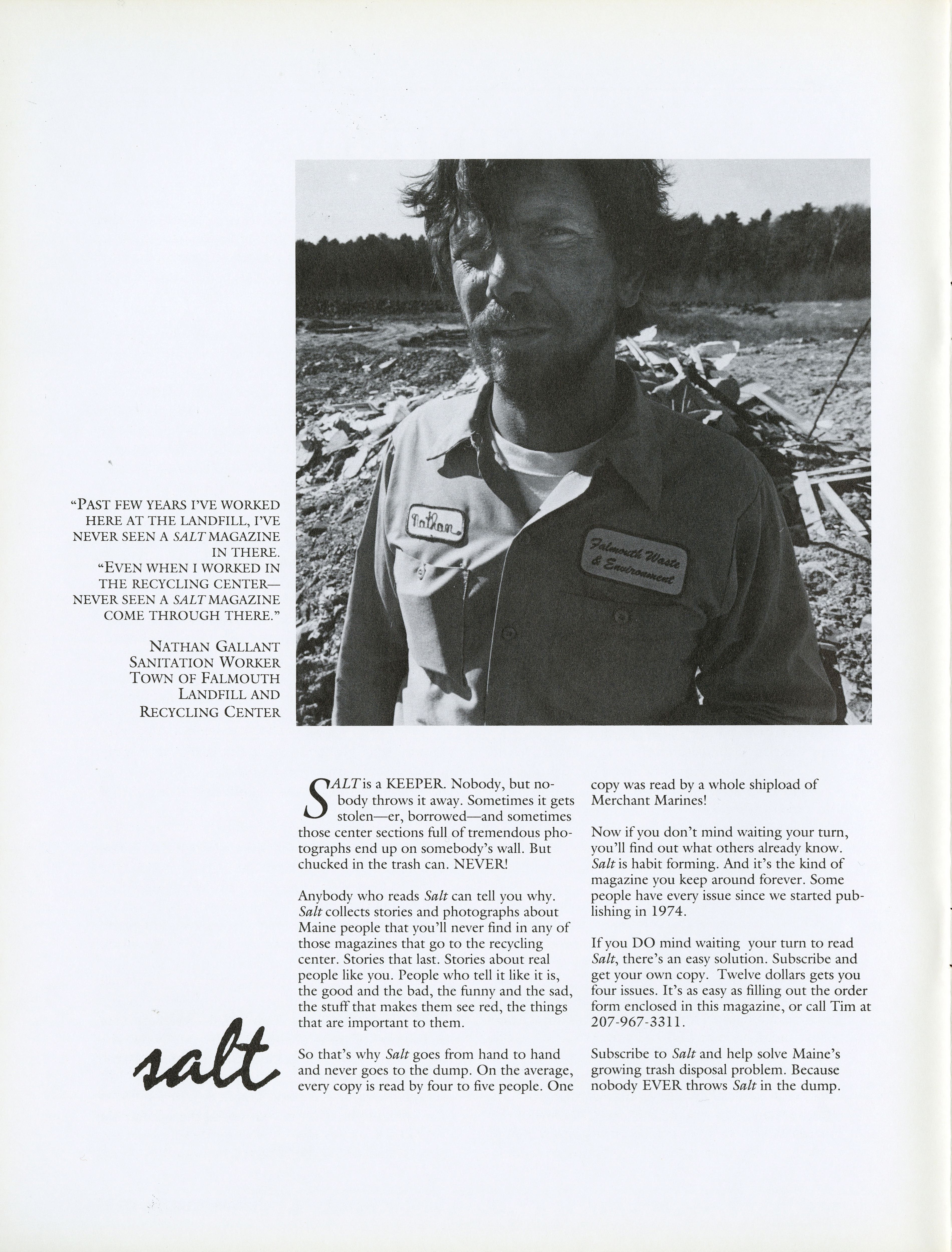 Advertisement for subscribing to Salt Magazine.