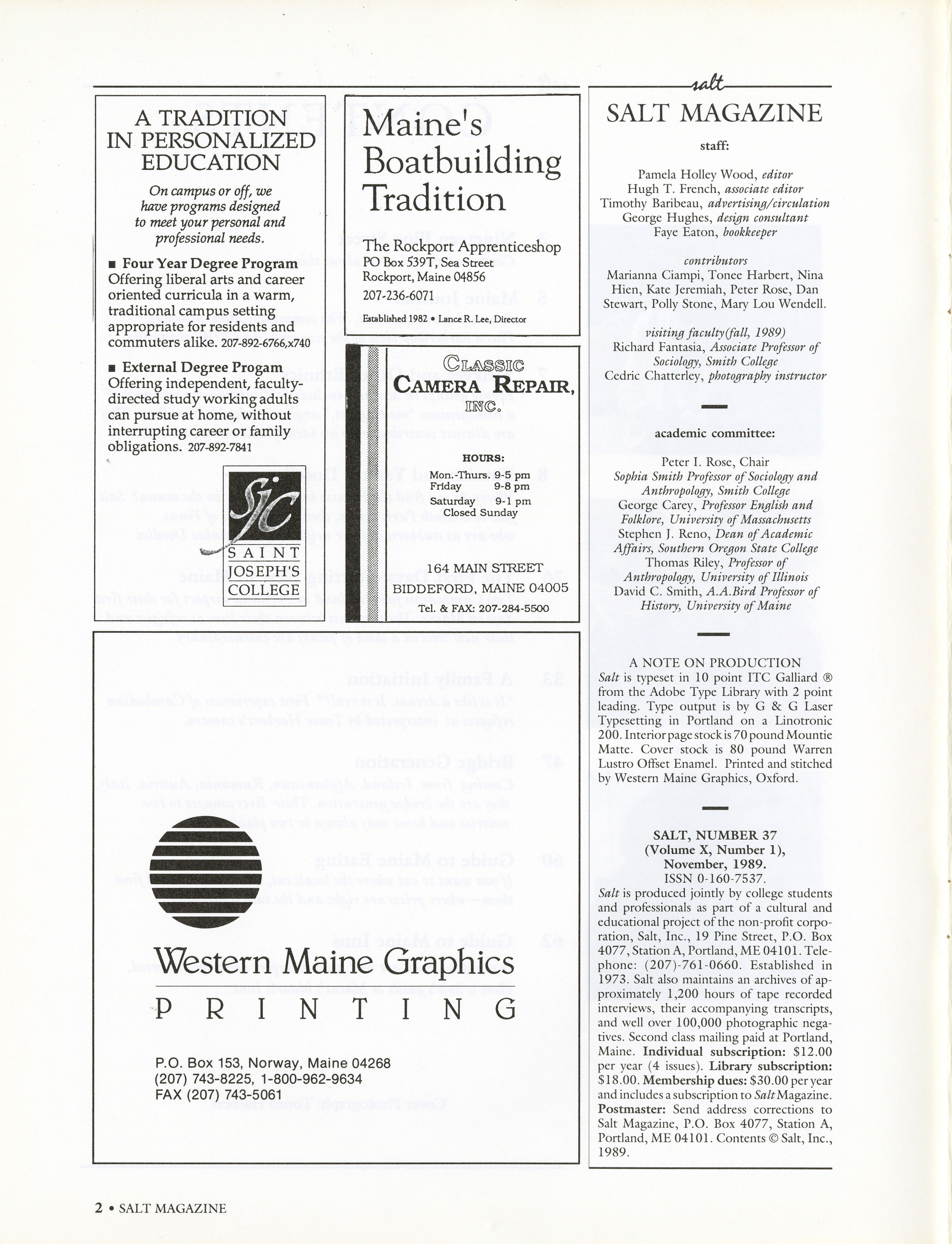 Listing of Salt production staff, contributors, and faculty.
