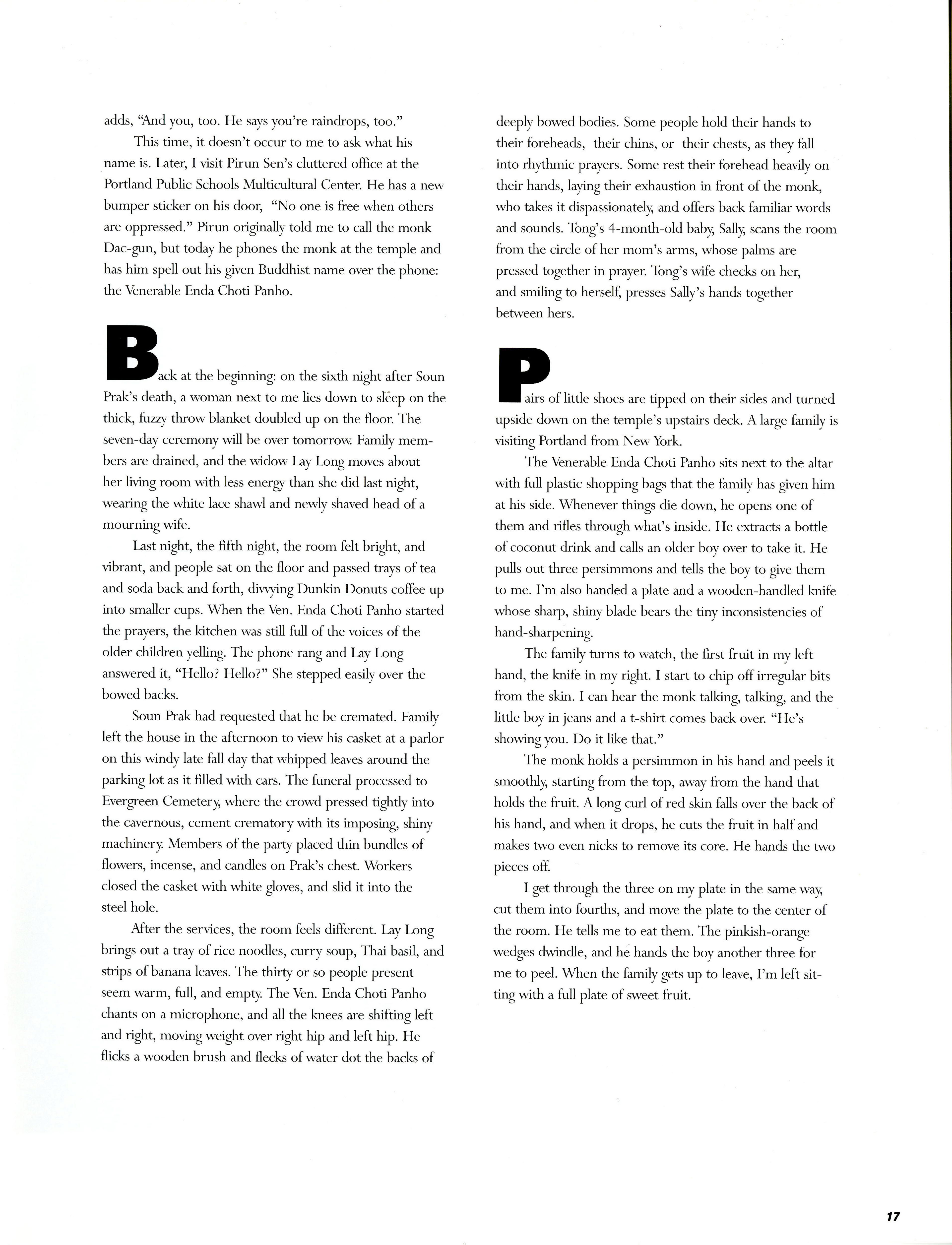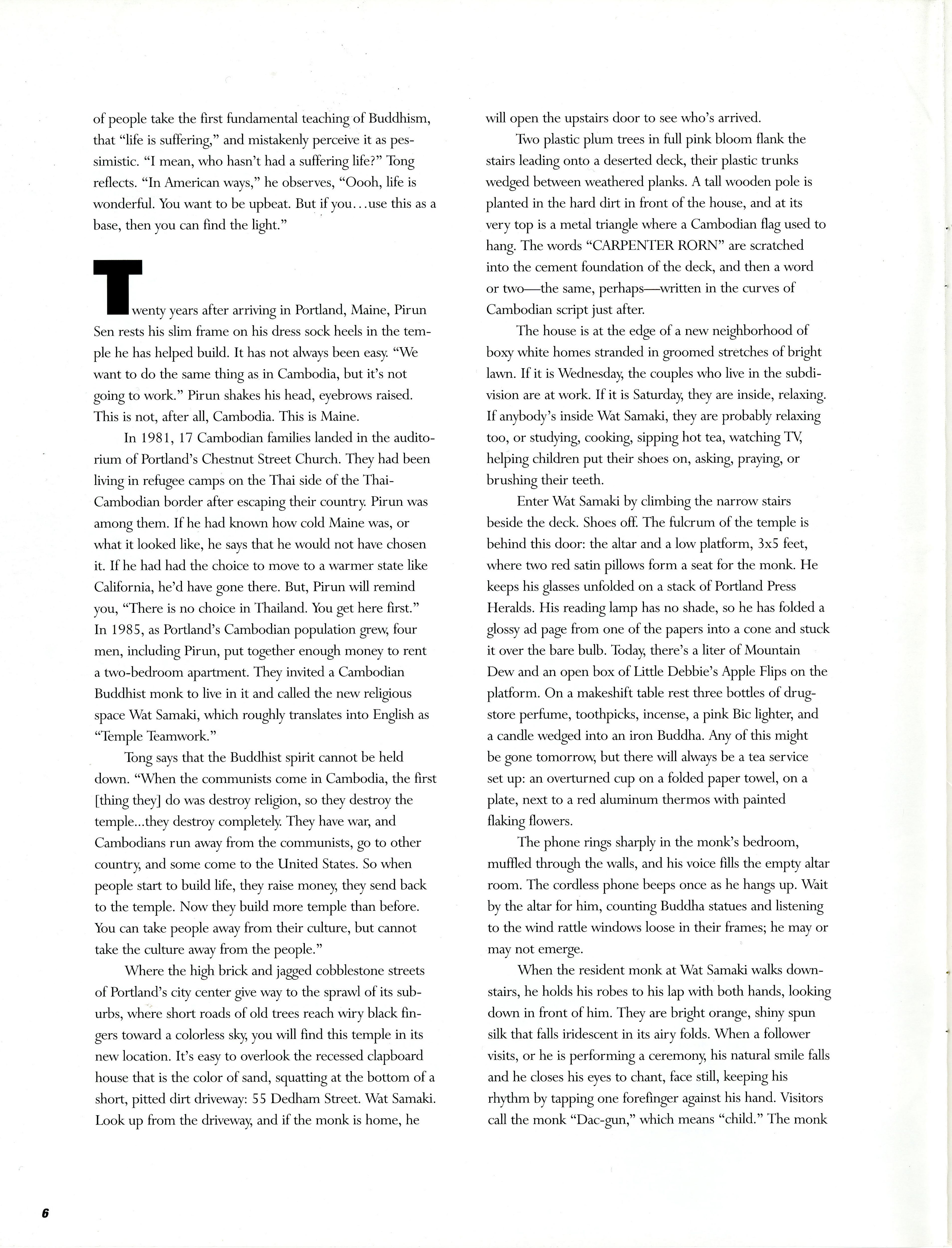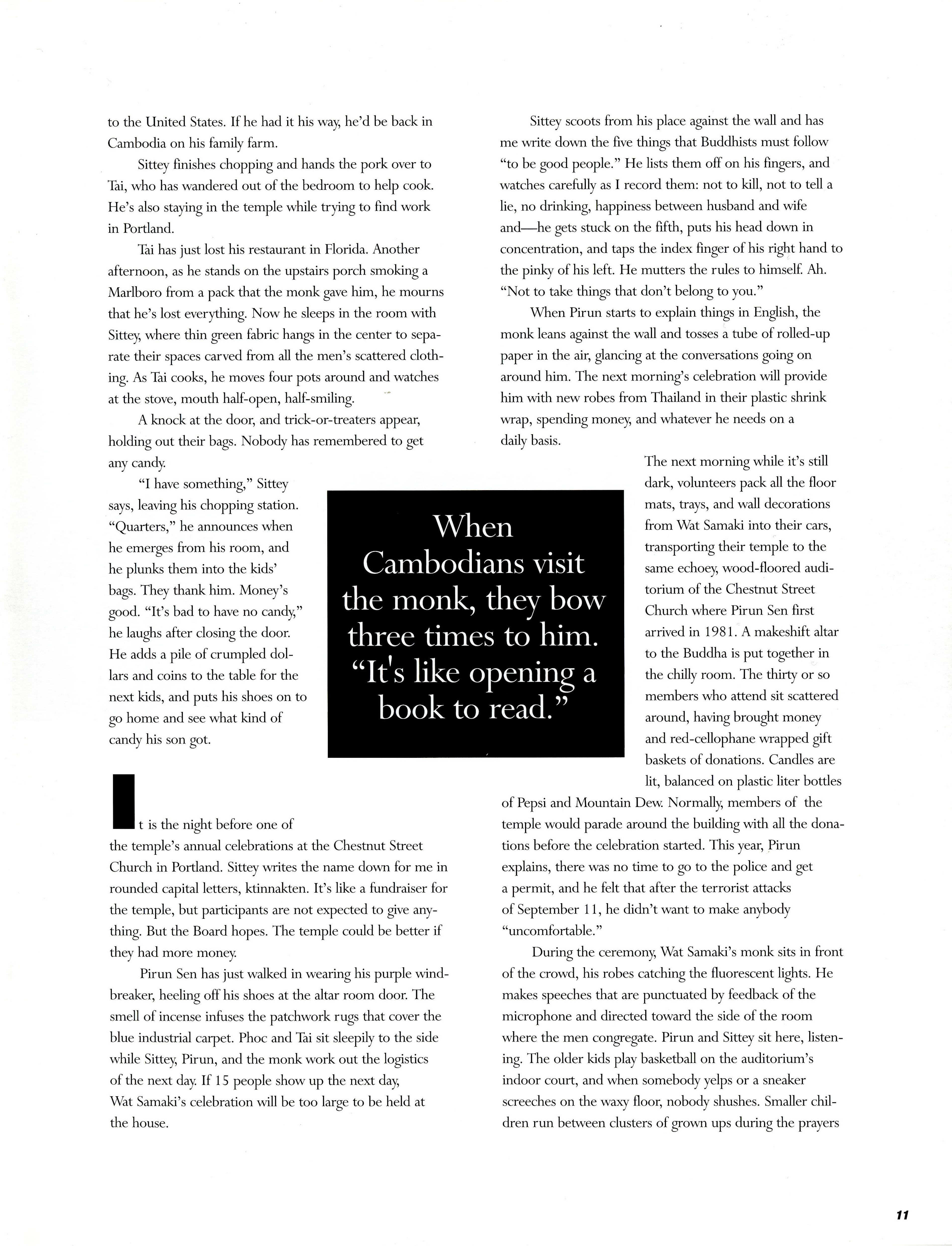 Krista Mahr documents the growth of the Cambodian community in Portland, speaking with several individuals regarding their culture and religion.