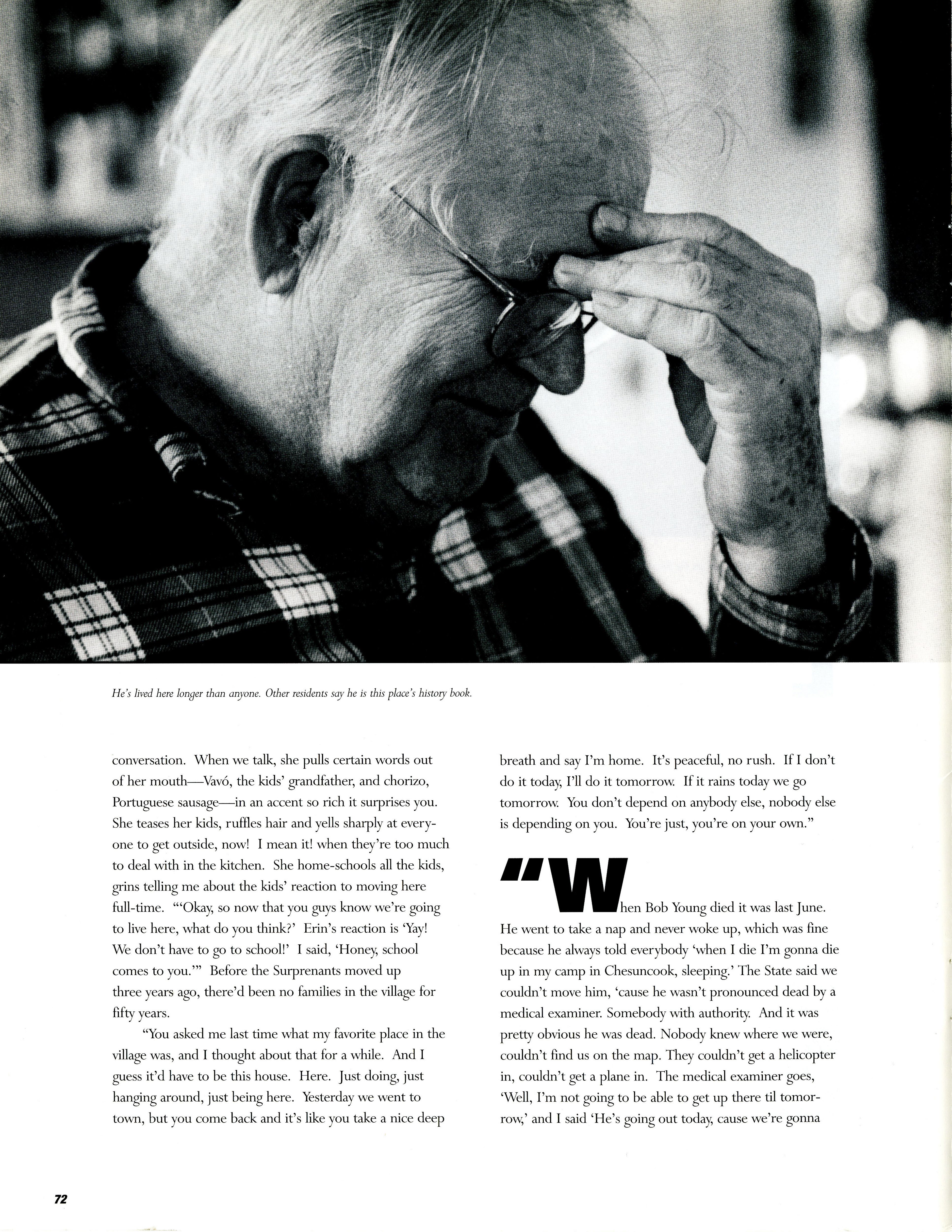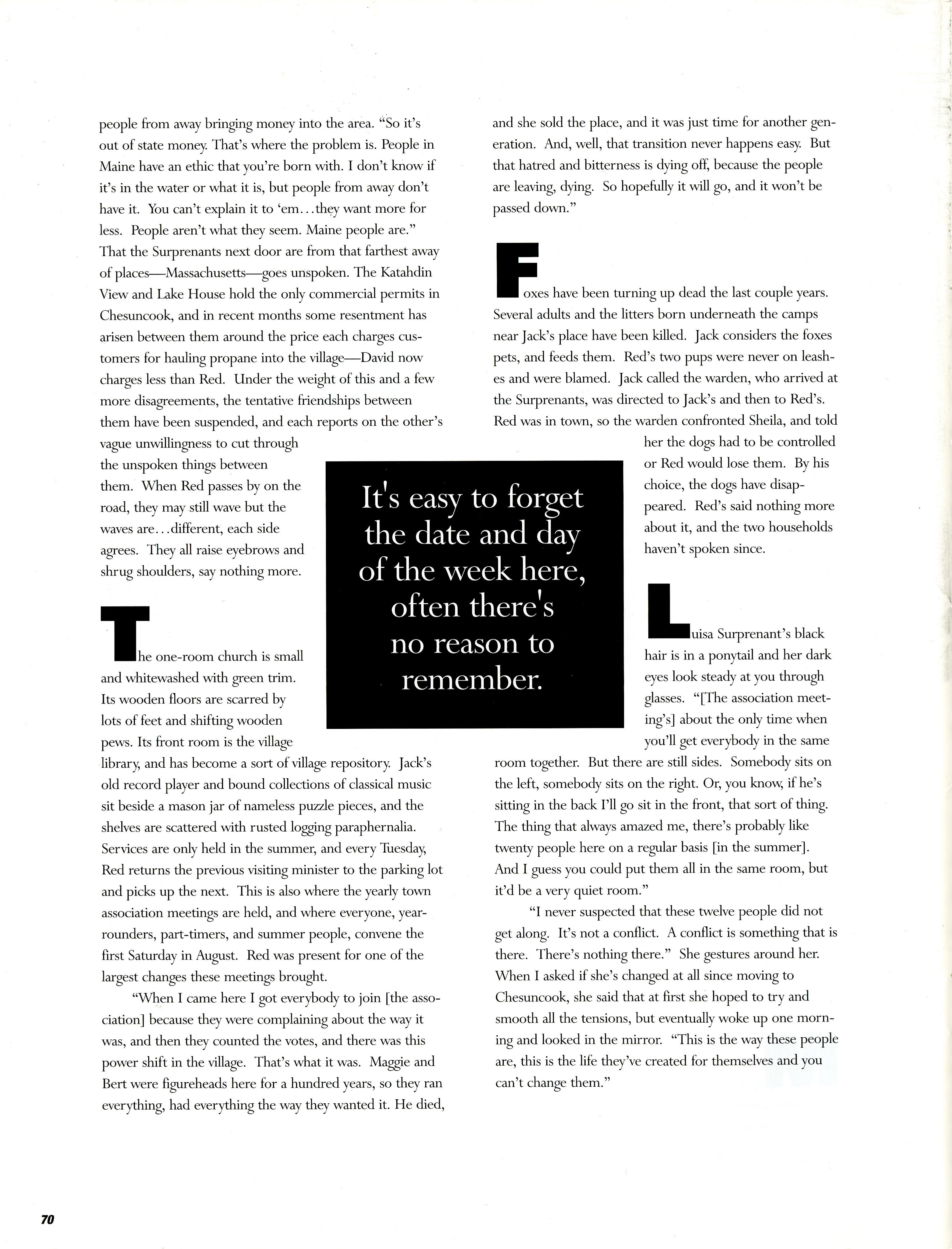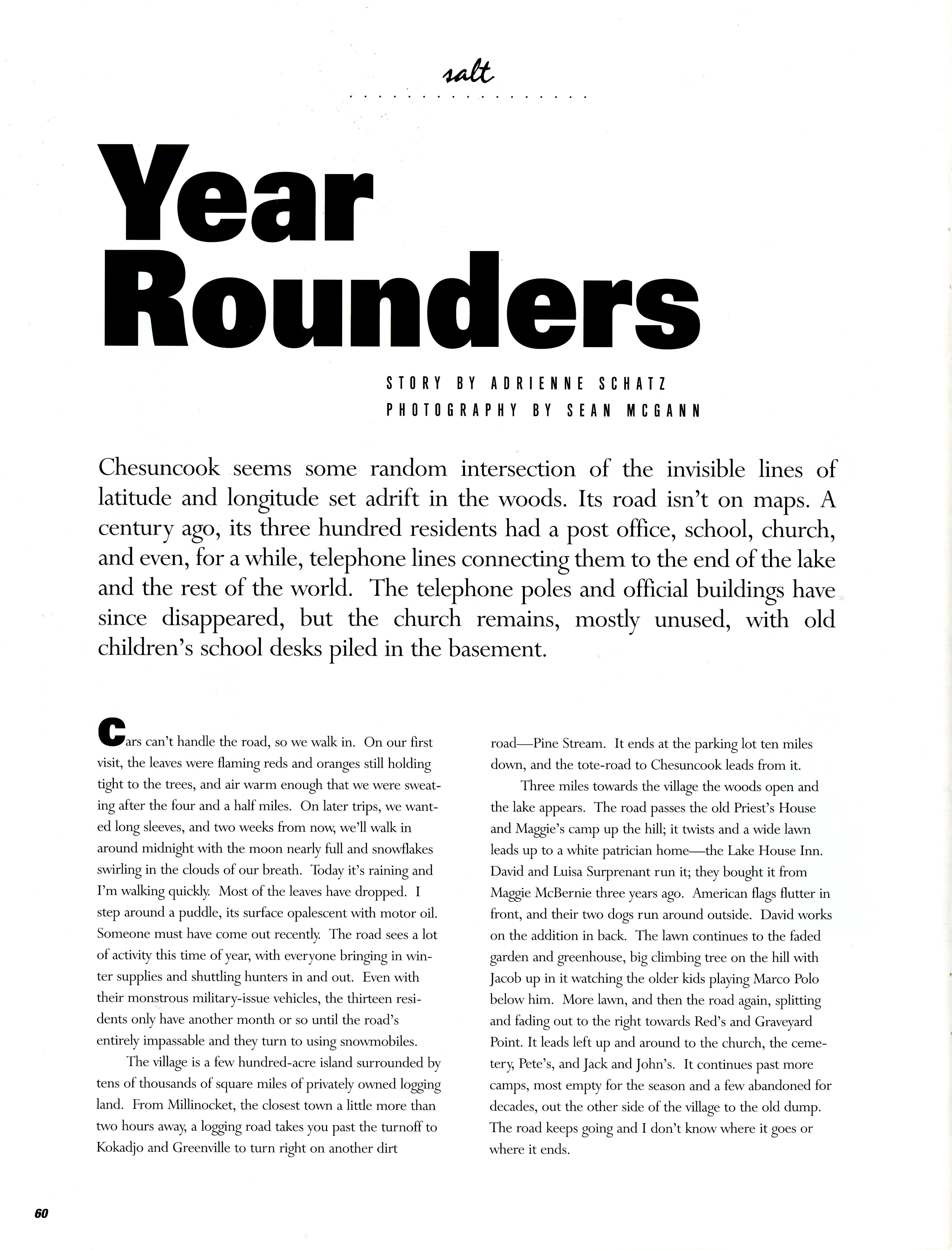 Adrienne Schatz highlights life in the small town of Chesuncook, Maine. Schatz discusses the solitude that Chesuncook provides for its residents and their way of life.