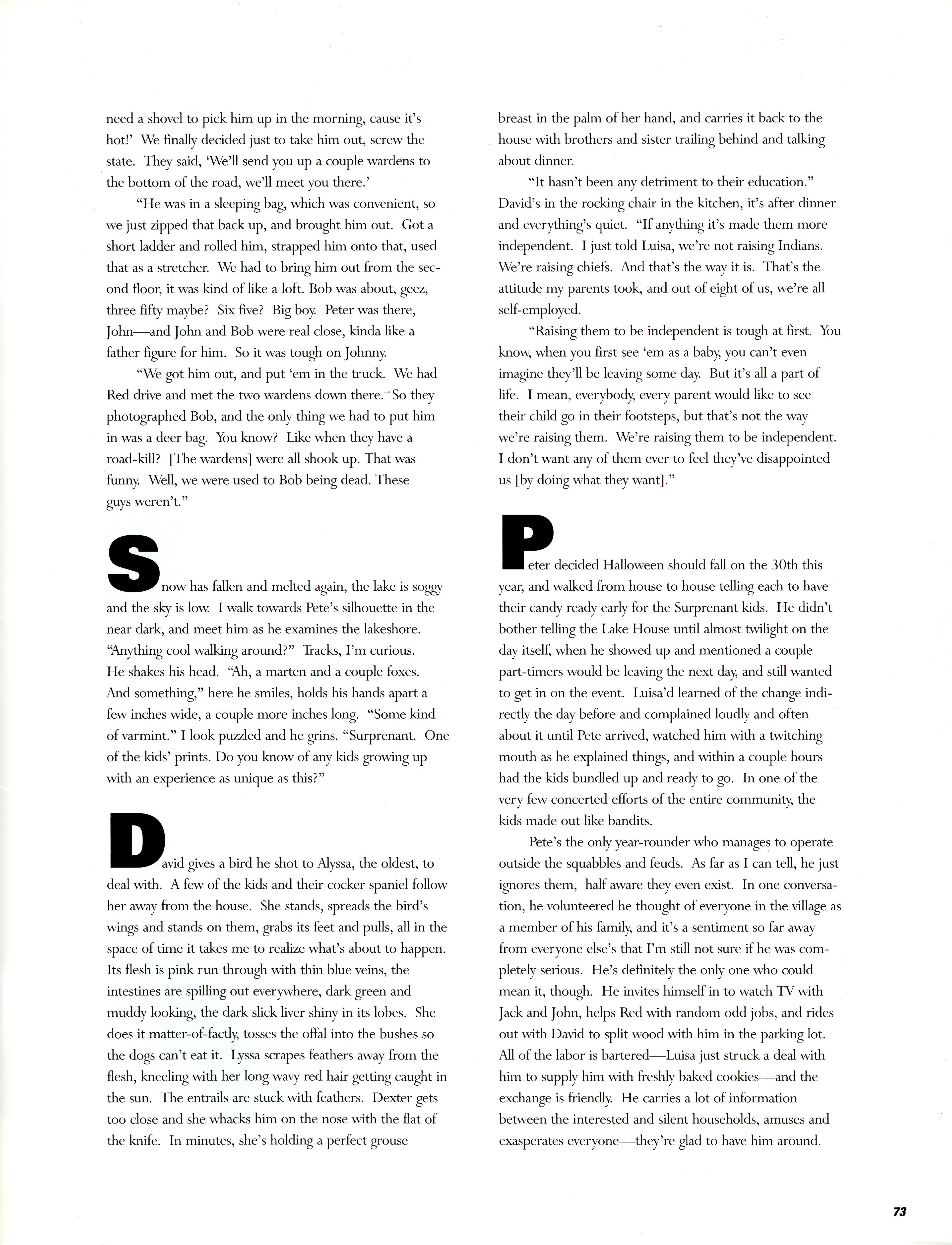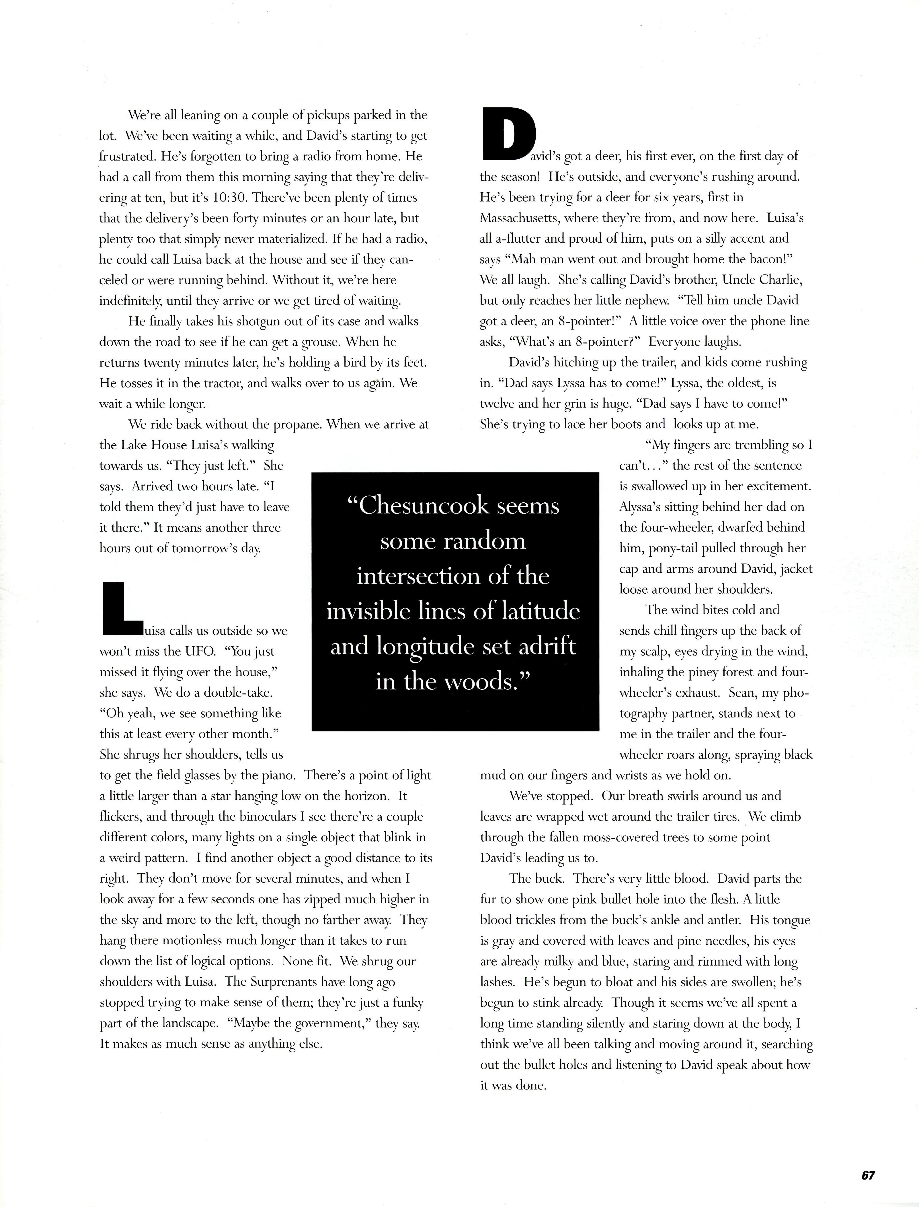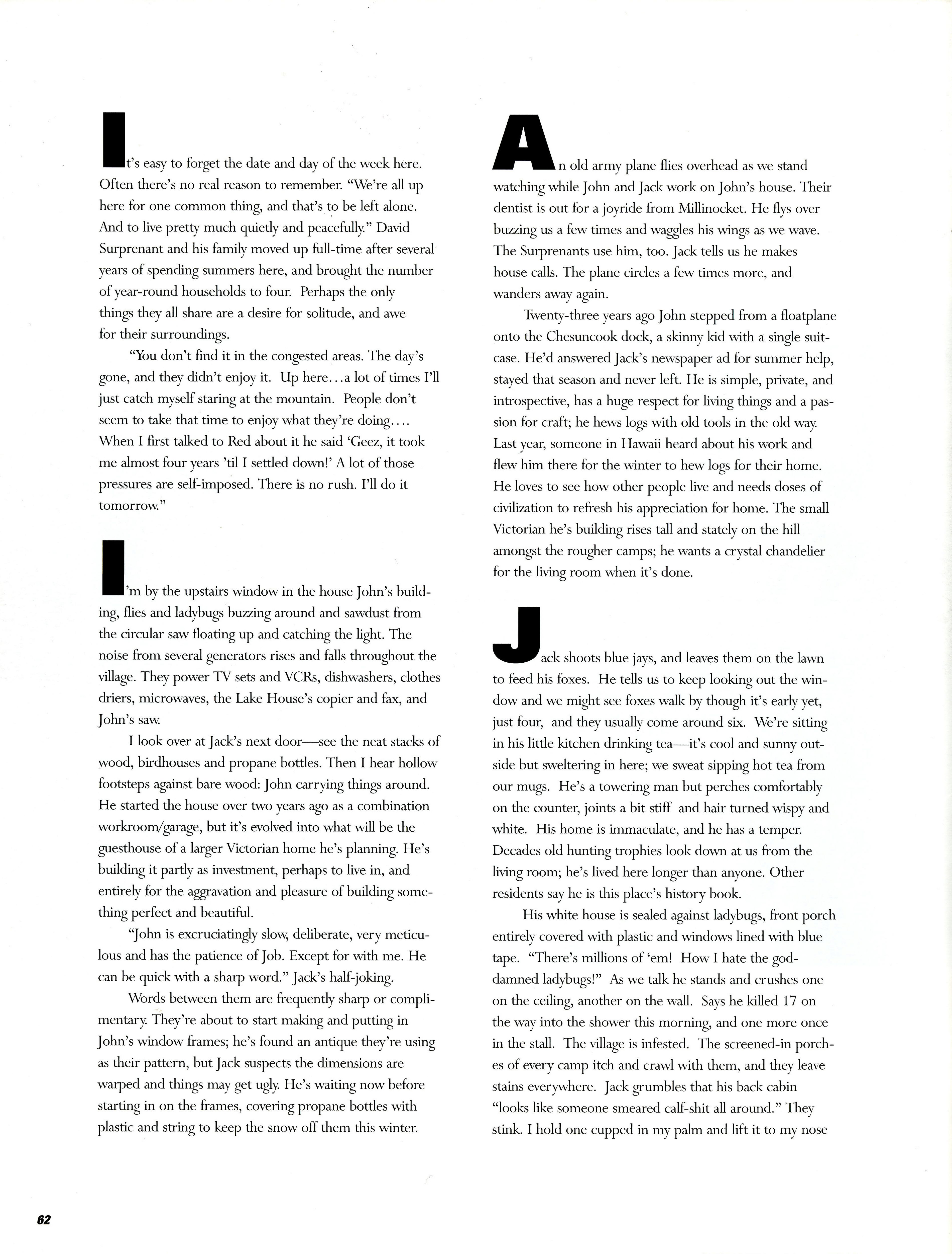 Adrienne Schatz highlights life in the small town of Chesuncook, Maine. Schatz discusses the solitude that Chesuncook provides for its residents and their way of life.