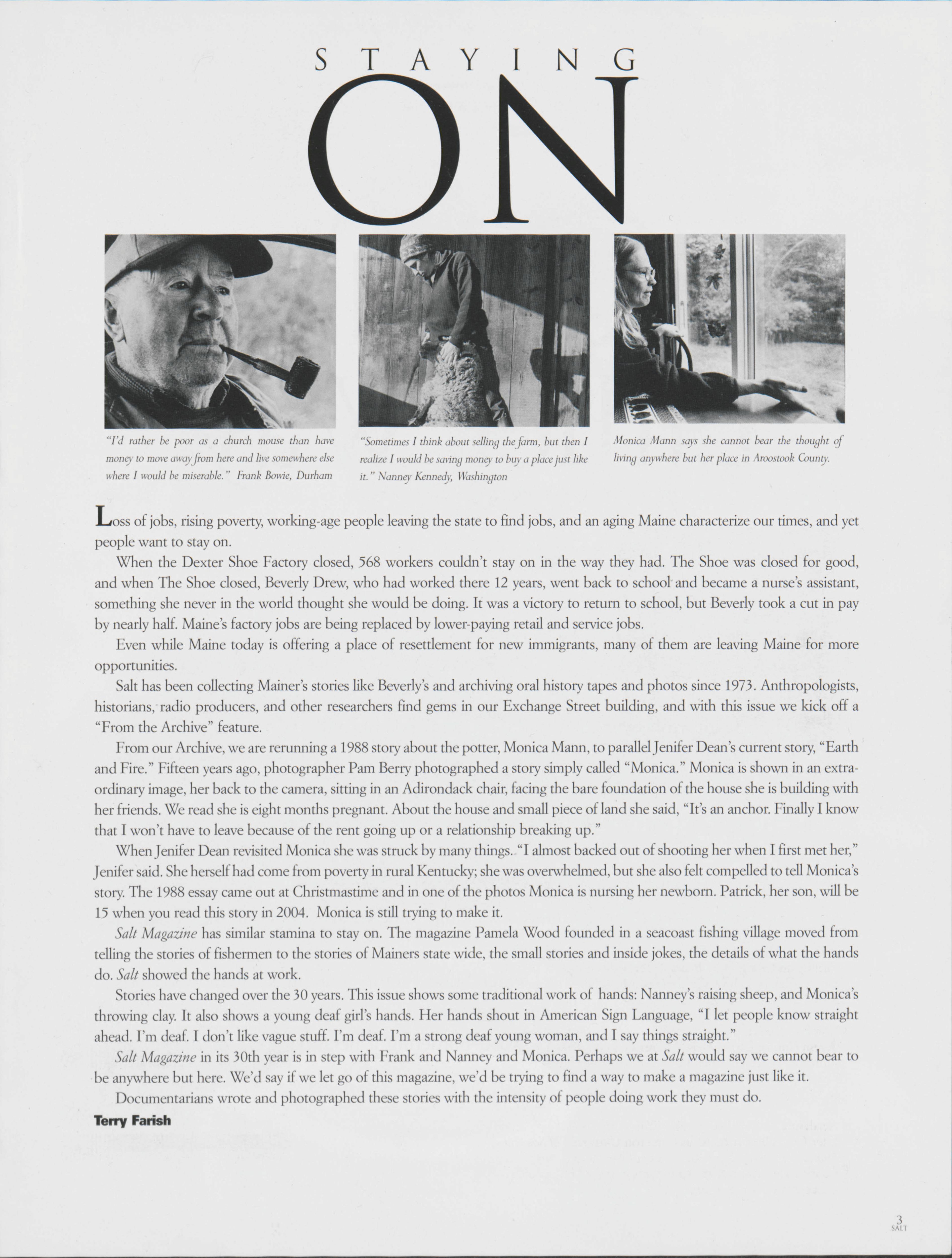 Terry Farish introduces readers to stories in the Salt 2003-2004 Magazine.