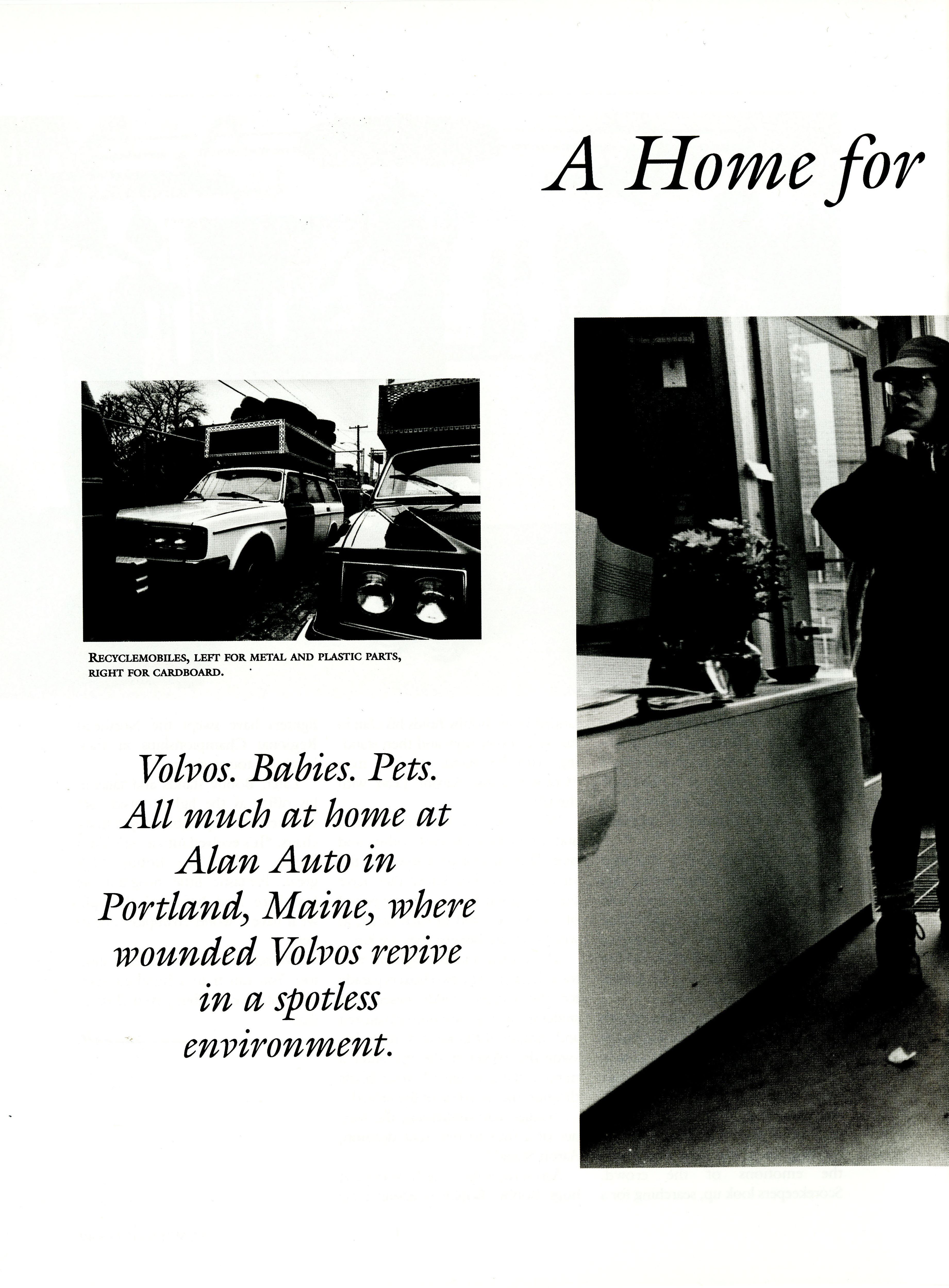 Eric White captures the work and environment at Alan Auto in Portland, where wounded Volvo's are revived.