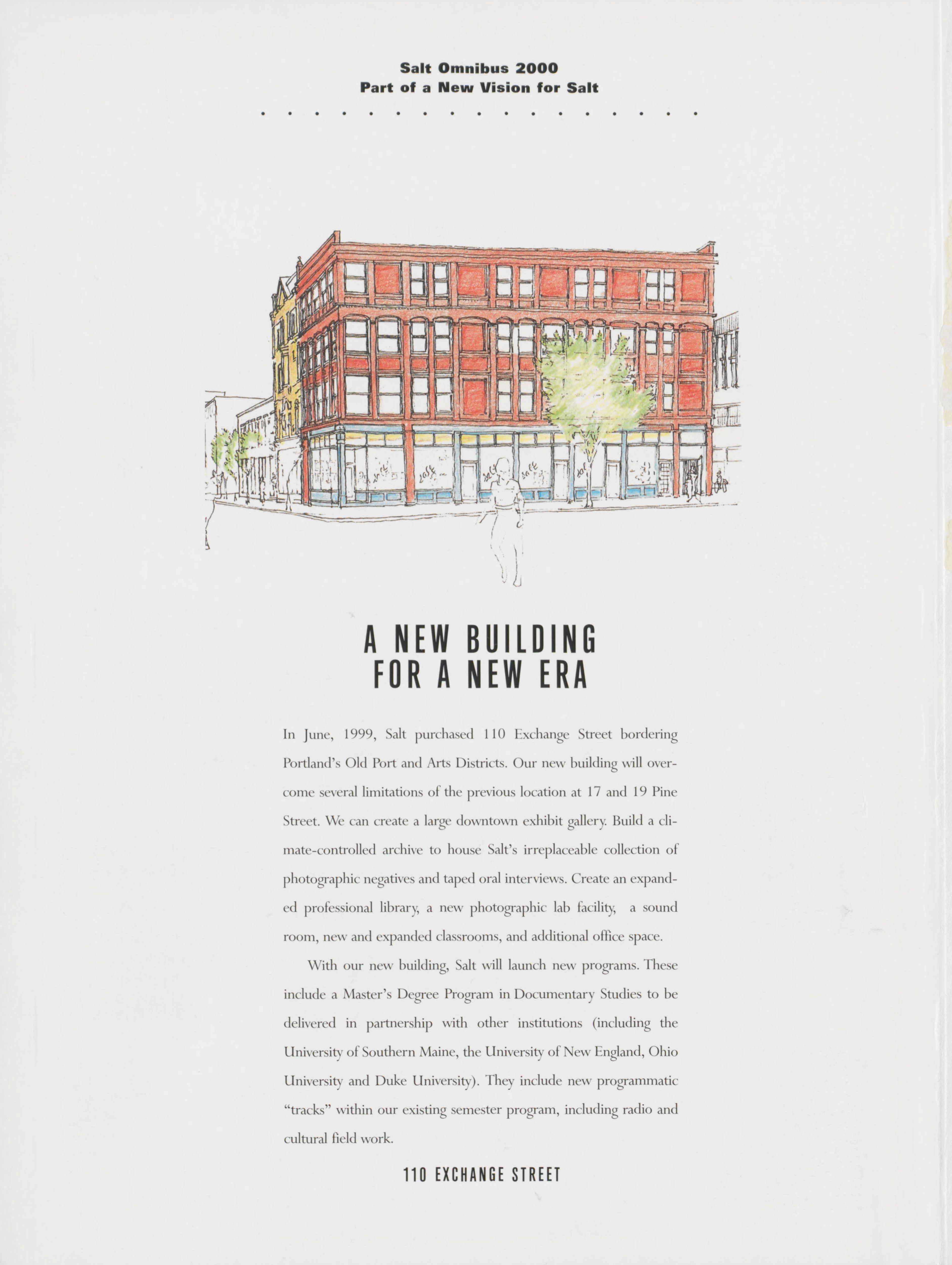 Inside front cover for the Salt Omnibus 2000, discussing the new location for Salt in Portland.