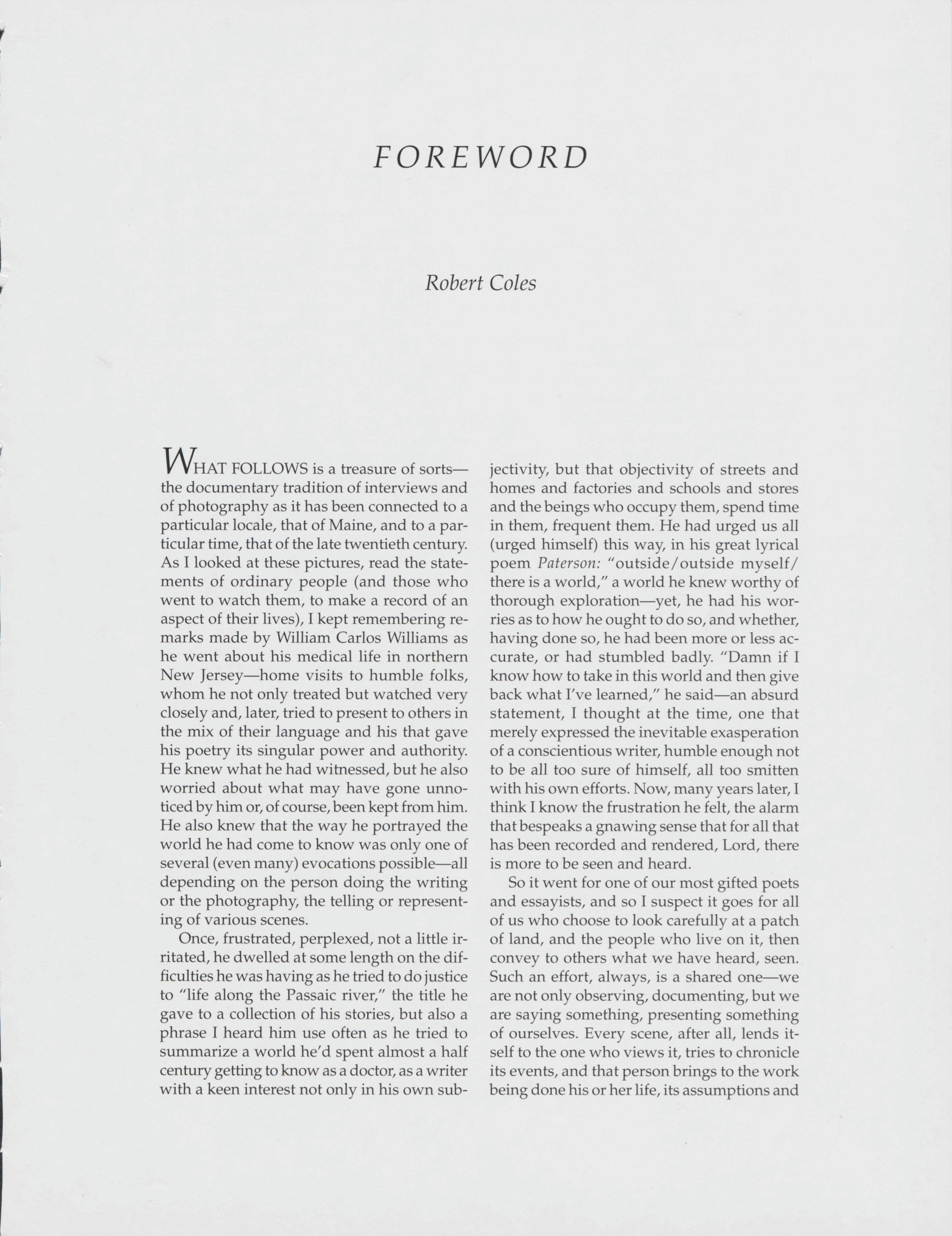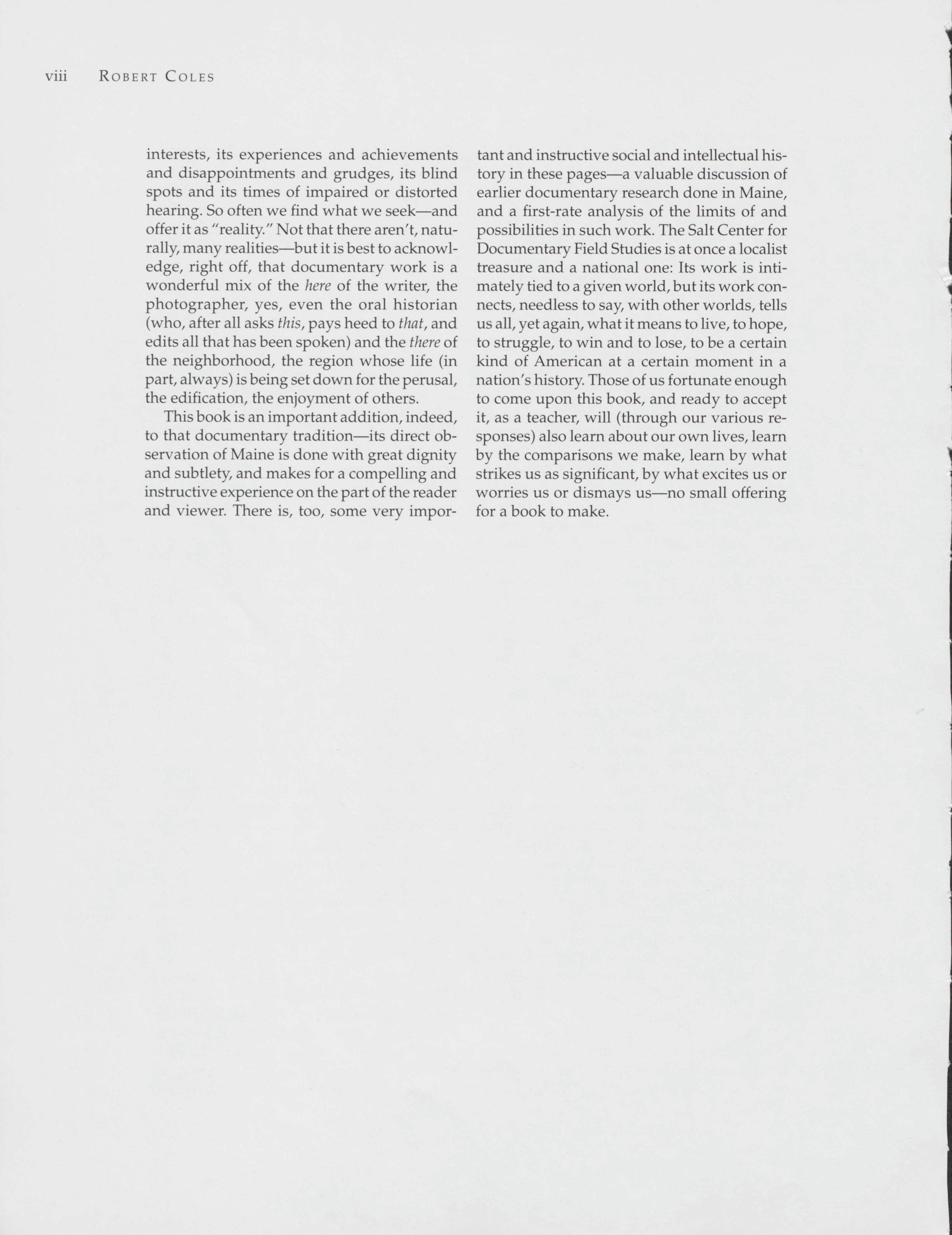 Forward to by Robert Coles to Maine: A Peopled Landscape.