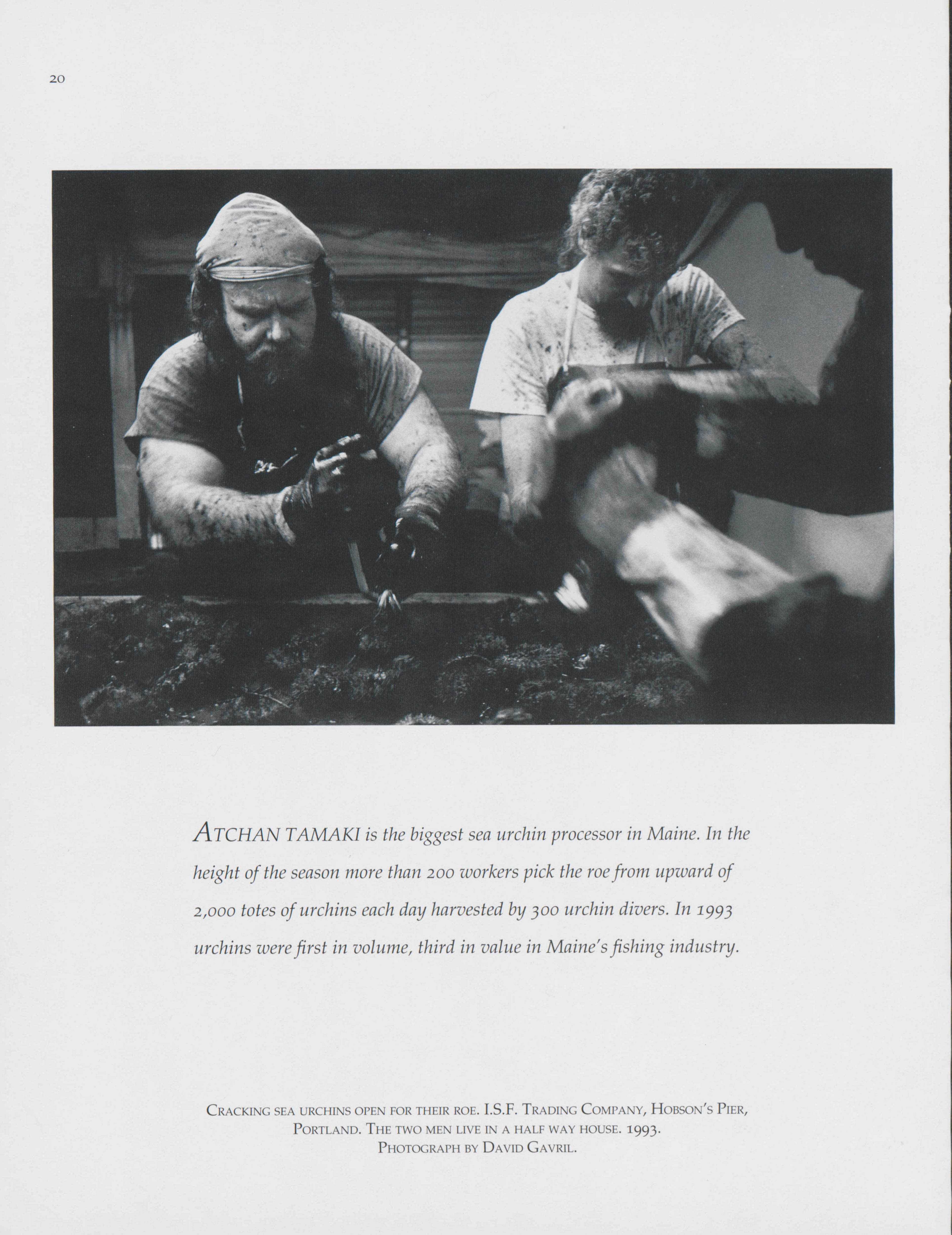 In the process of cracking open sea urchins, David Gavril observes two men looking for roe.