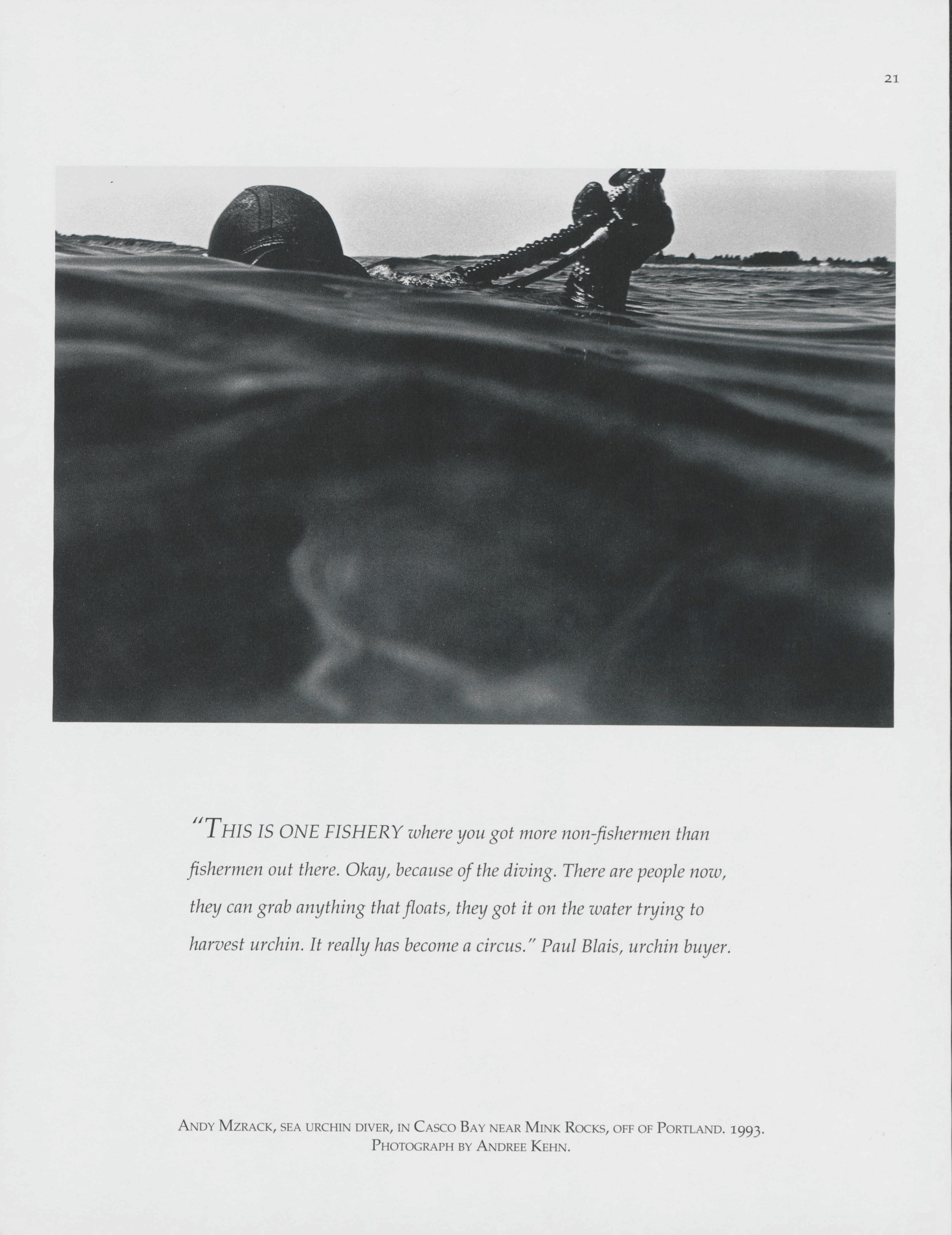 Andree Kehn presents Andy Mzrack in action diving for urchins in Casco Bay.