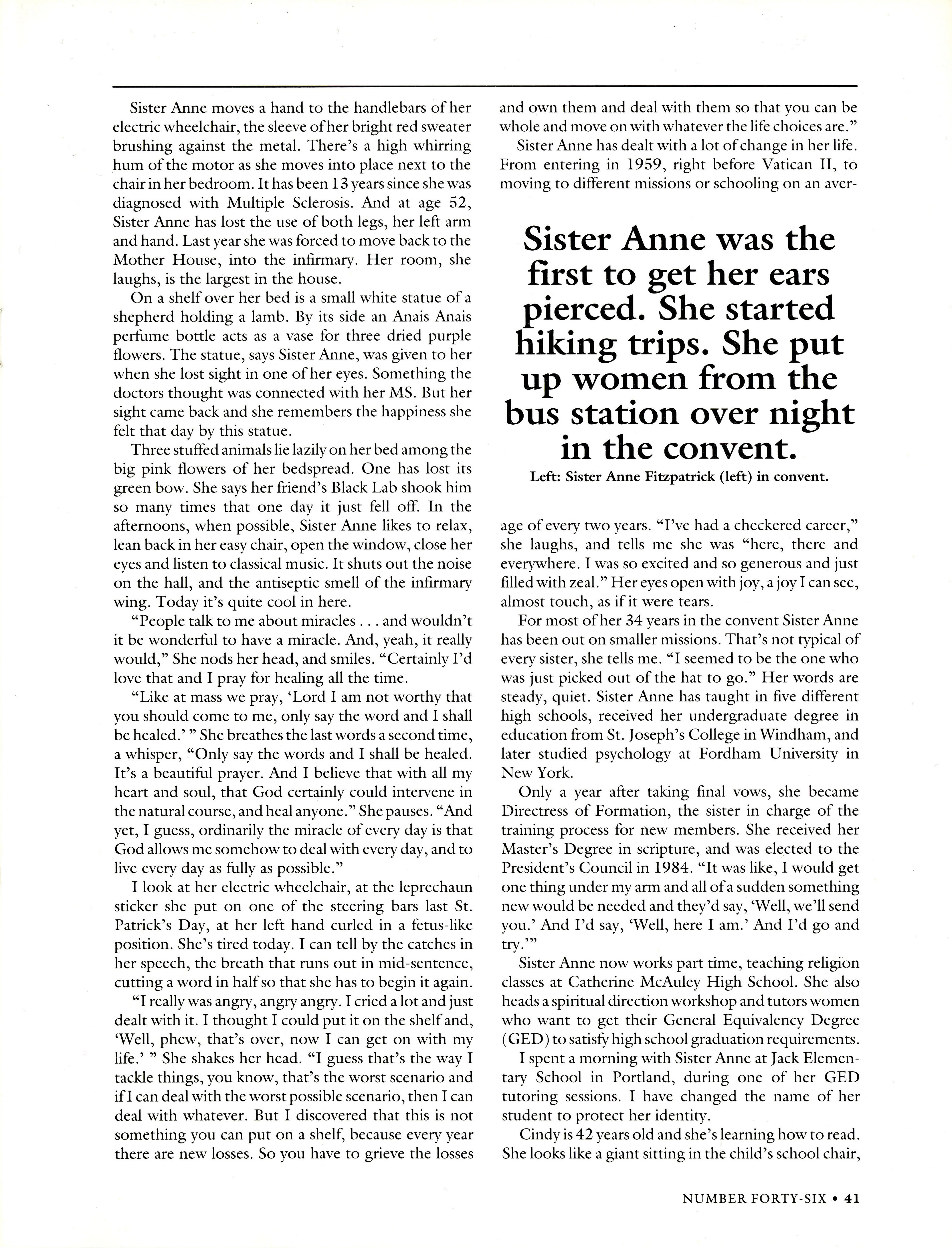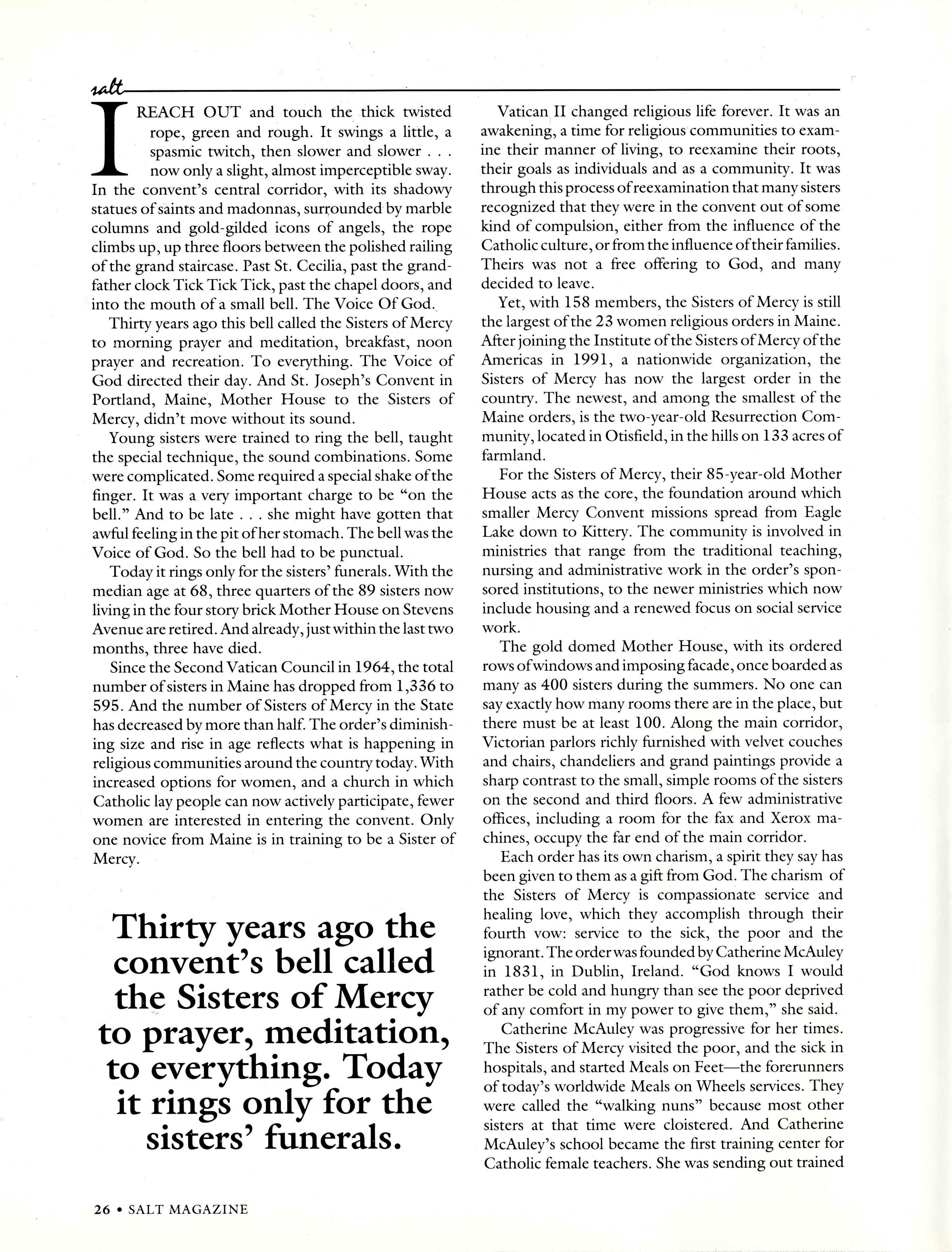 As more opportunities grew for women in the workplace, and religious activity became accessible to the lay person, many religious communities saw a drop in numbers. Leith Warlick explores the Sisters of Mercy community and discusses the traditions that they continue to practice at St. Joseph's Convent in Portland.