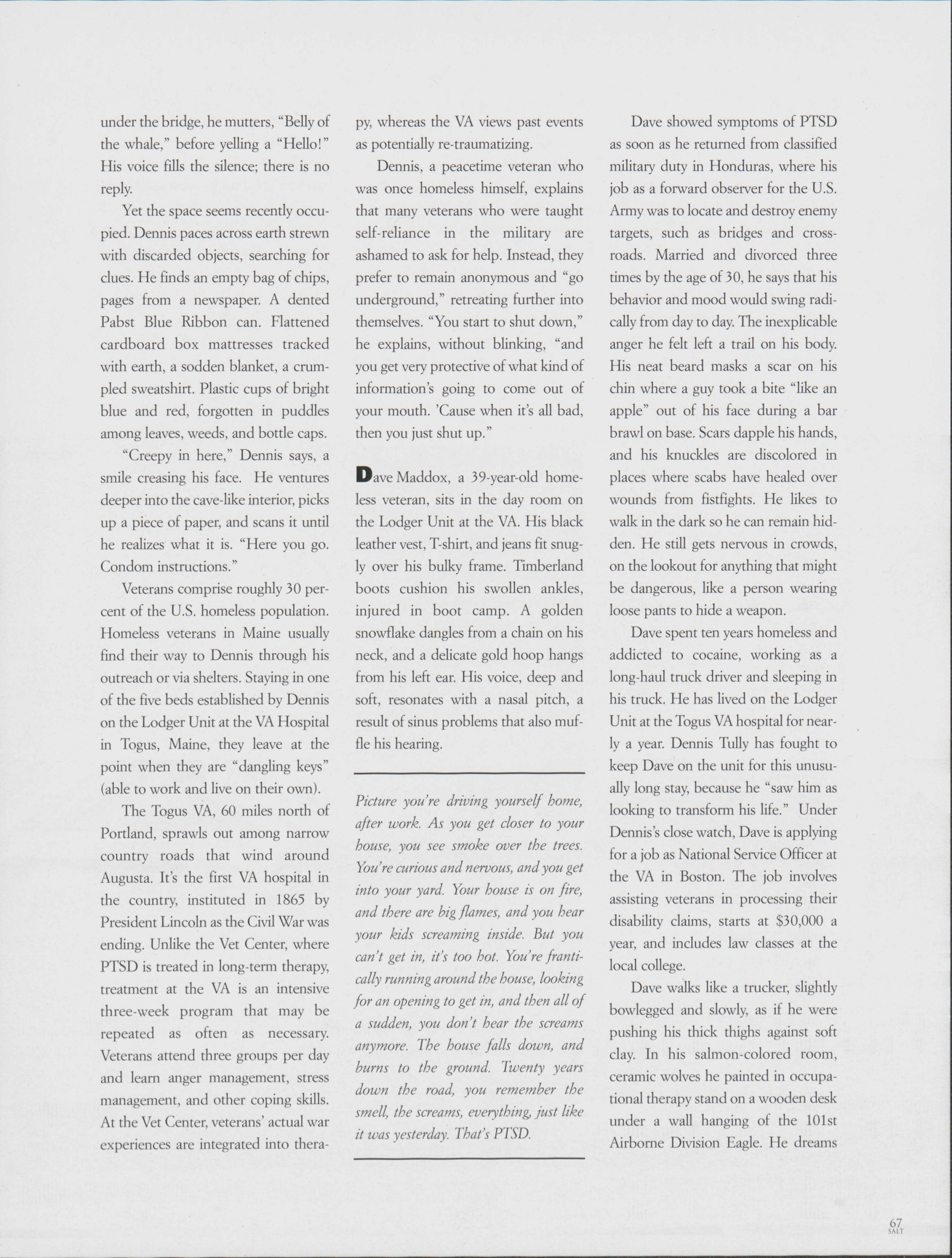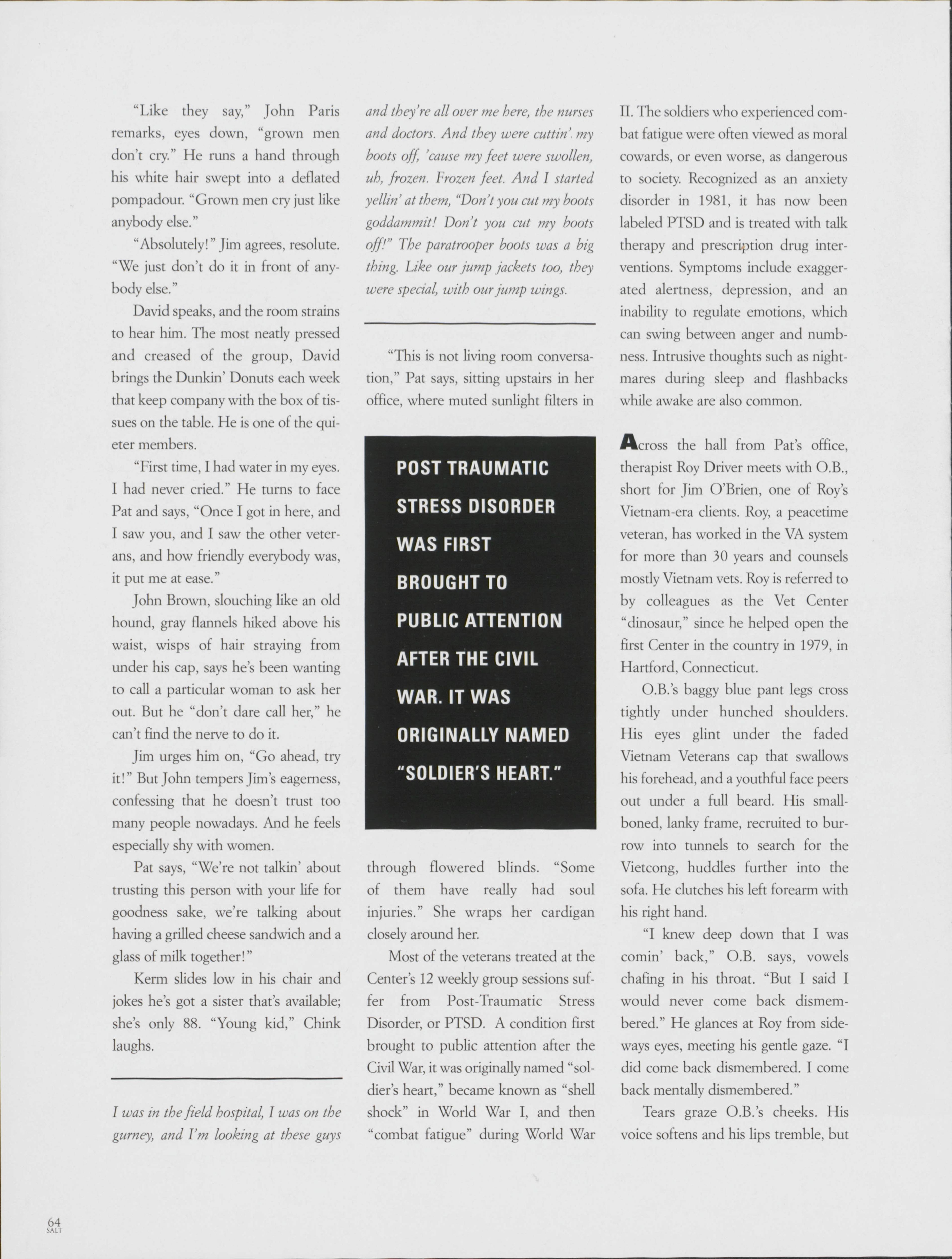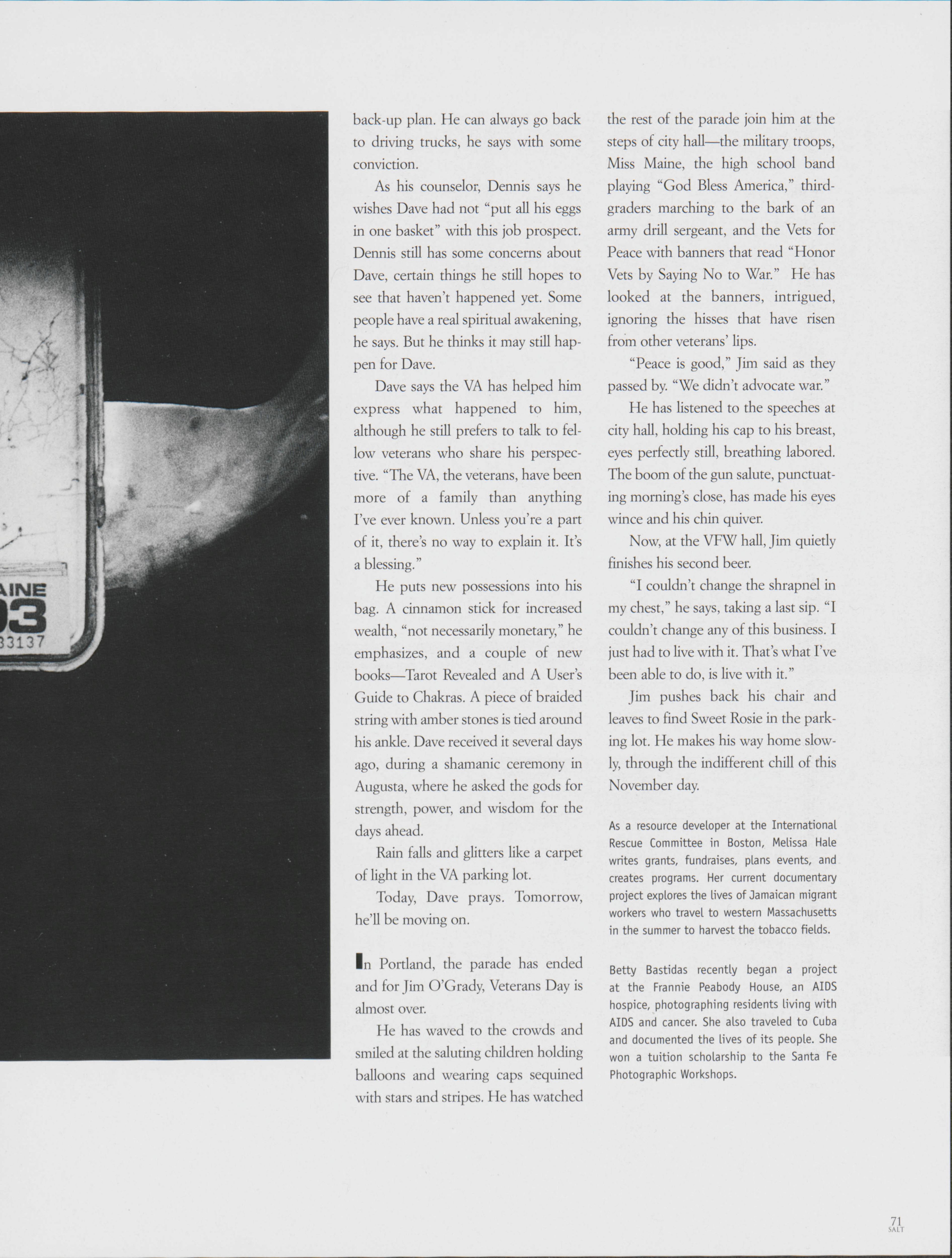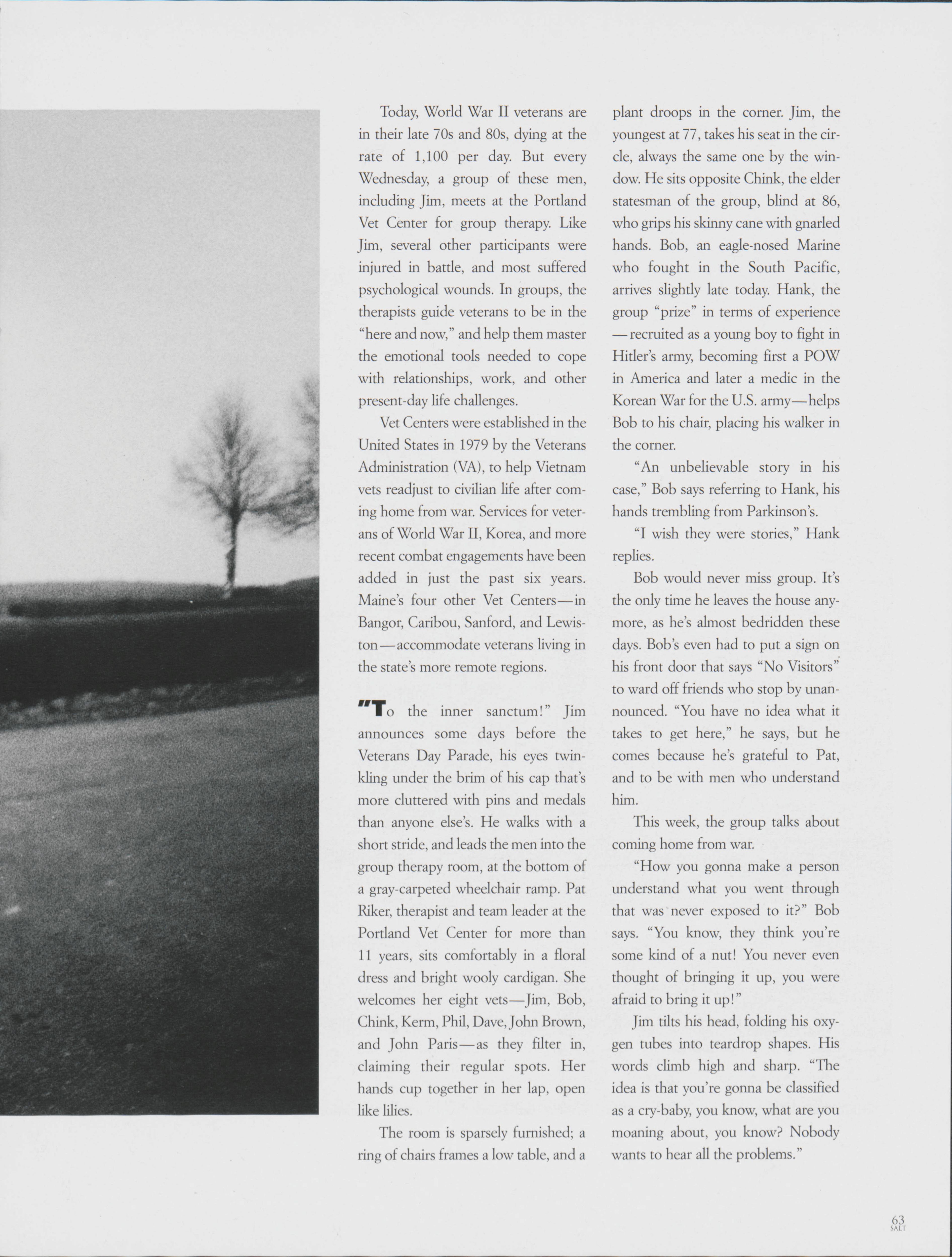 Melissa Hale speaks to war veterans about their lives and experiences in combat.