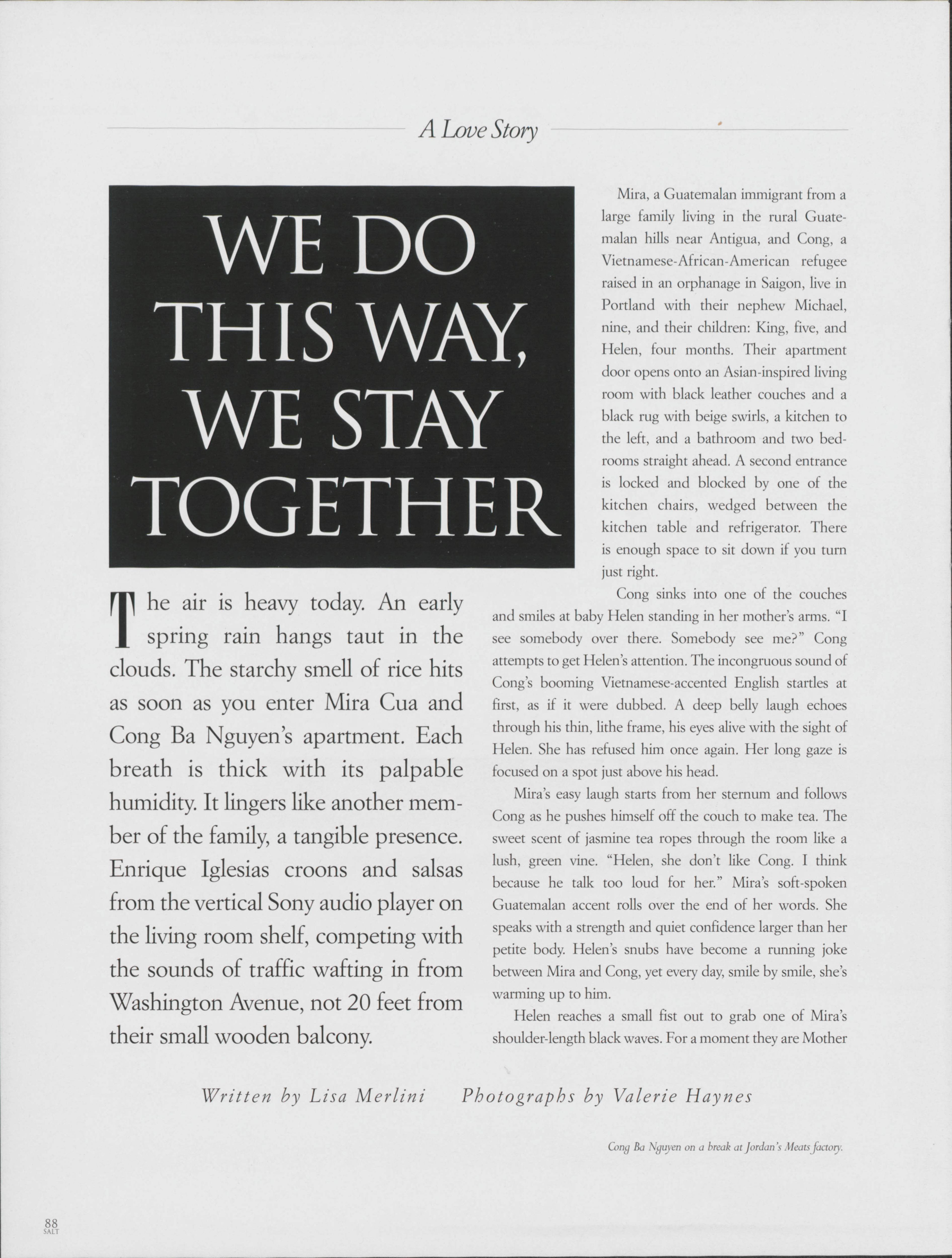 Lisa Merlini highlights the lives of Mira Cua and Cong Ba Nguyen, a couple who have different nationalities, but were able to mix and meld them into the family they started.