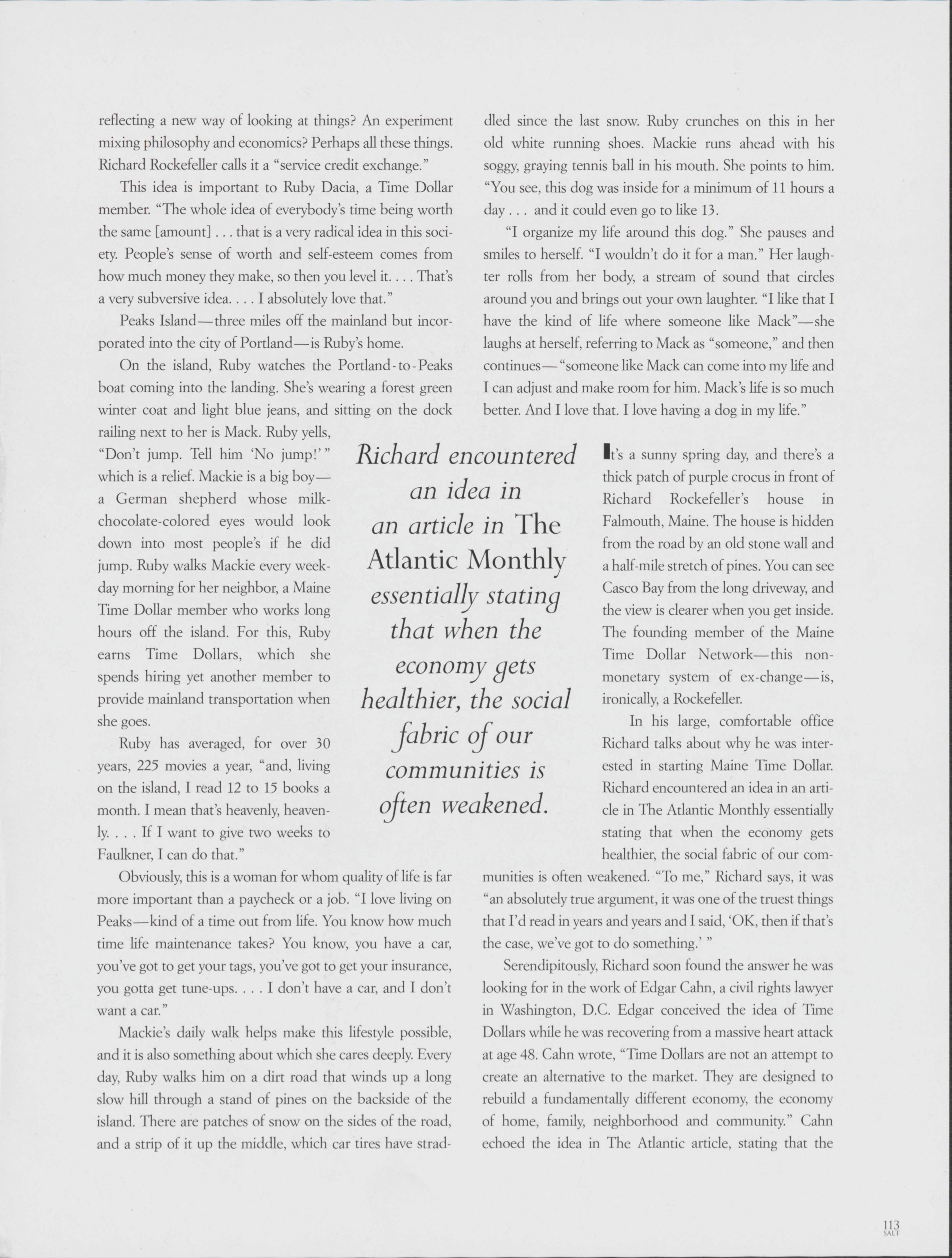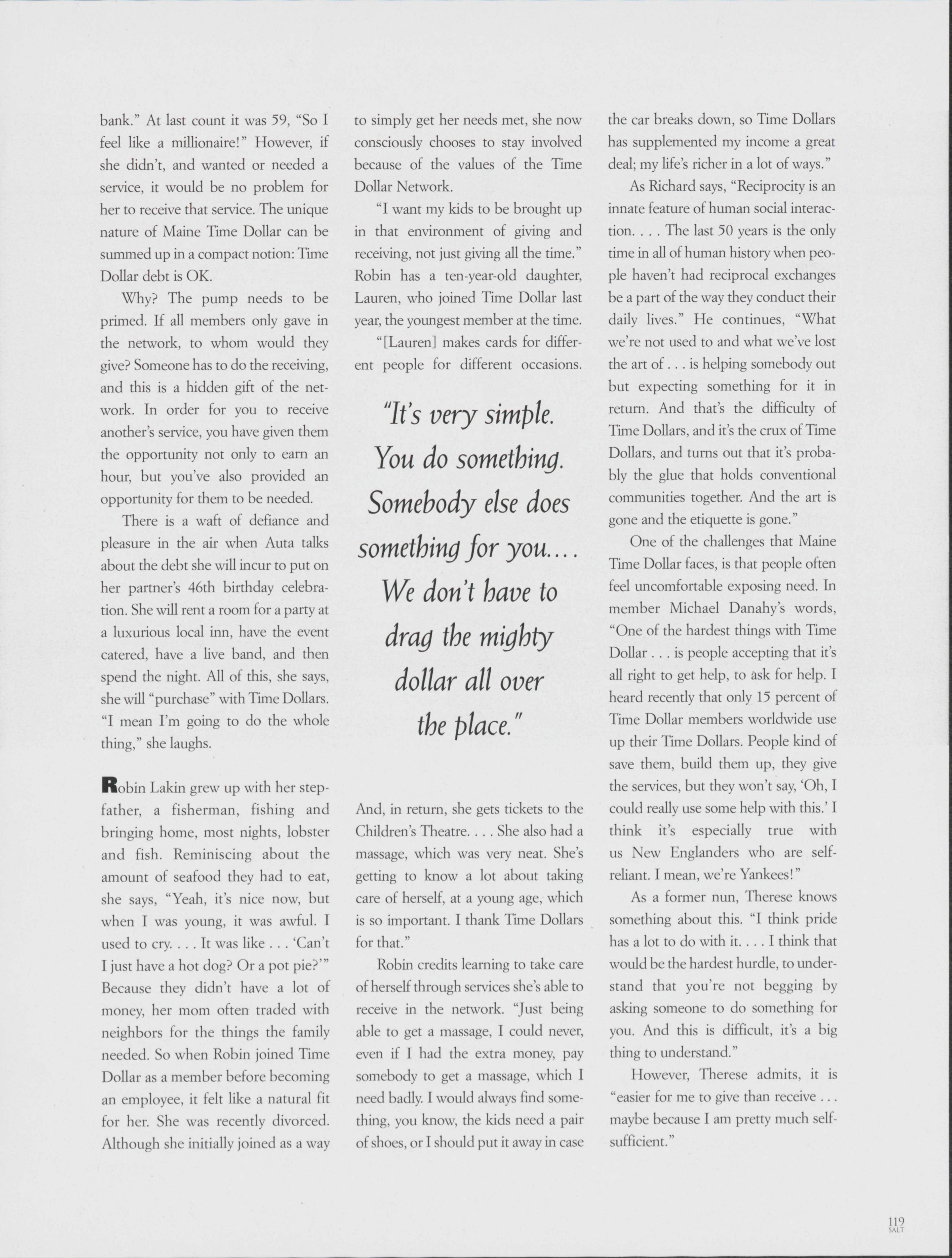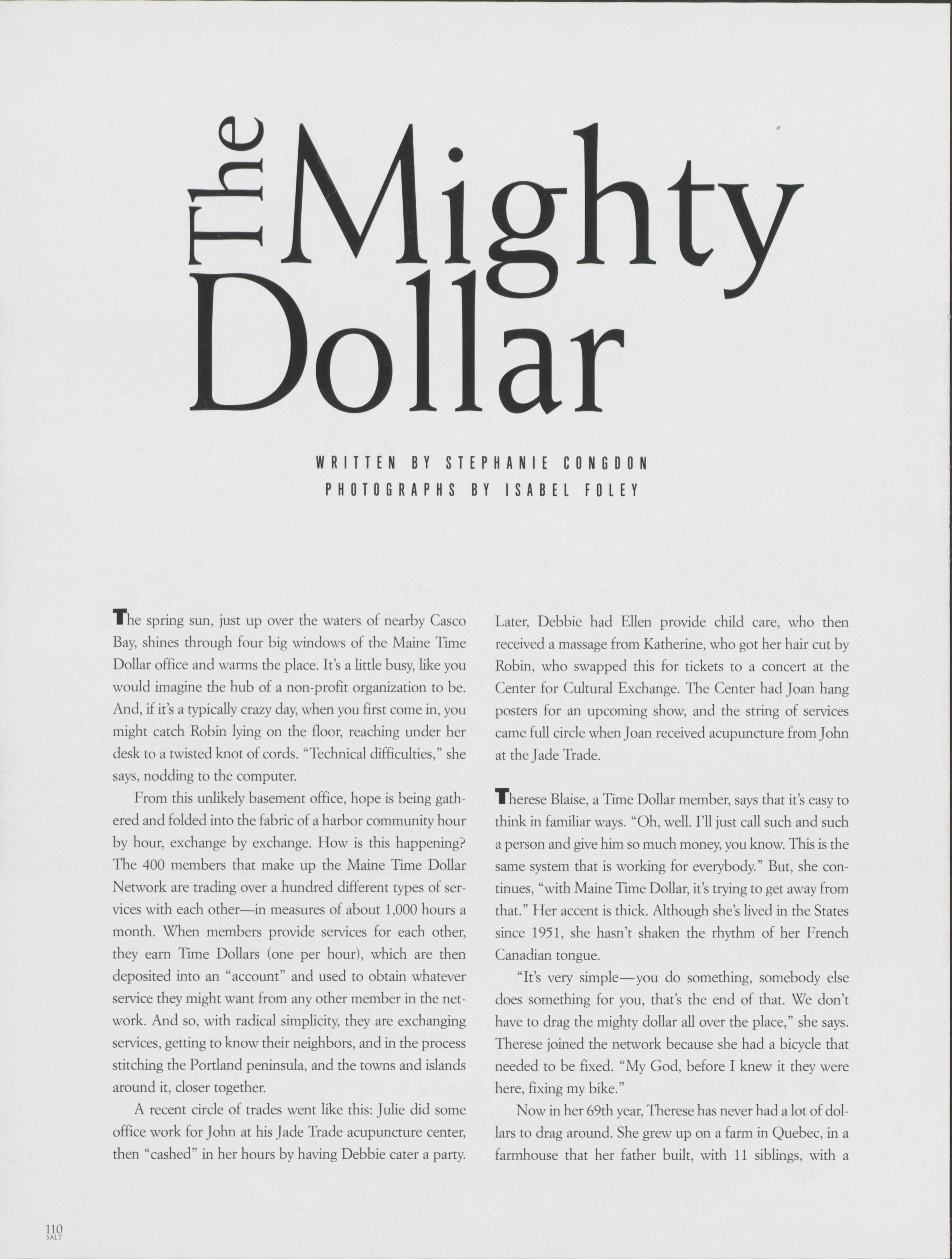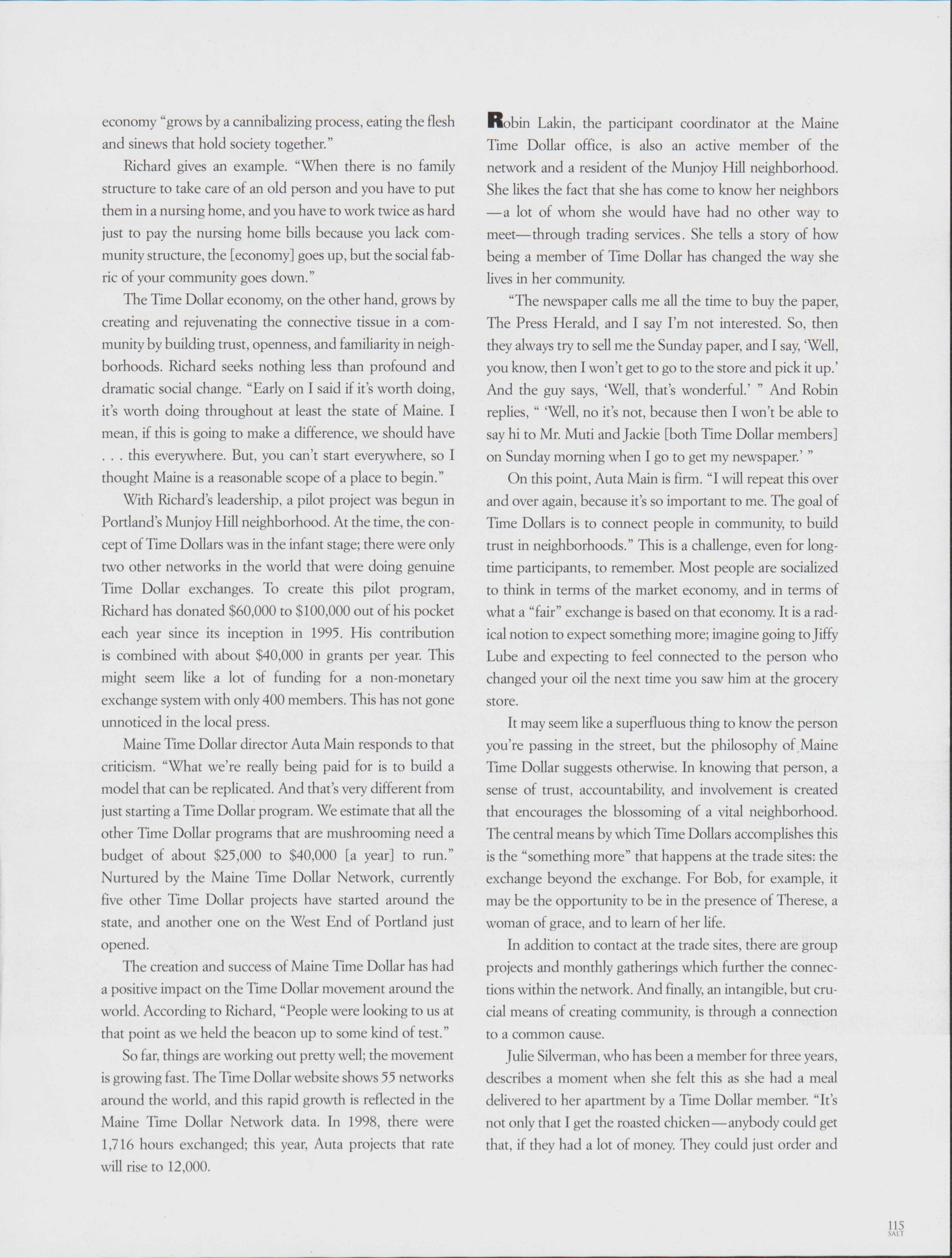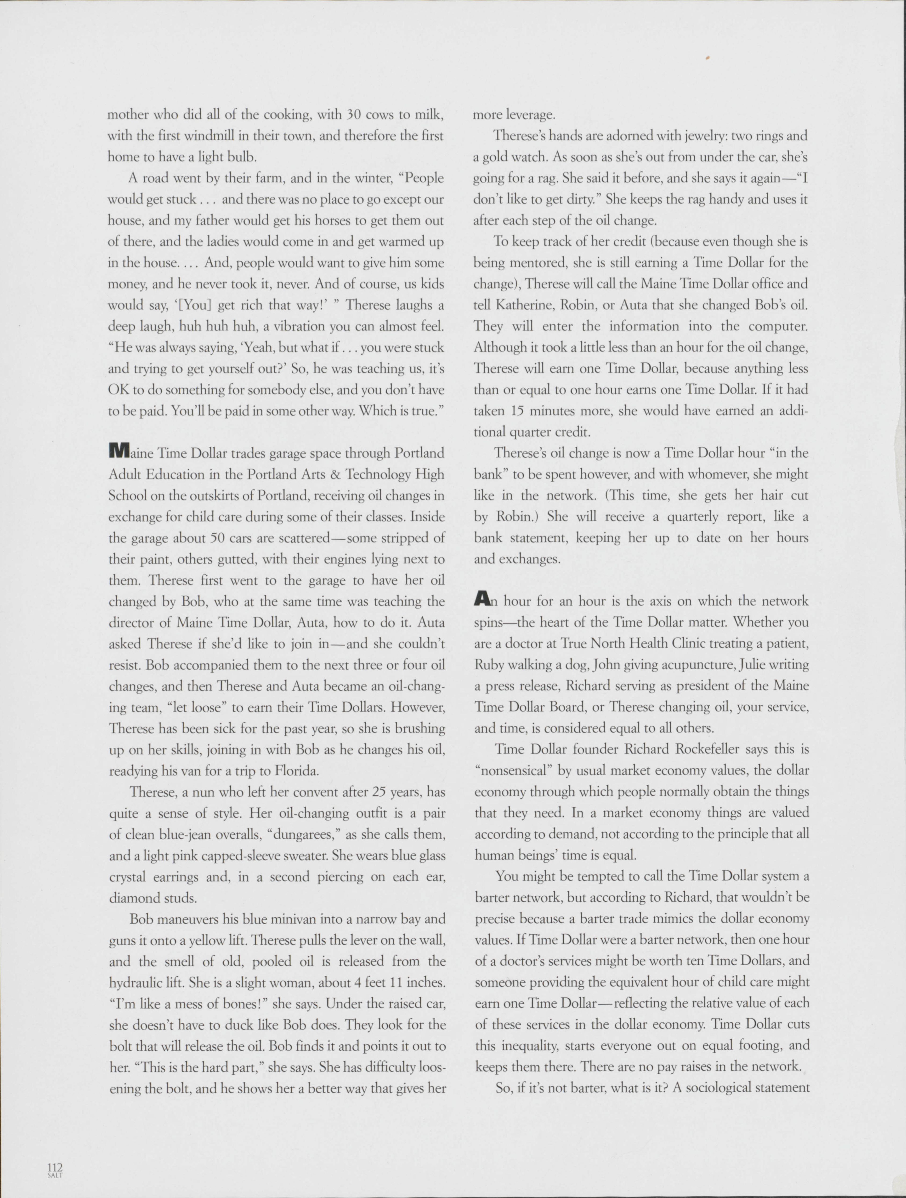 In Portland, the Maine Time Dollar Network allows community members to perform various services for each other that is bringing the community closer together. Stephanie Congdon explores how this network works and discusses how services are traded.
