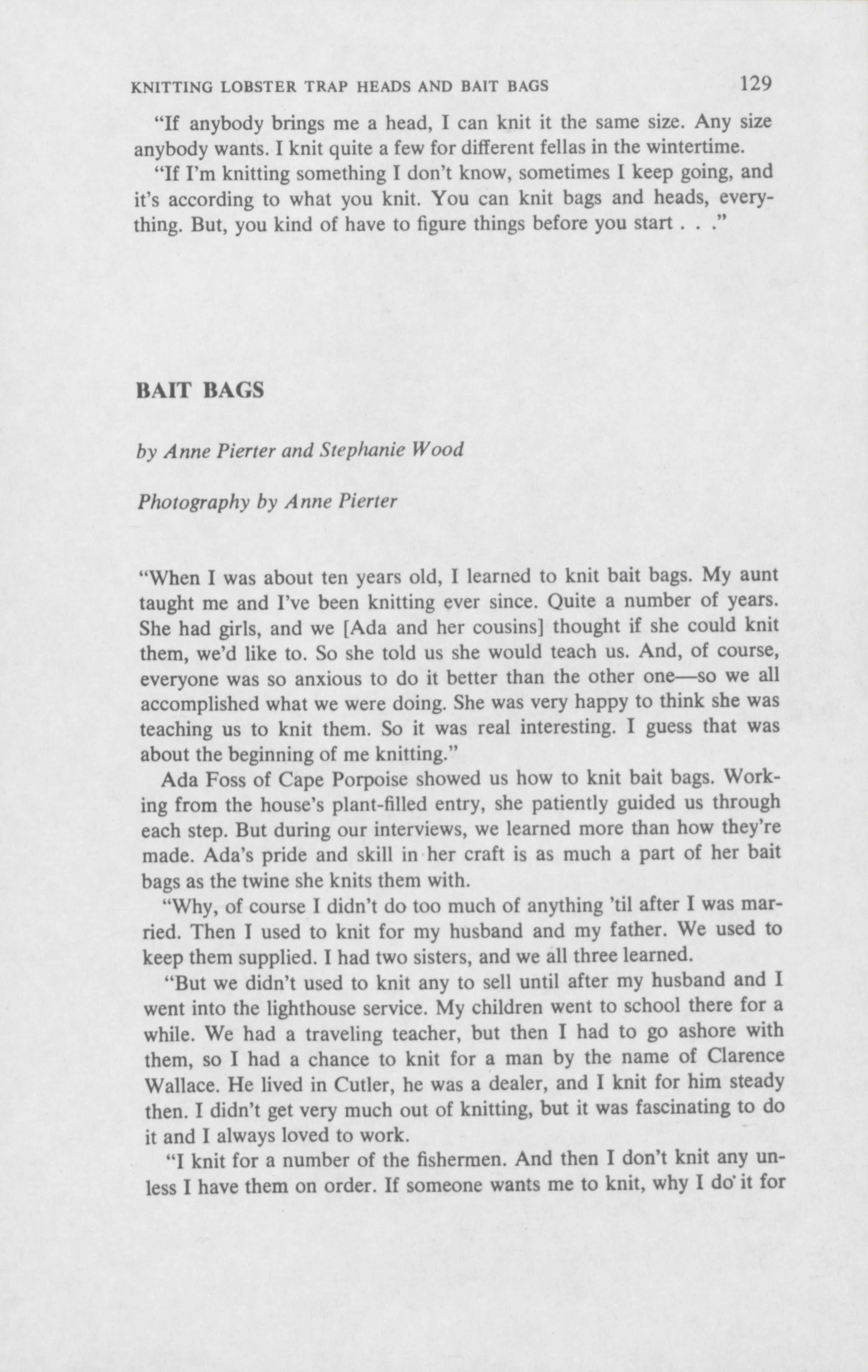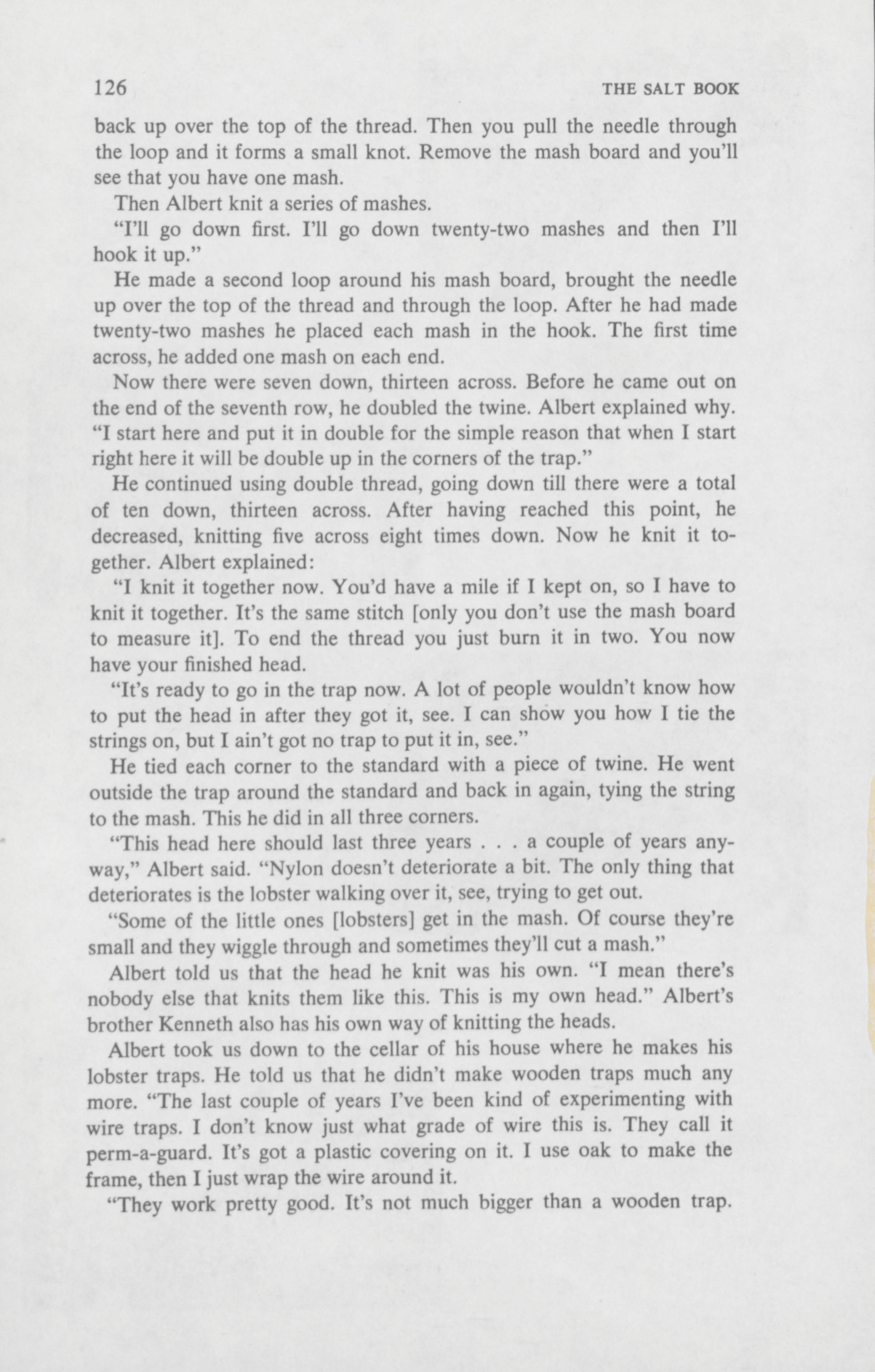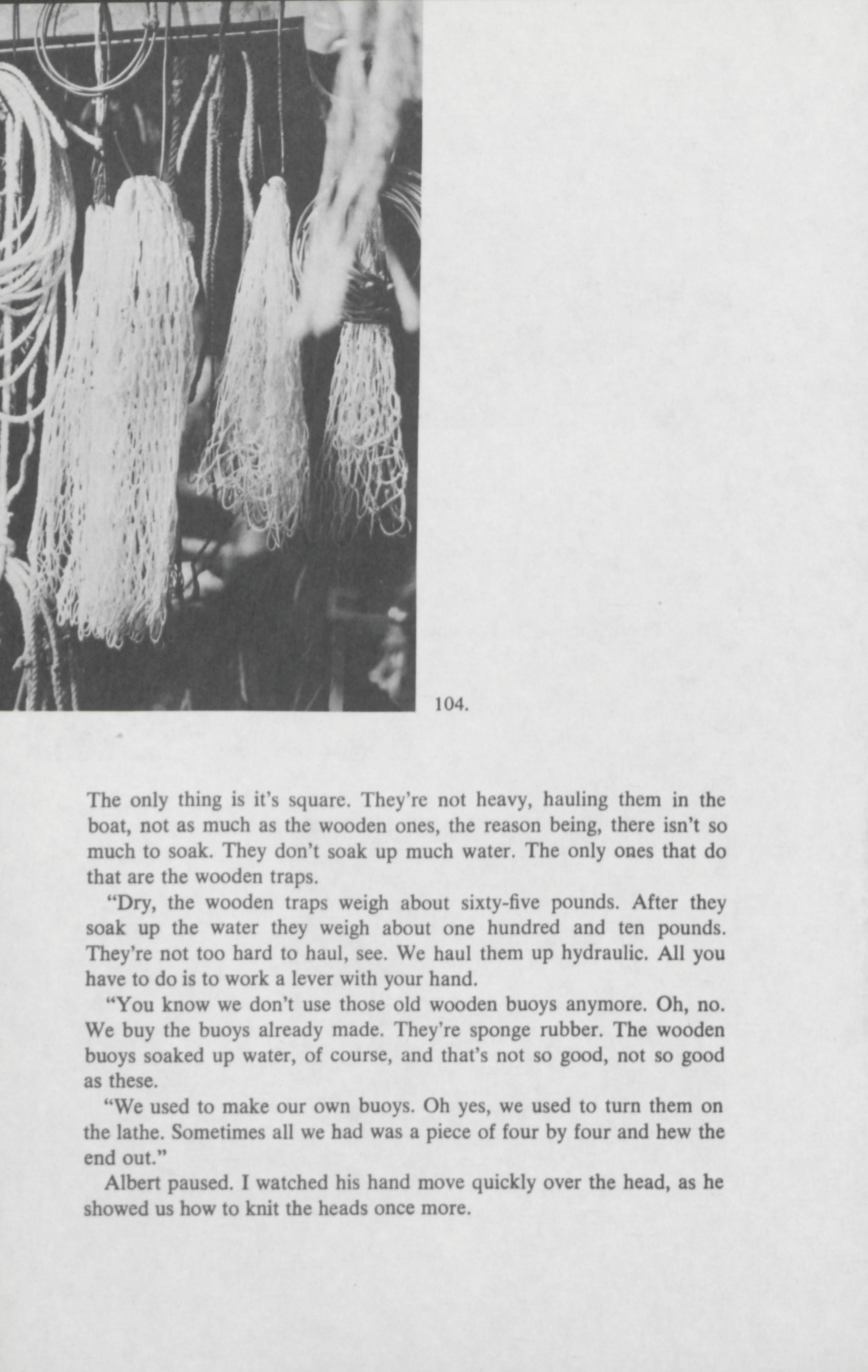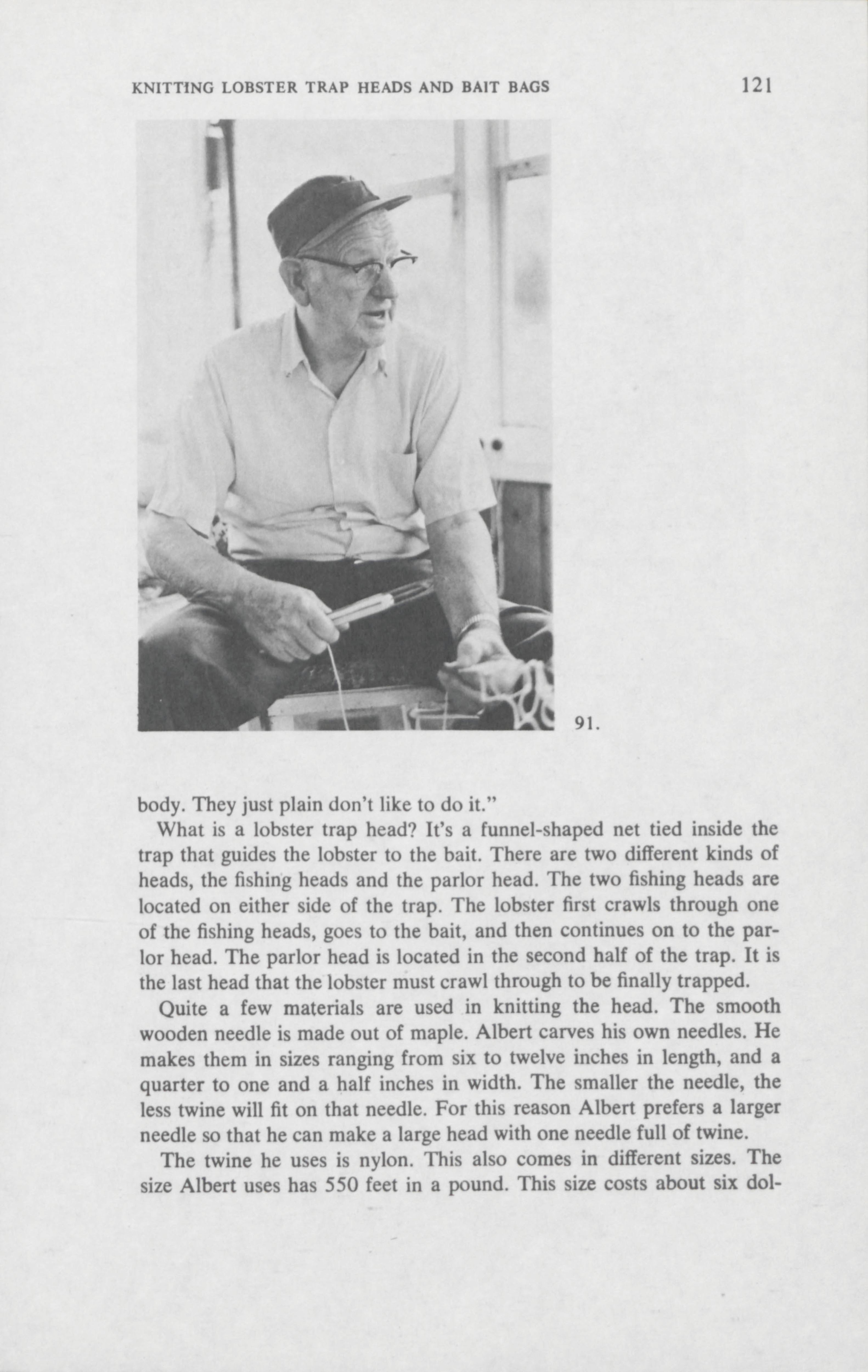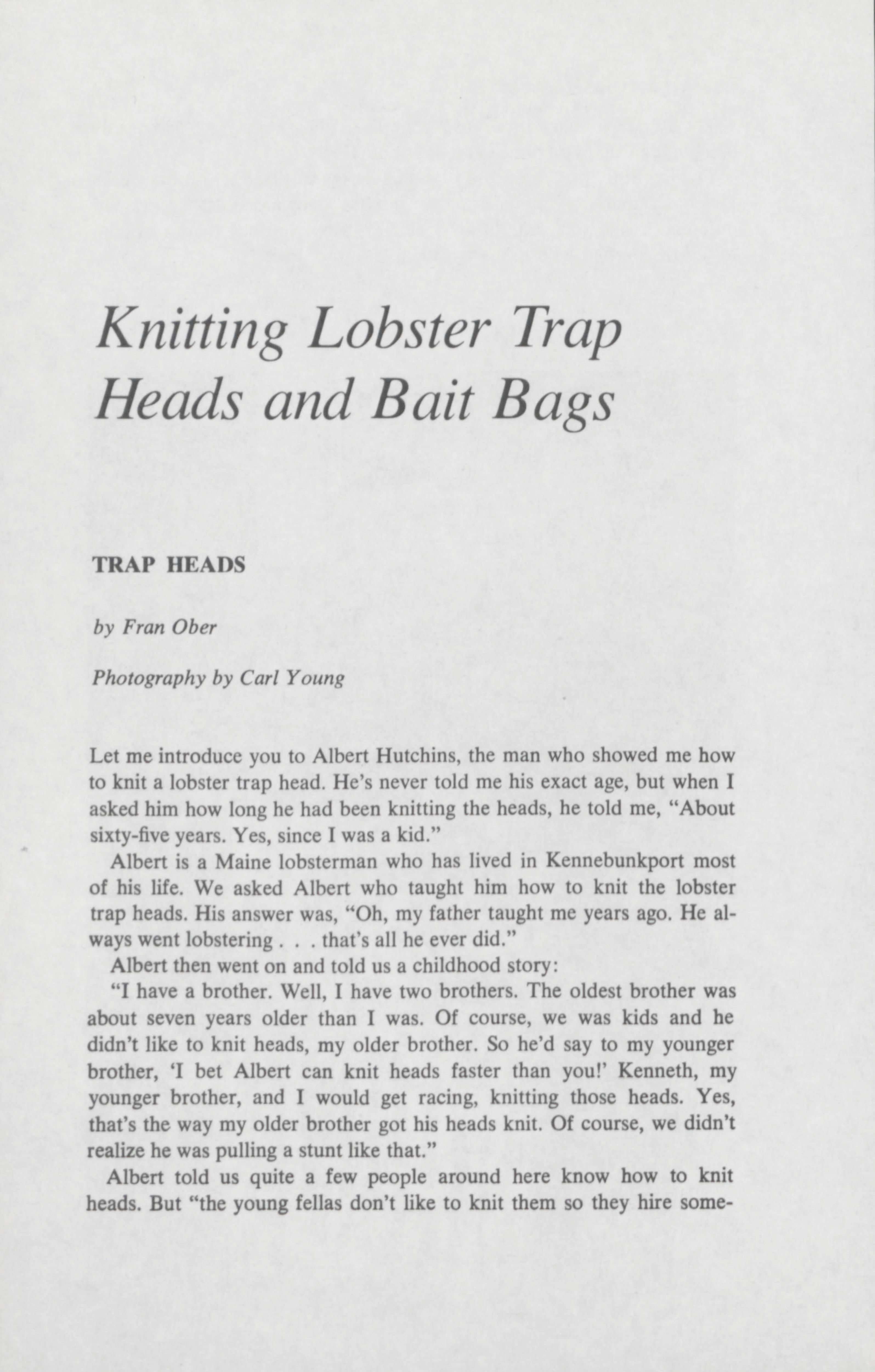 Living in Kennebunkport most of his life, Albert Hutchins is a Maine lobsterman. Fran Ober visits Hutchins to learn how to knit a lobster trap head.