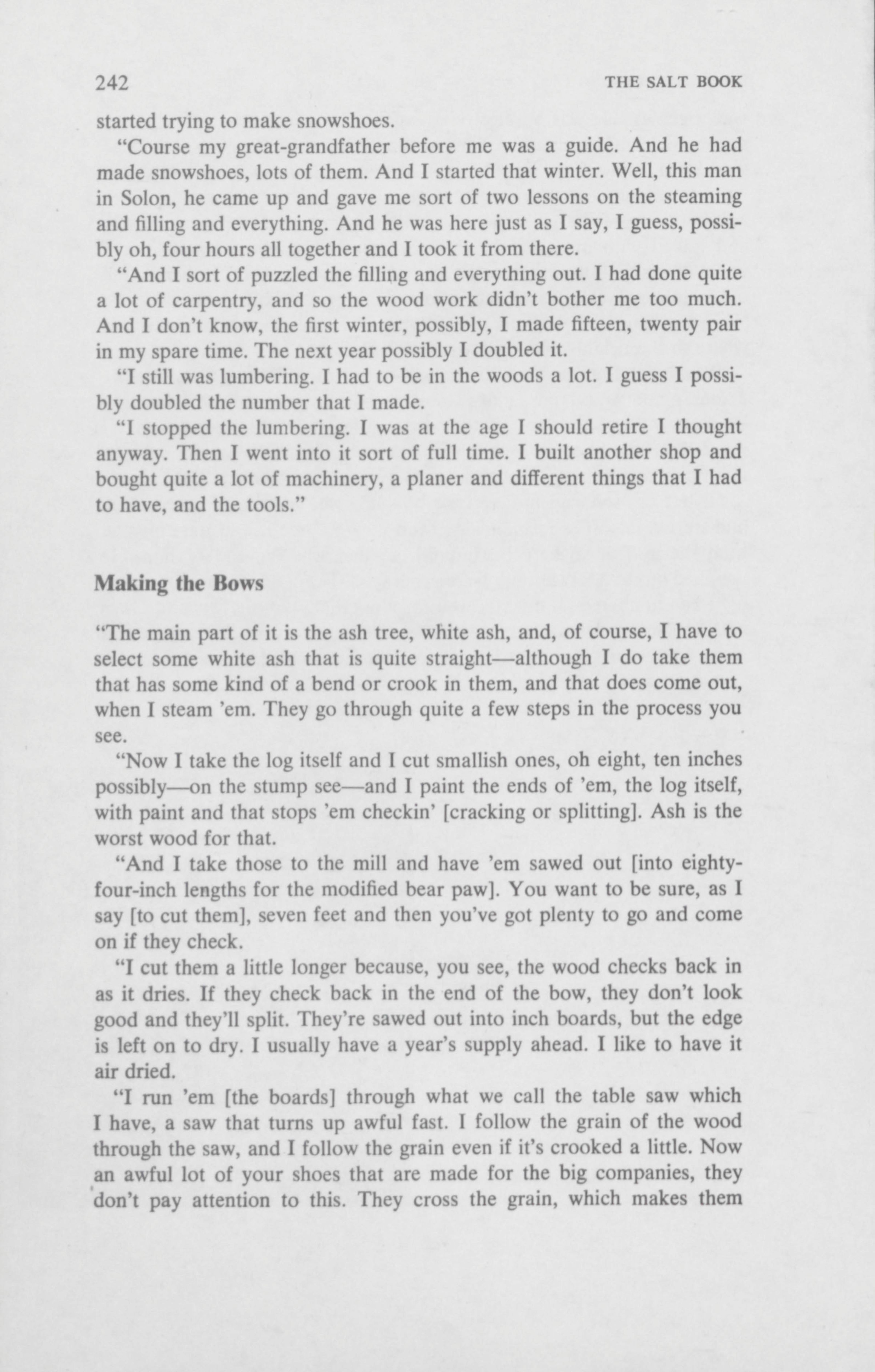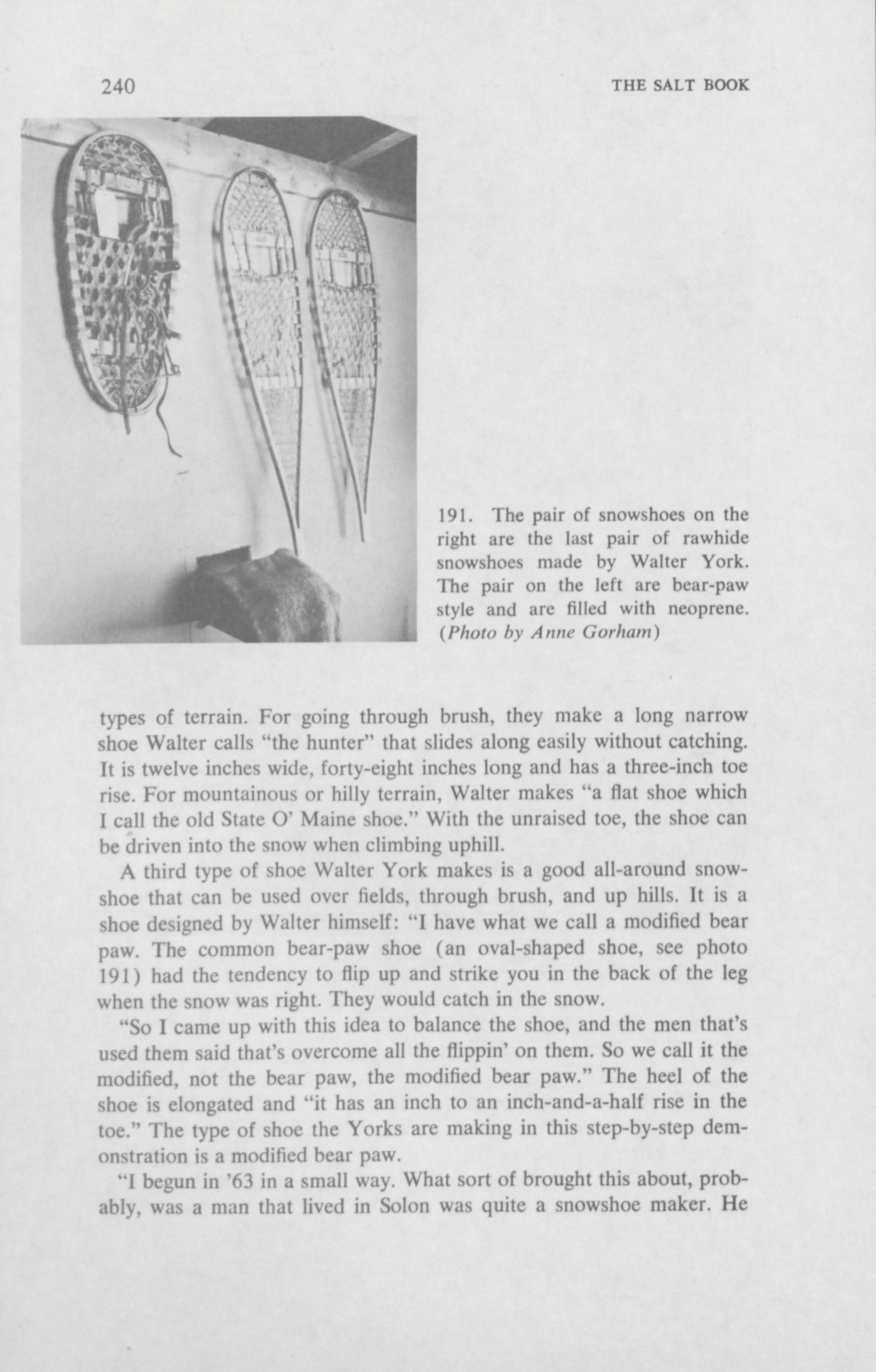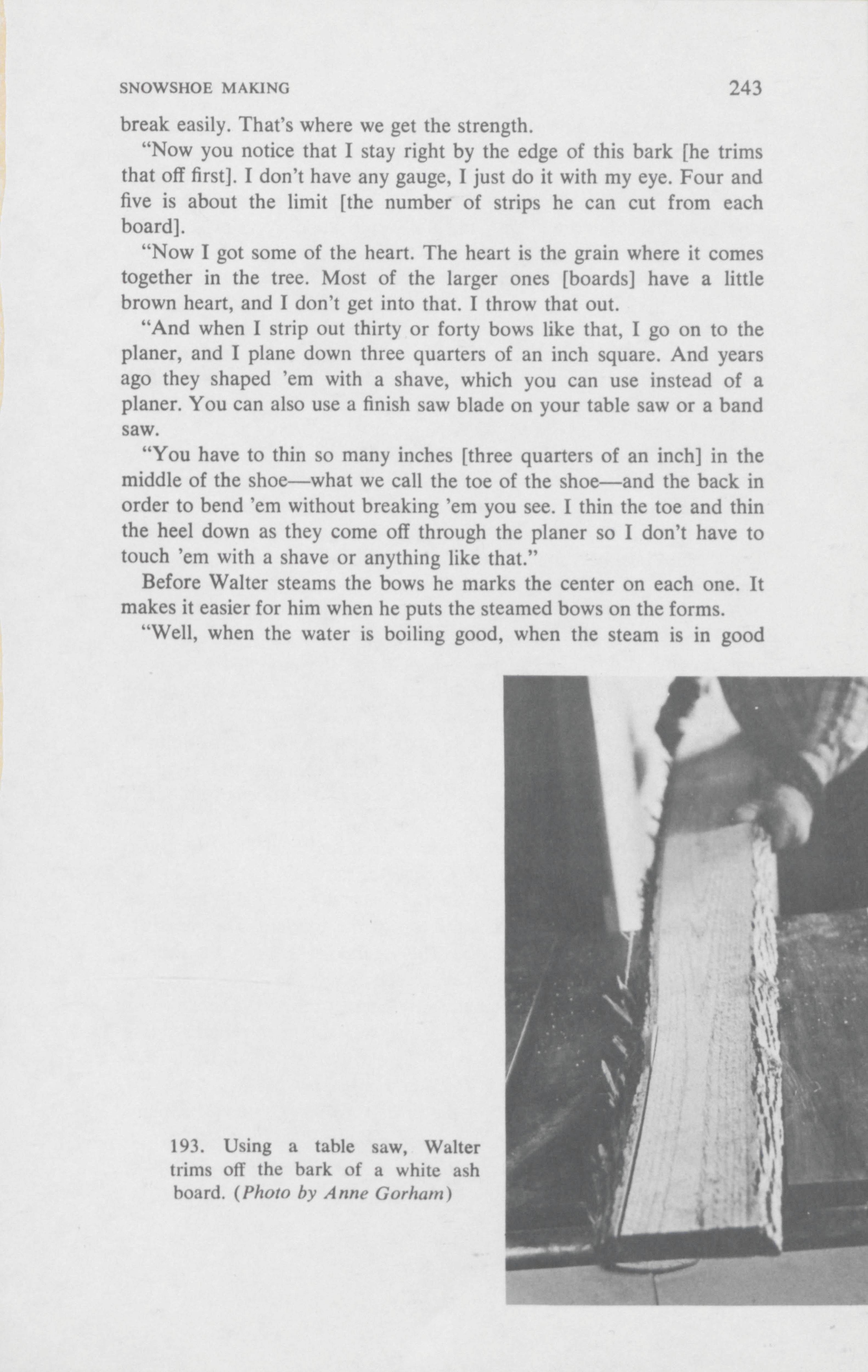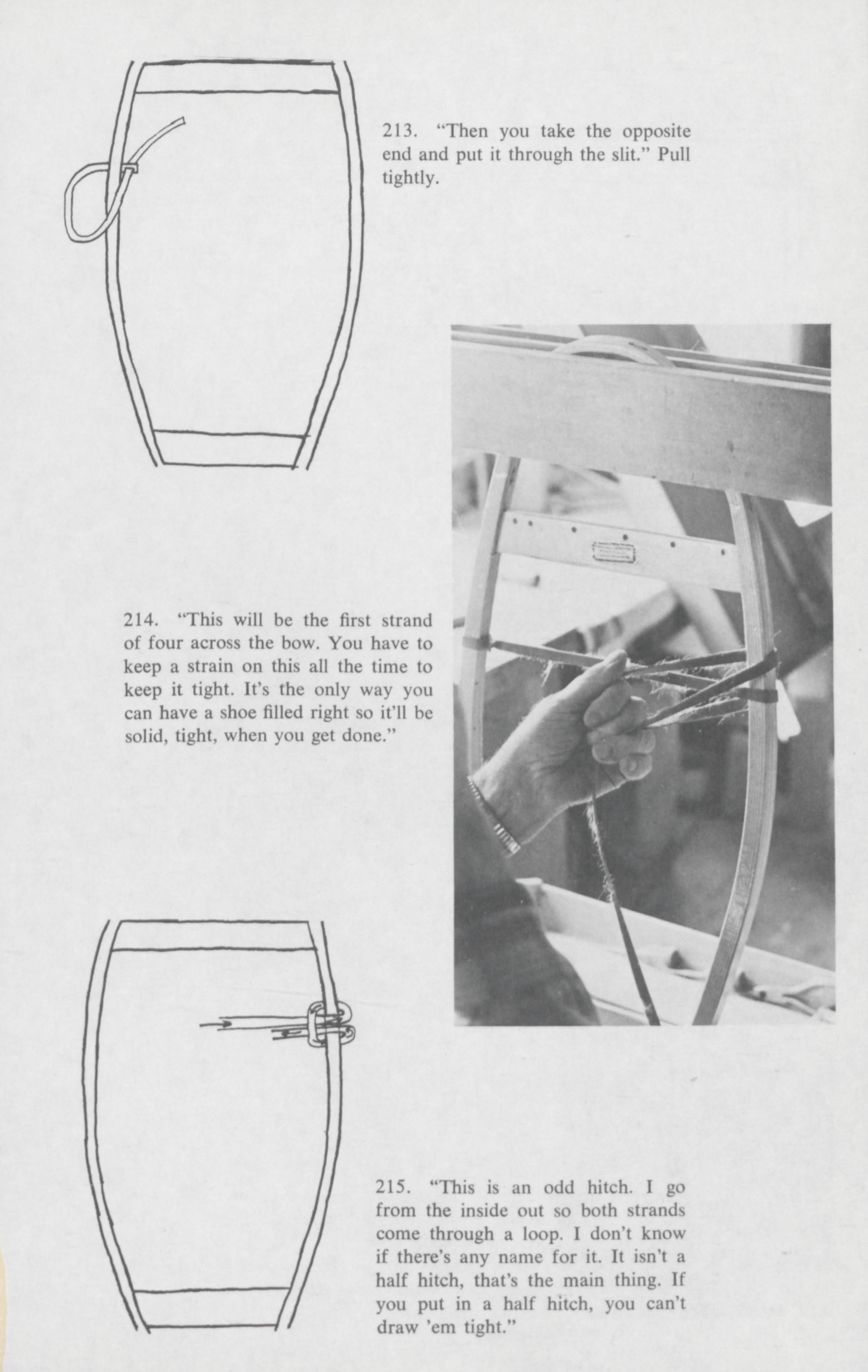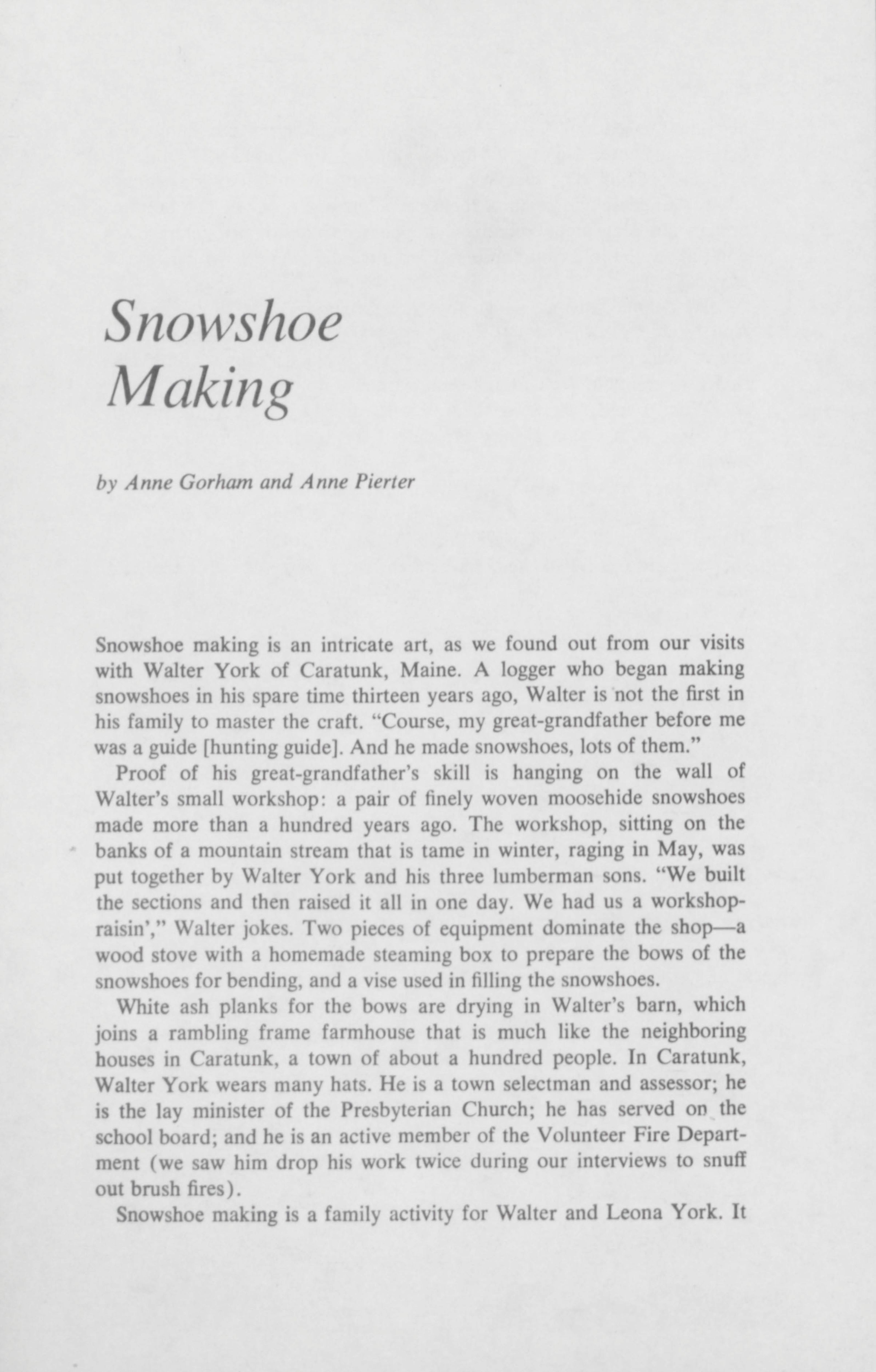 From his workshop in Caratunk, Walter York creates snowshoes. Anne Gorham covers the steps of making and filling the bows for snowshoes.