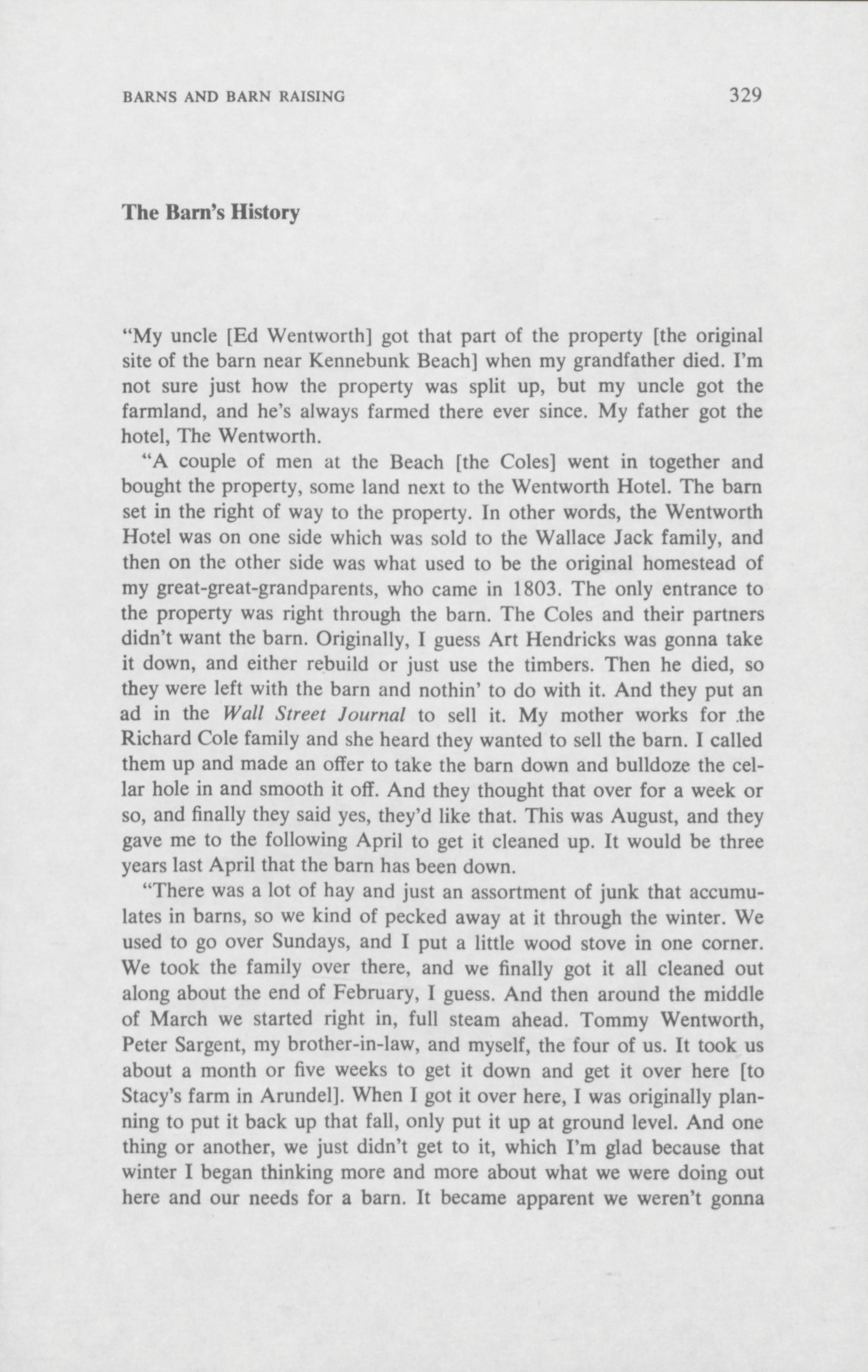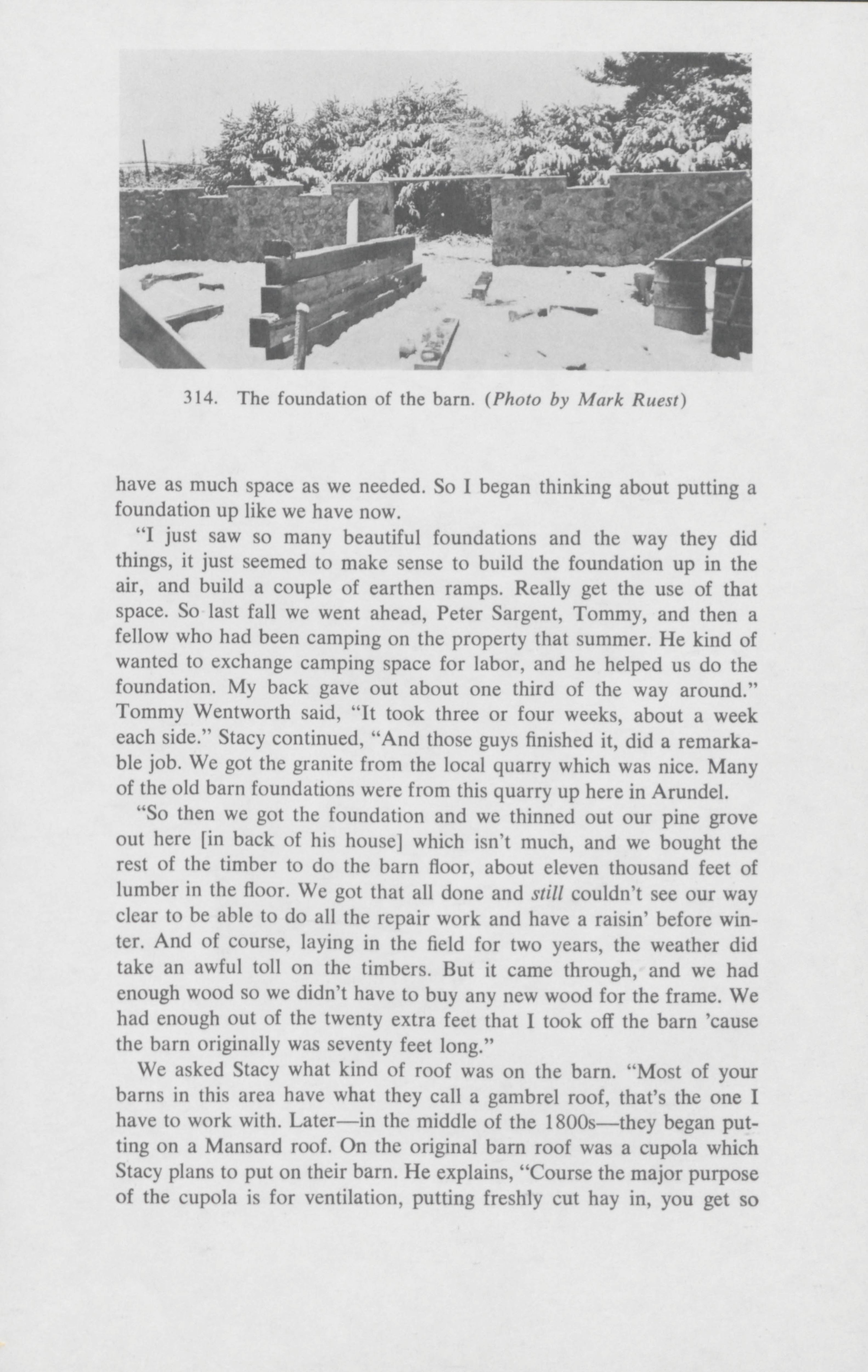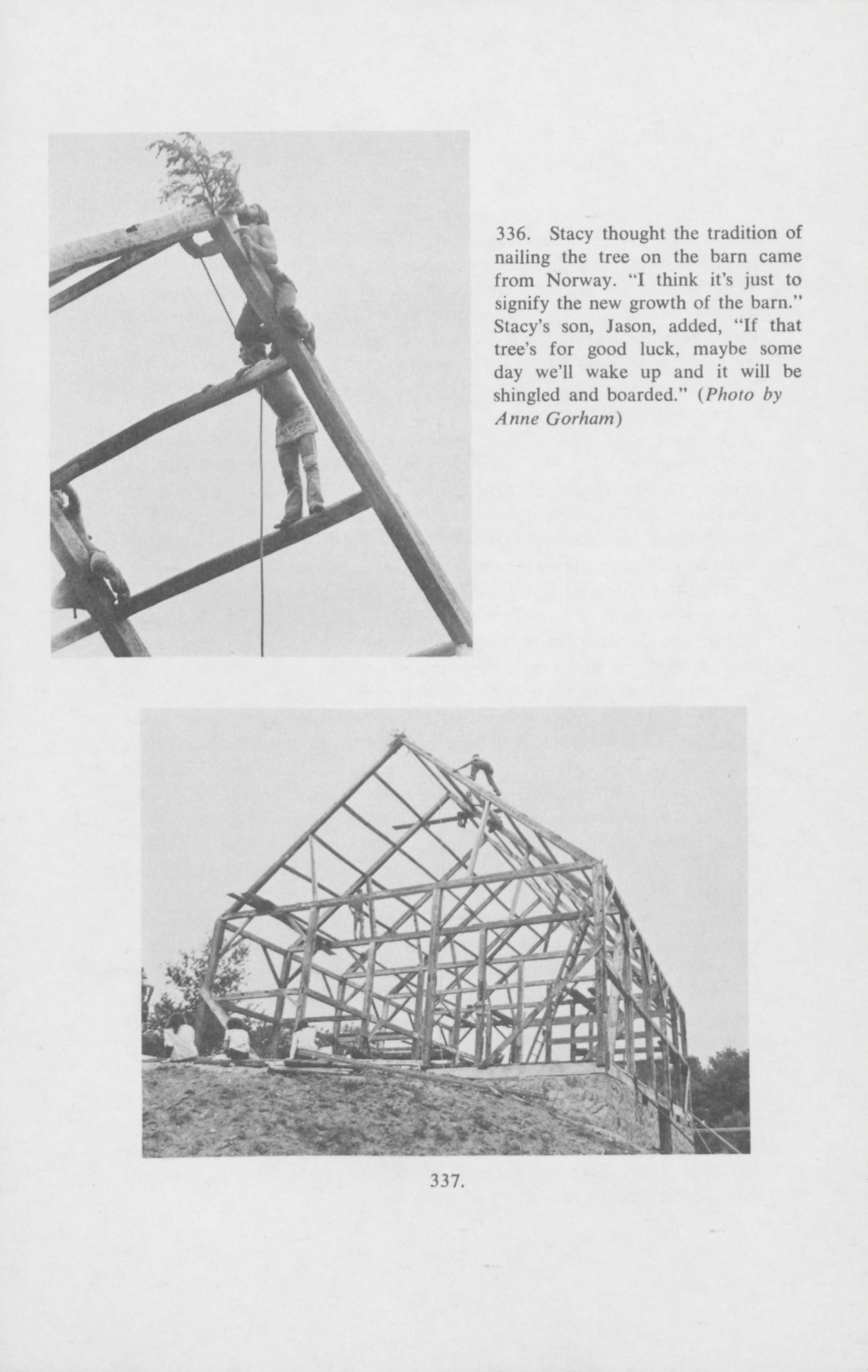 From dawn to dusk, friends and neighbors of Stacy Wentworth helped him raise a 50 foot barn in Arundel. Anne Gorham documents the work that went into putting the barn together. Published in The Salt Book.