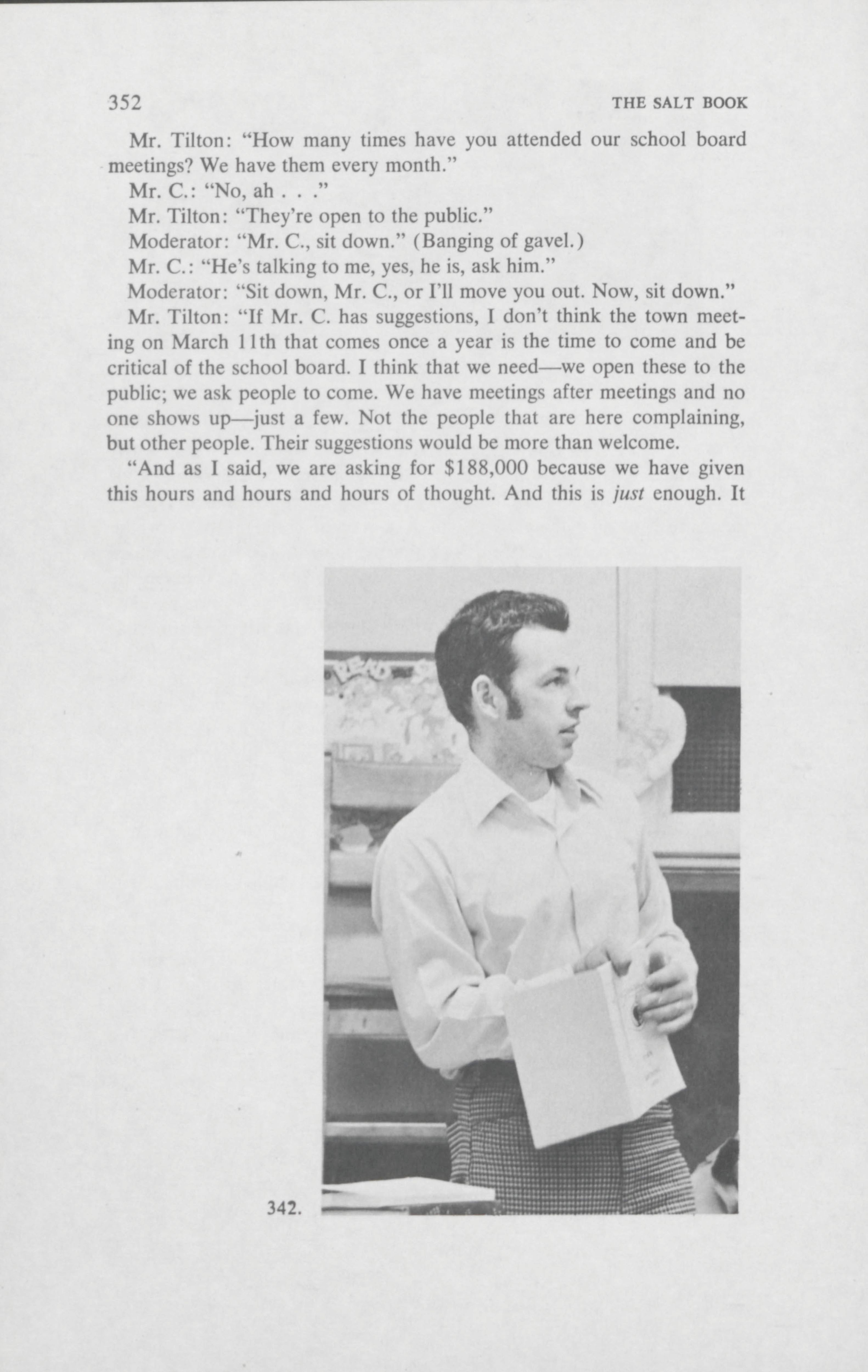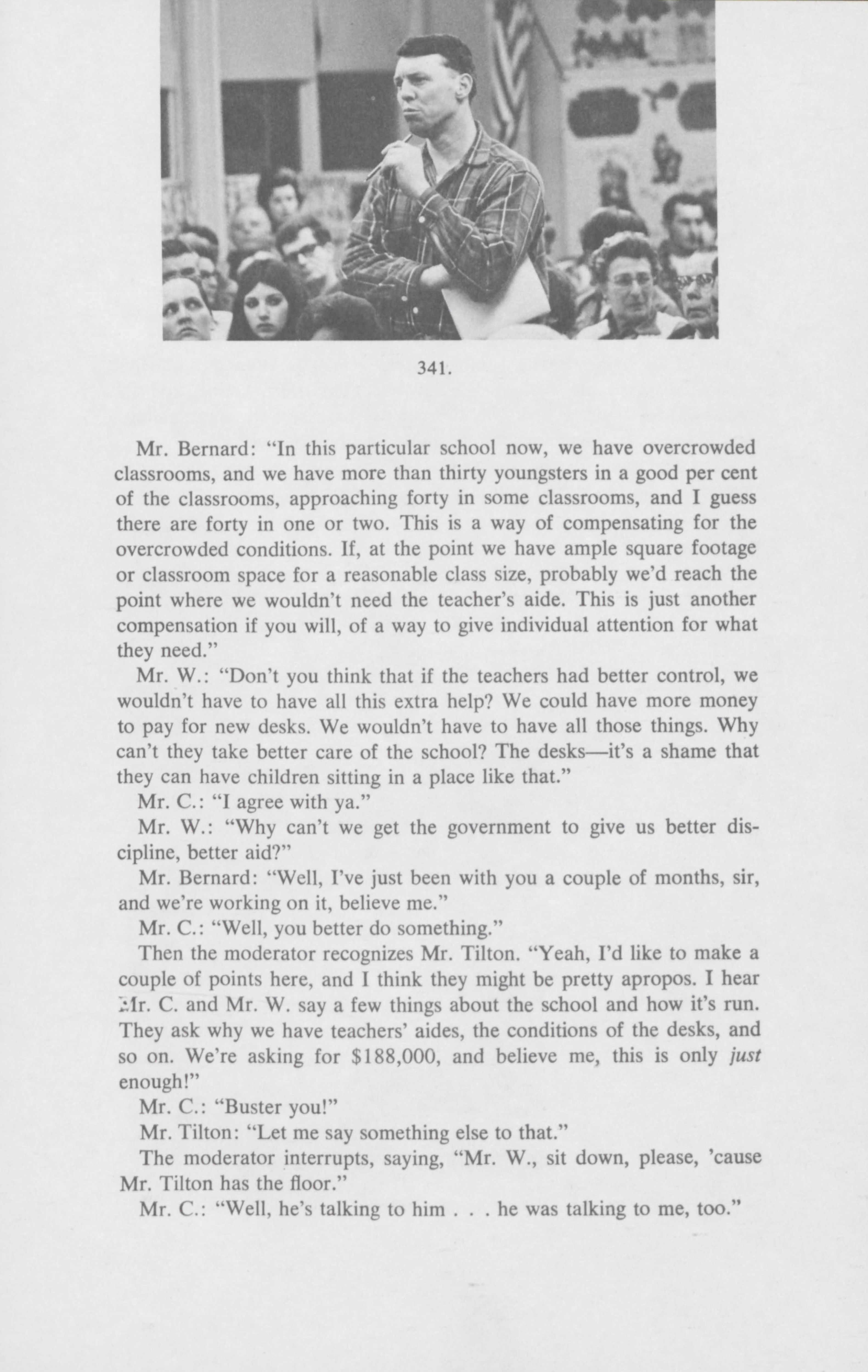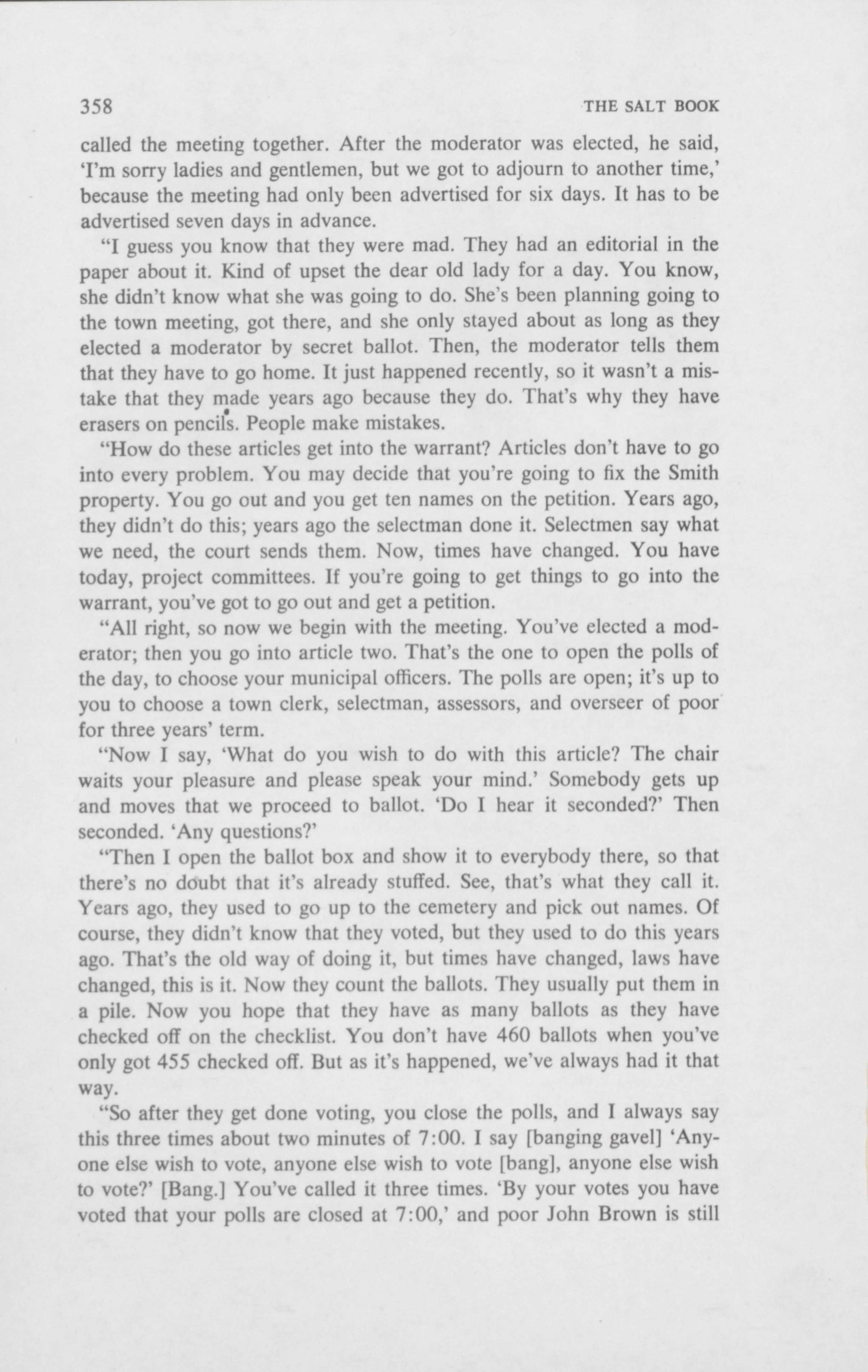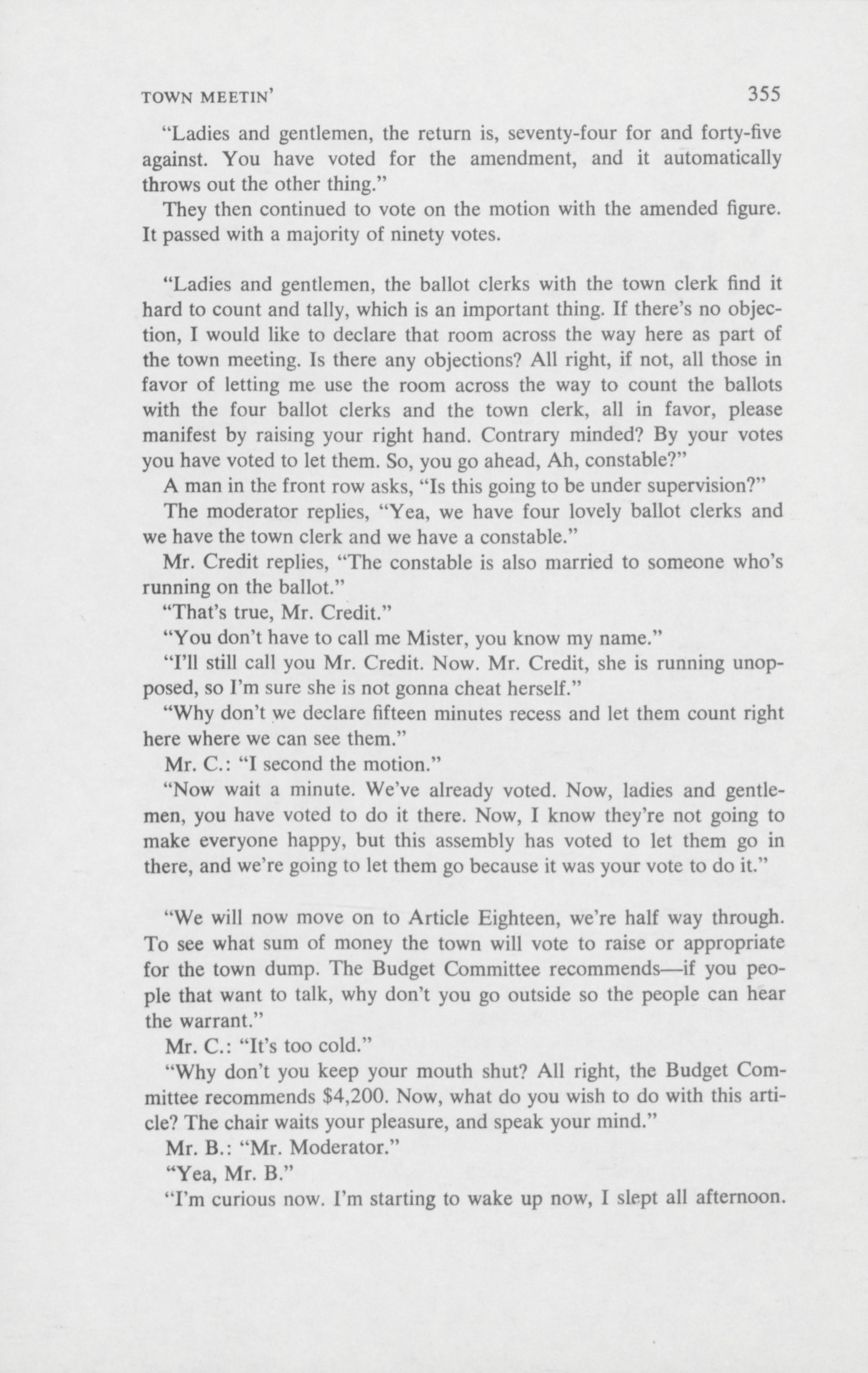Heading to Arundel to hear old time democracy, Valerie Gould and Anne Pierter go to a town meeting. Gould and Pierter document the meeting and the issues that were discussed.