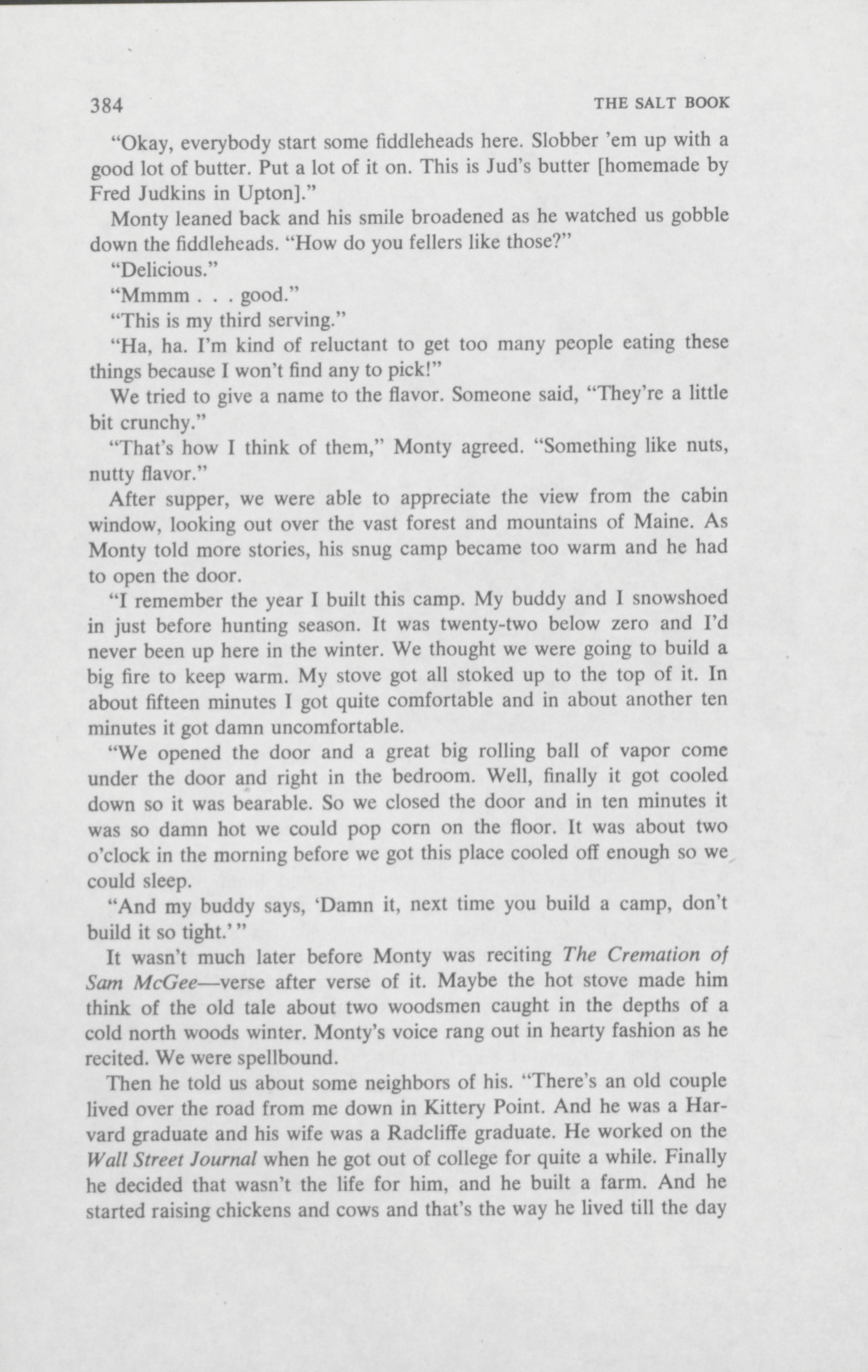 When long-time friend Monty Washburn invited Salt students on an expedition, they wasted no time in joining along. Jay York reports from Washburn's hunting camp near Upton on the subject of fiddlehead hunting.